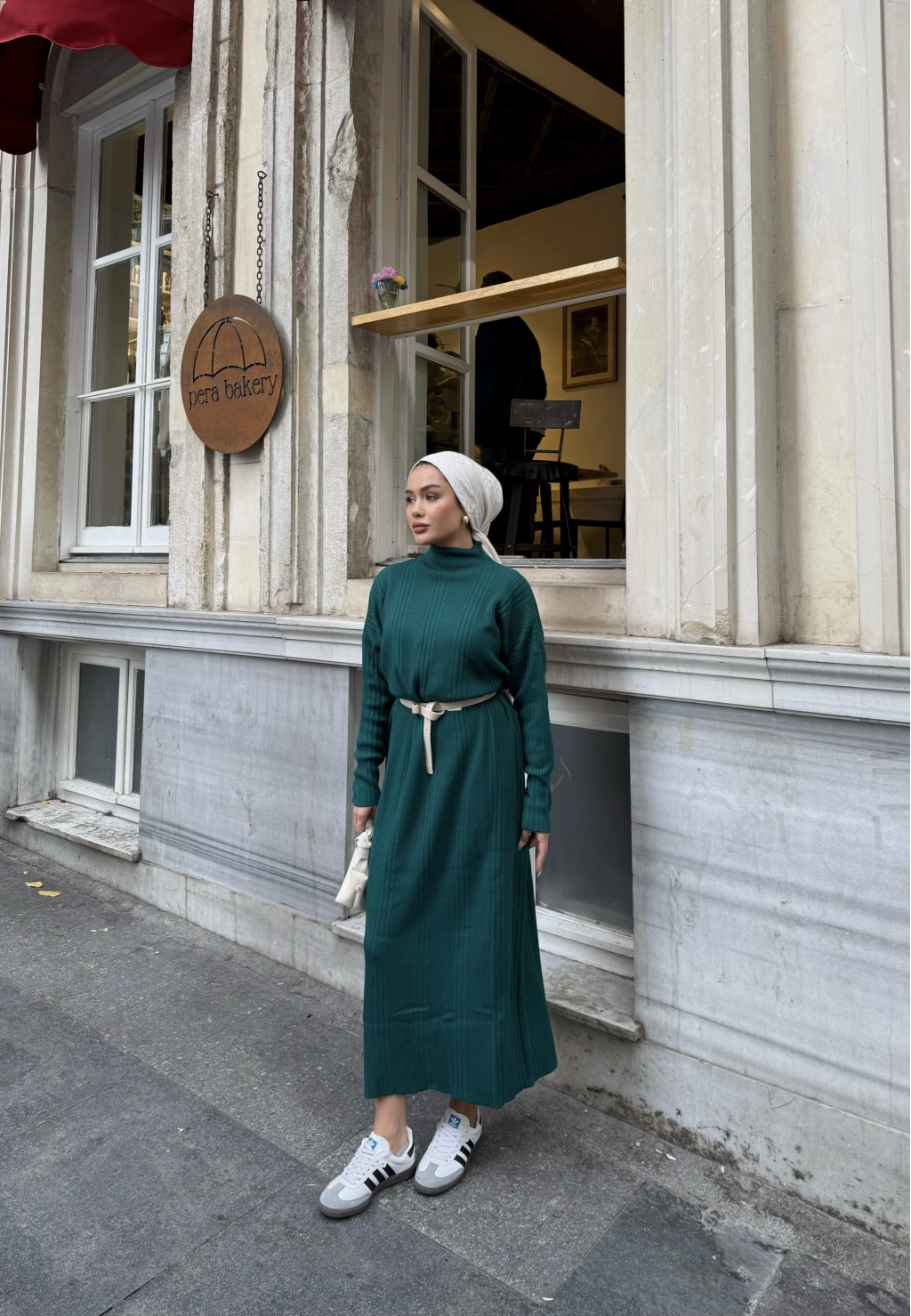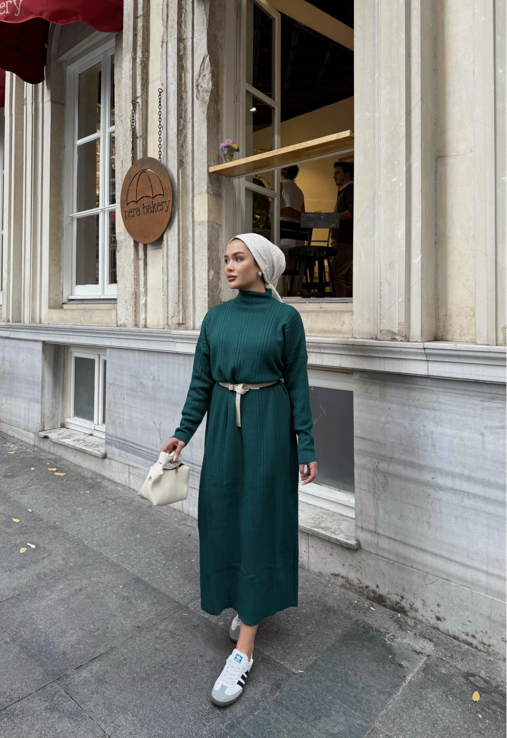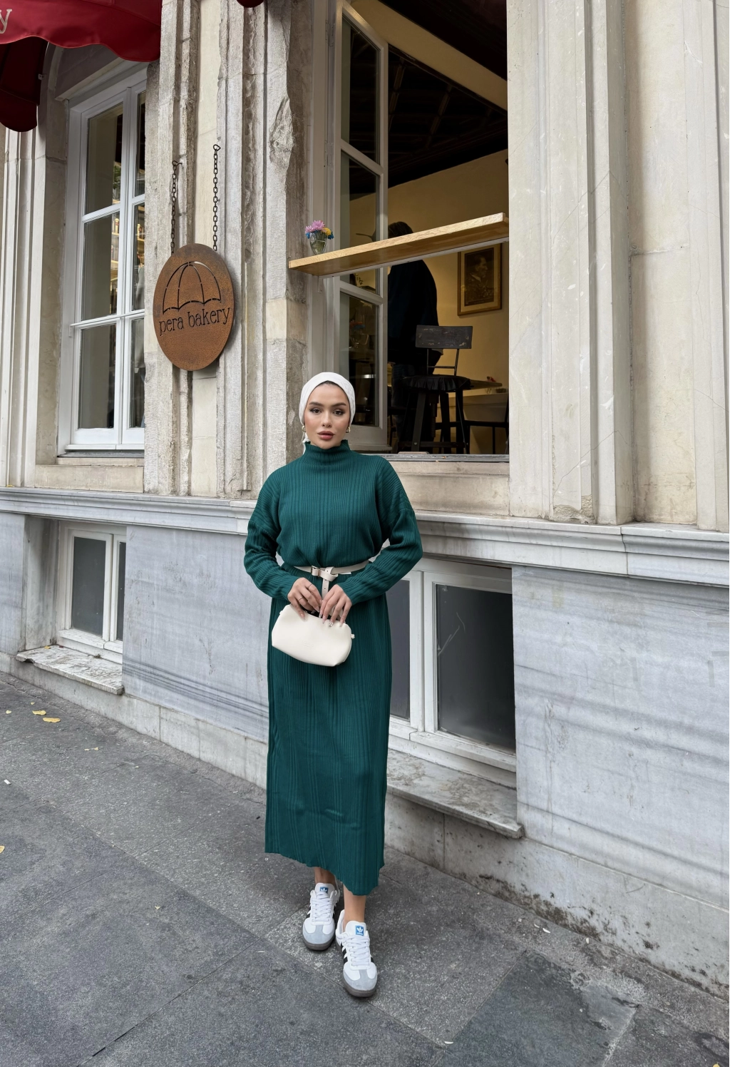 Fitilli Triko Elbise - Zümrüt Yeşili
