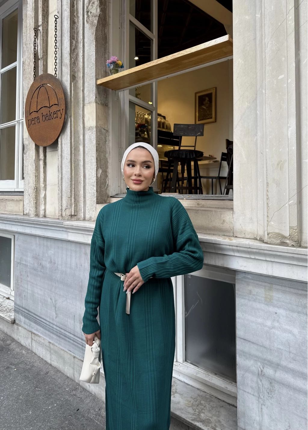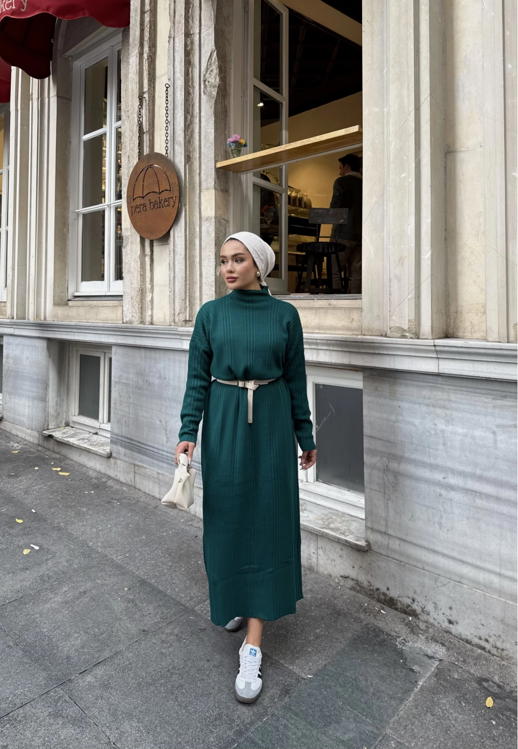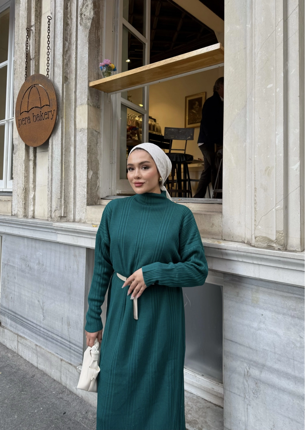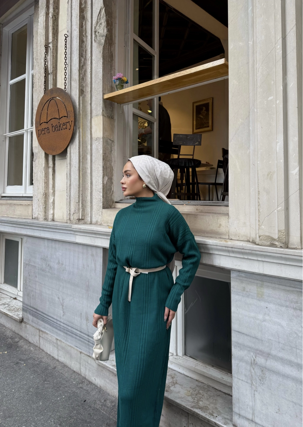 Fitilli Triko Elbise - Zümrüt Yeşili