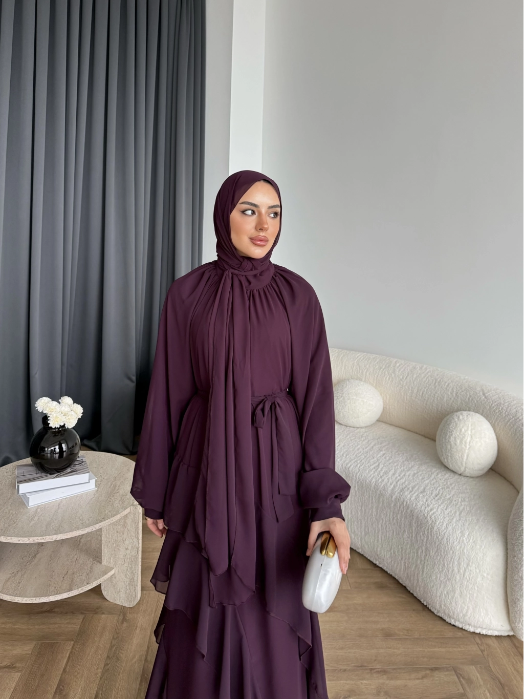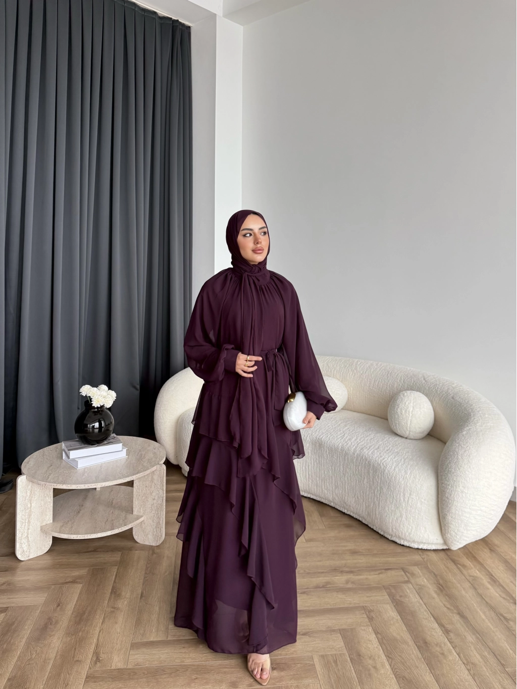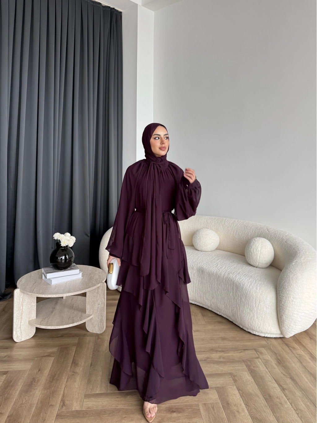 Fuş - Butter Şal Hediye Elbise - Mürdüm