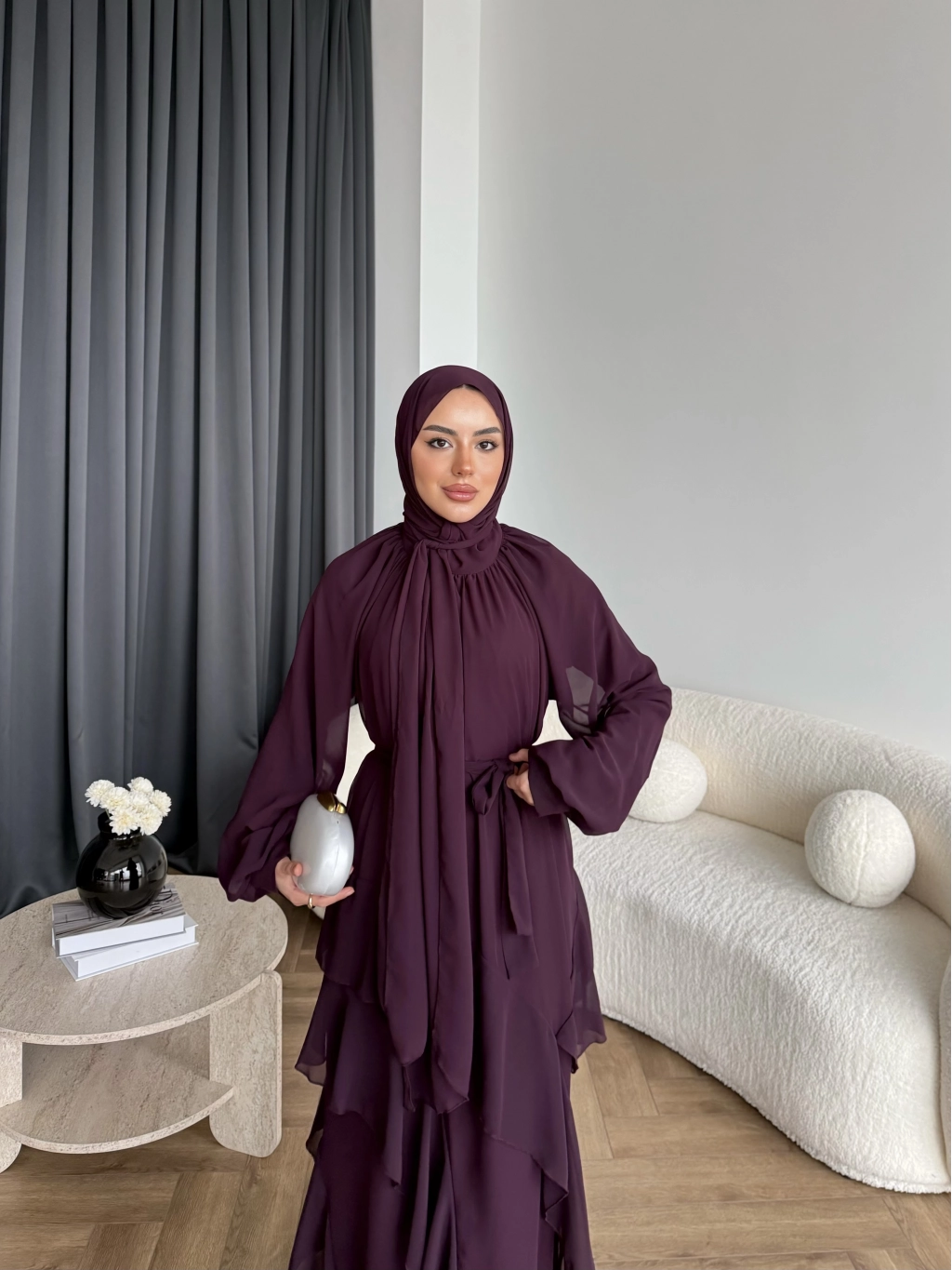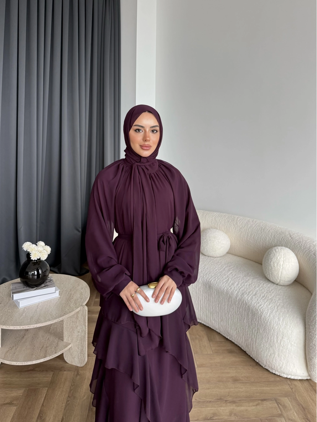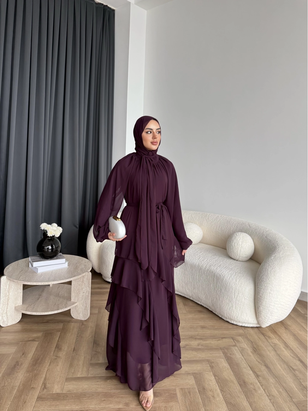 Fuş - Butter Şal Hediye Elbise - Mürdüm