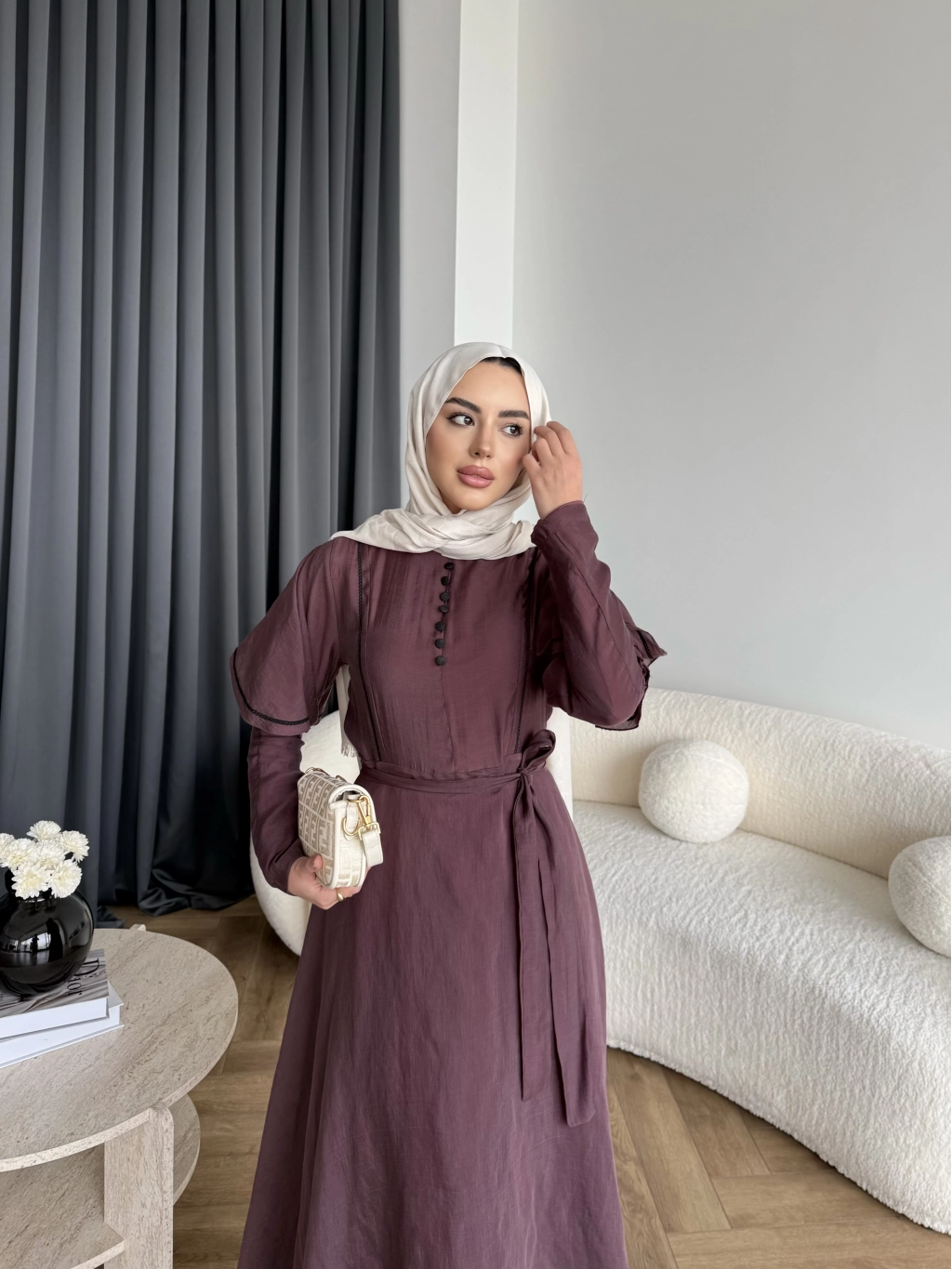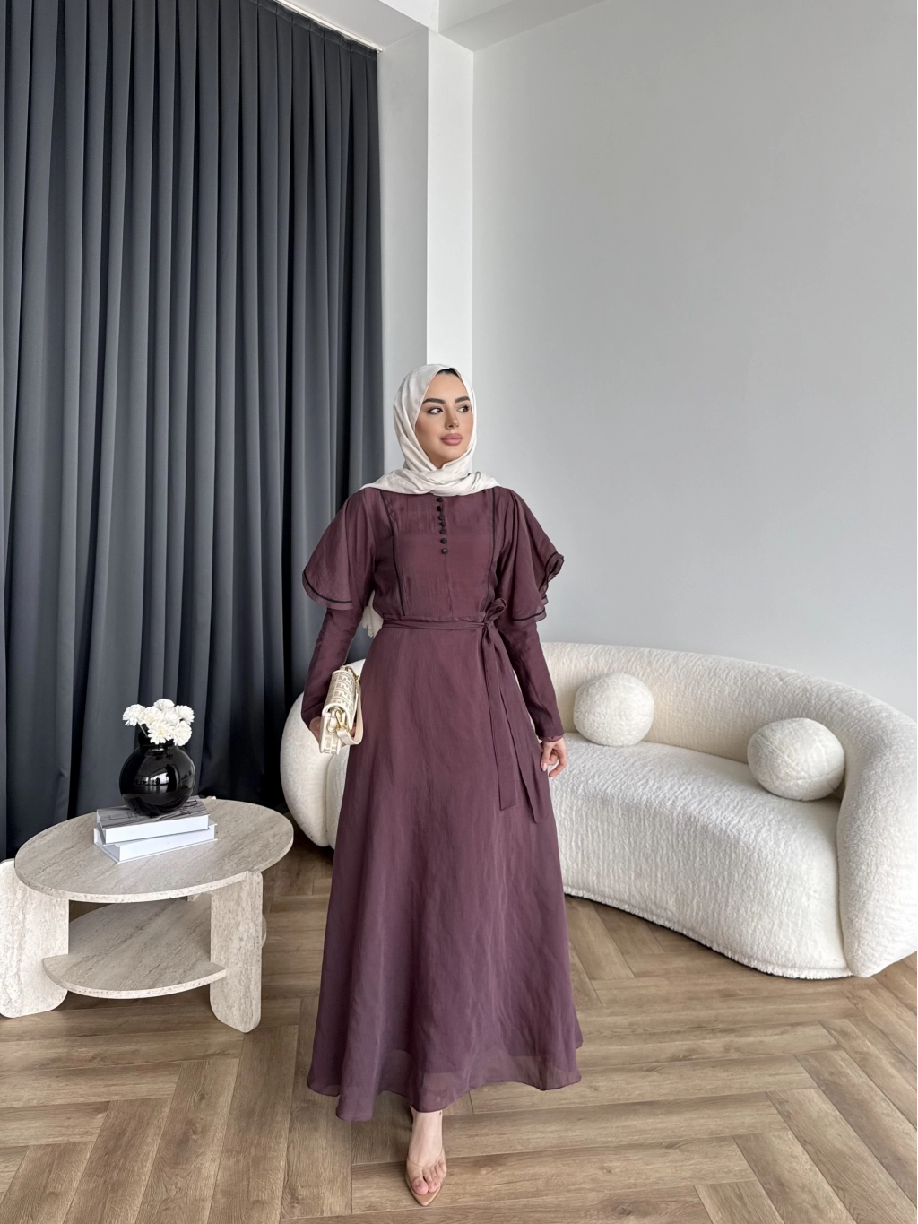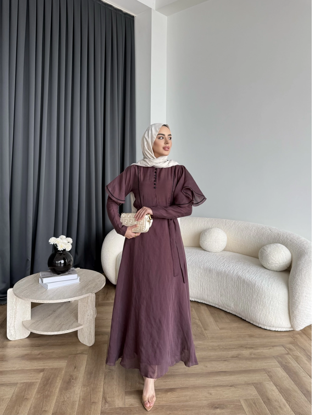 Fuş - Chic Nakış Detay Parlak Tensel Elbise - Mürdüm
