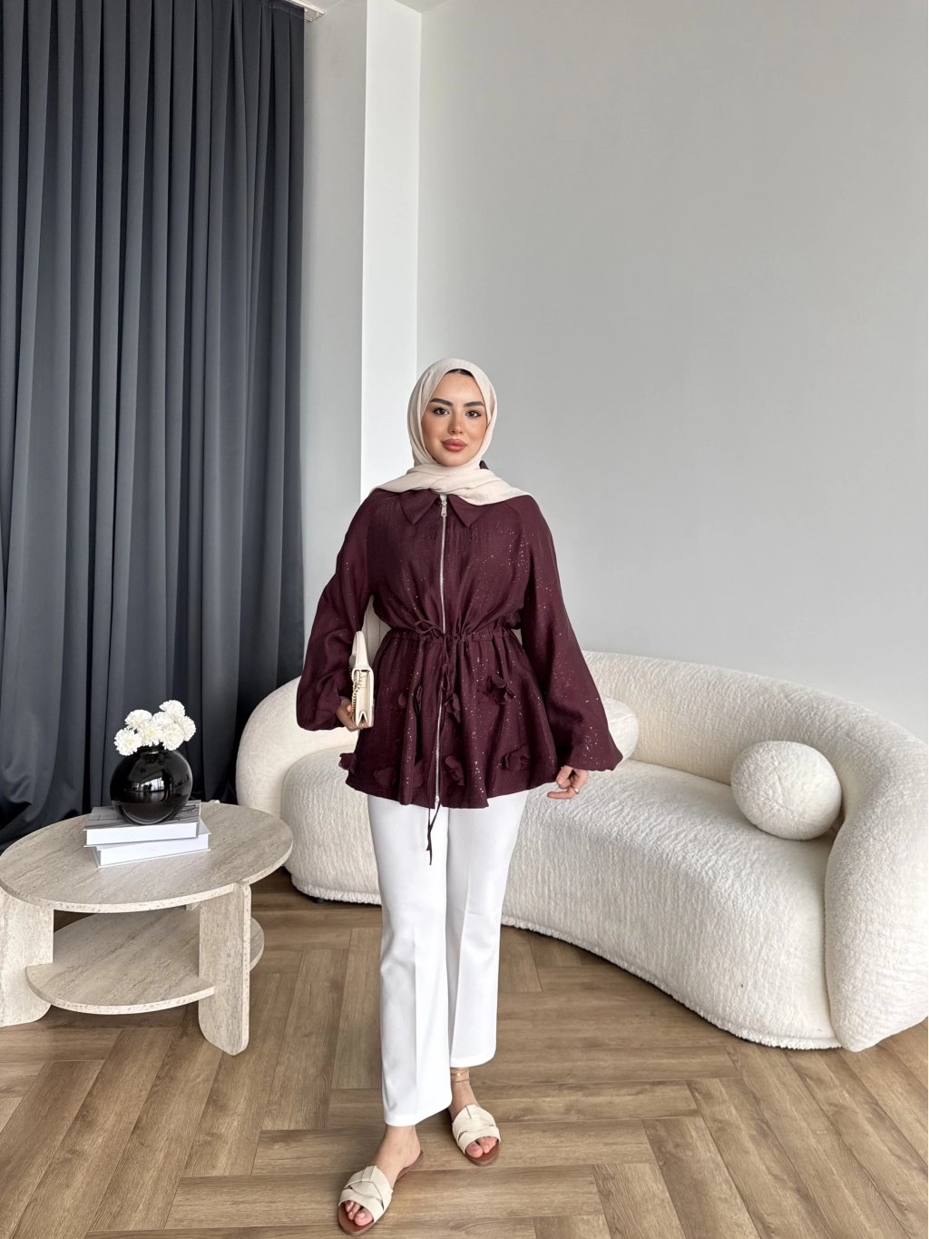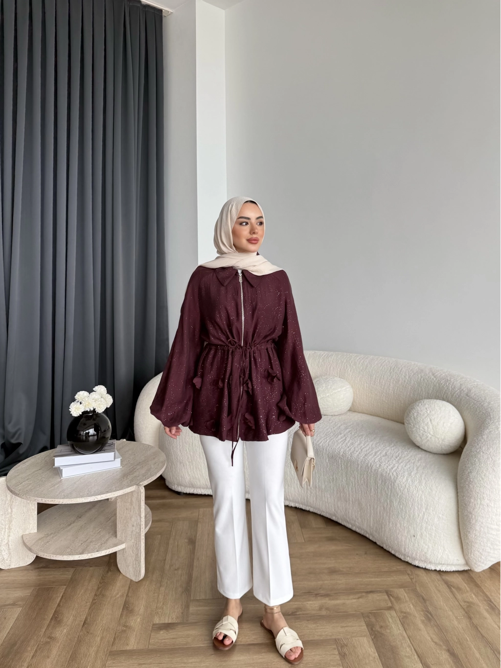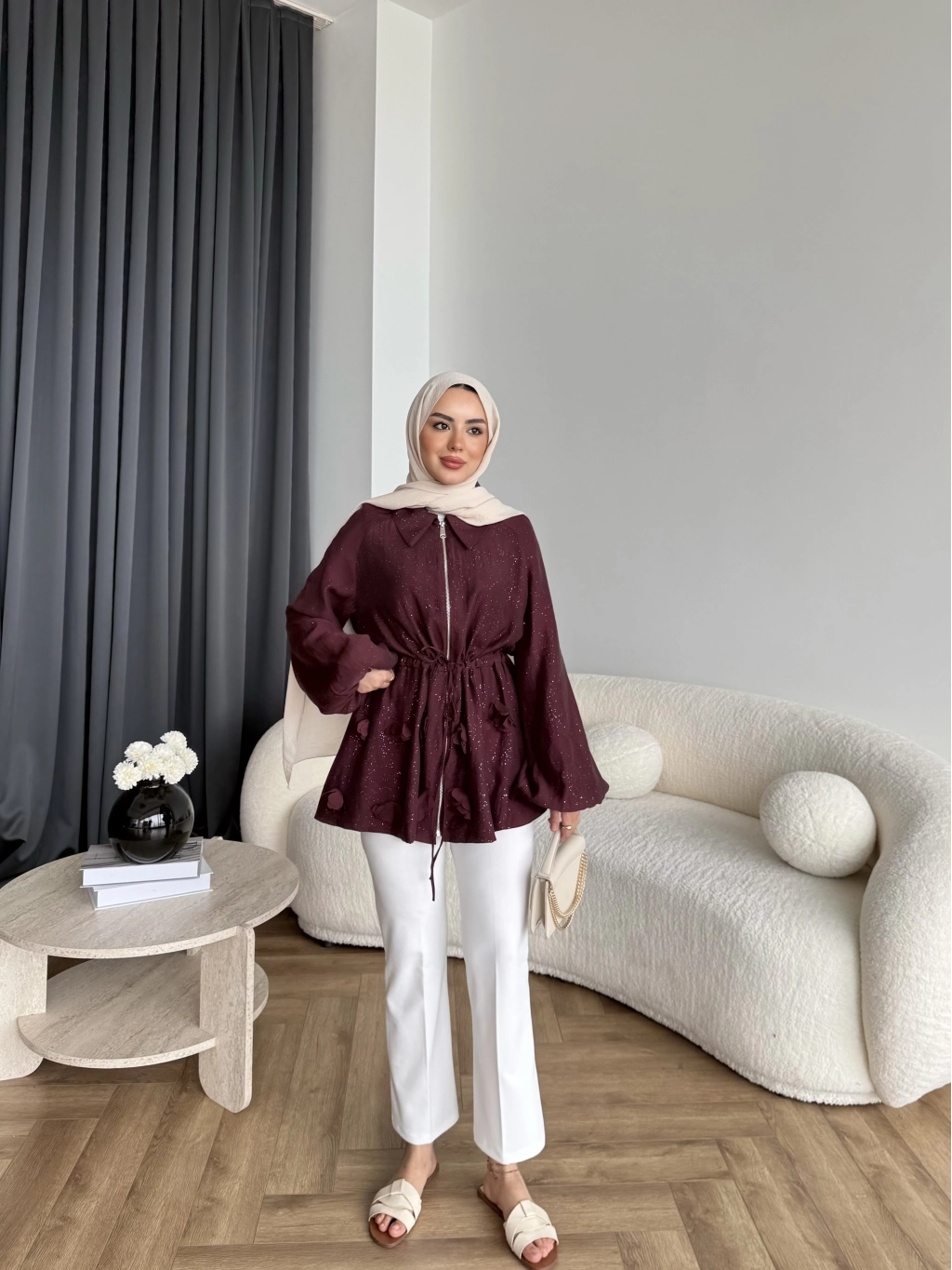 Fuş - Ferilan Fermuarlı Gömlek - Bordo