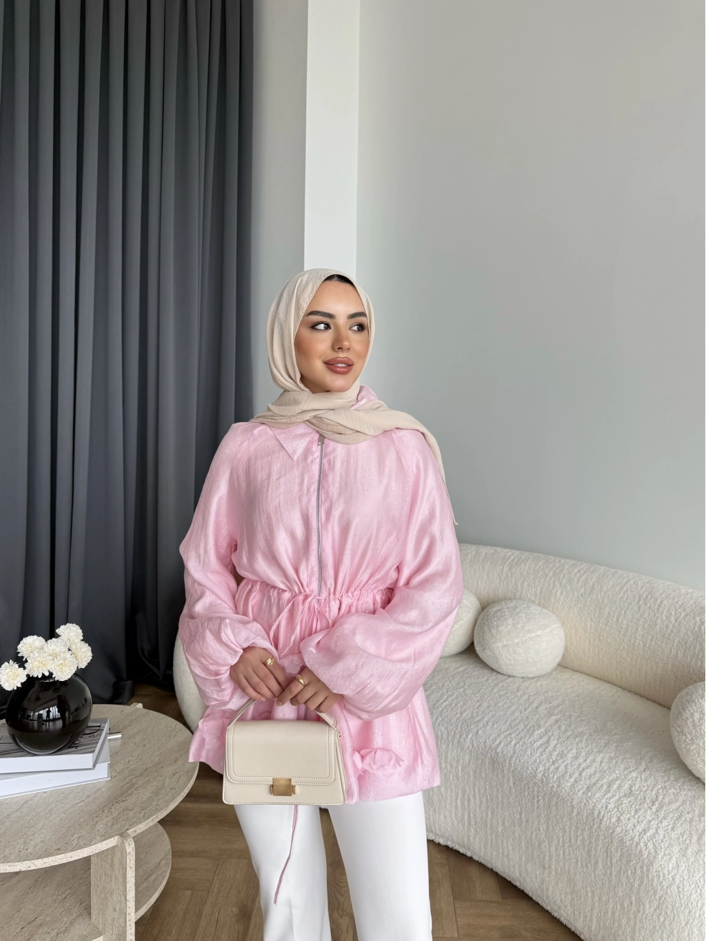 Fuş - Ferilan Fermuarlı Gömlek - Pembe - ÖN SİPARİŞ