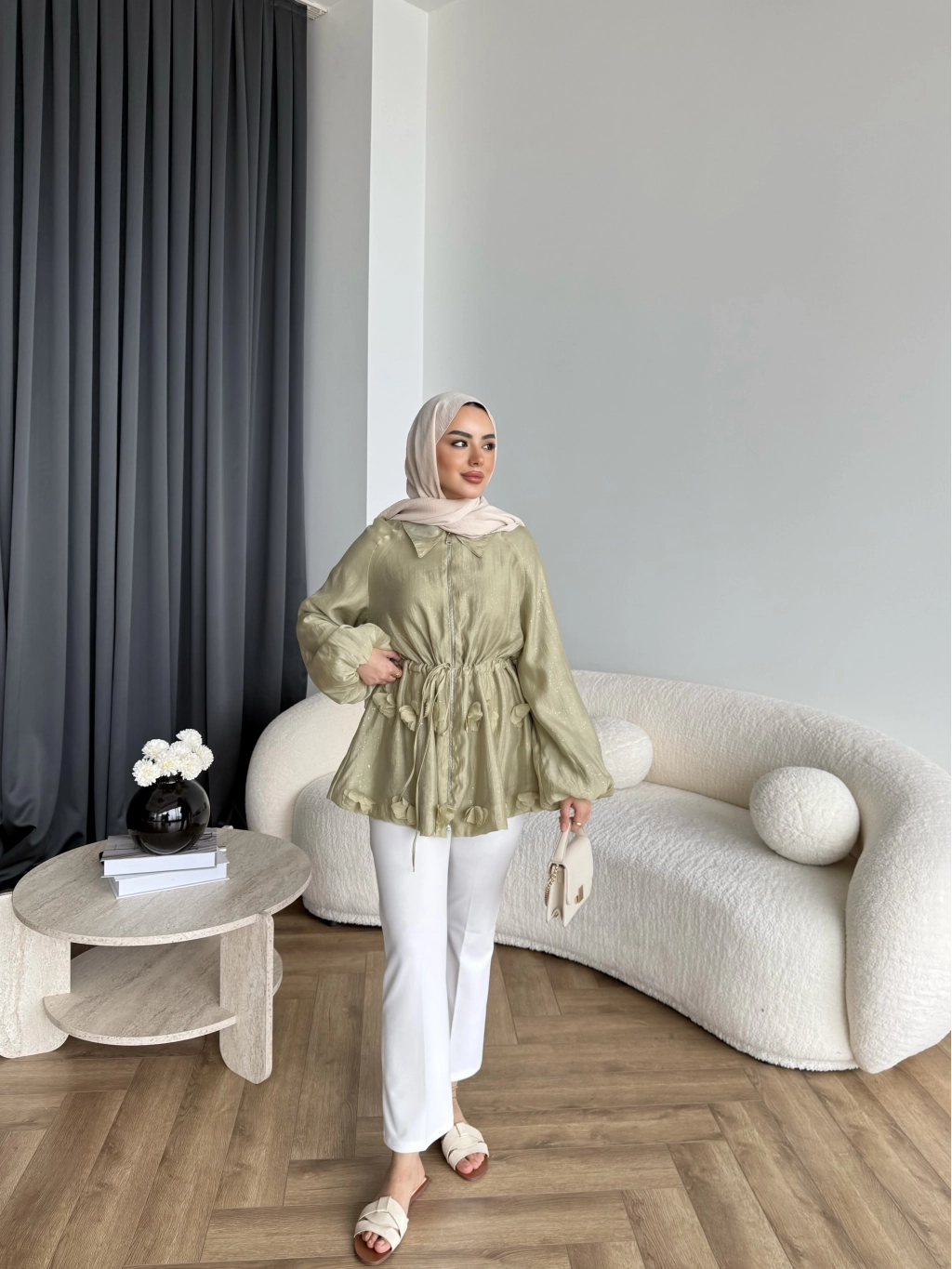 Fuş - Ferilan Fermuarlı Gömlek - Yeşil - ÖN SİPARİŞ