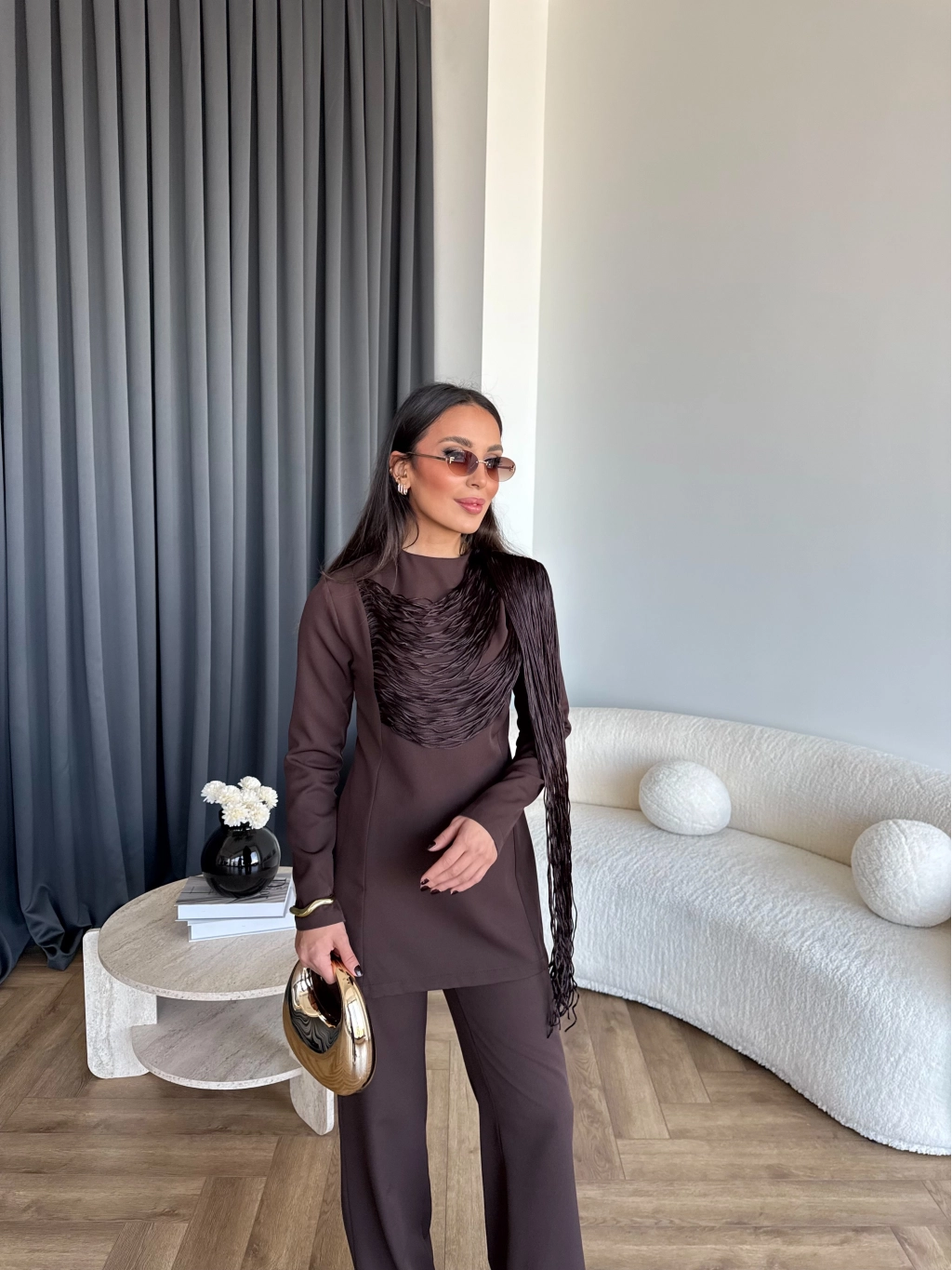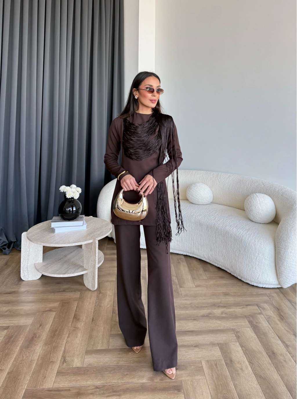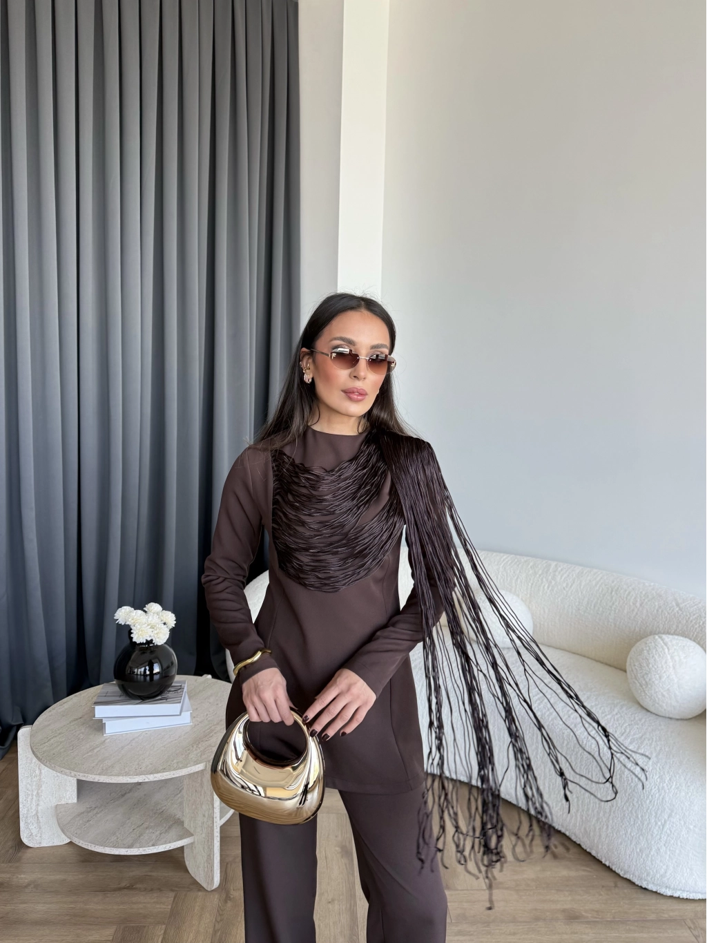 Fuş - Luxe Omuzu Püskül İpli Takım - Acı Kahve