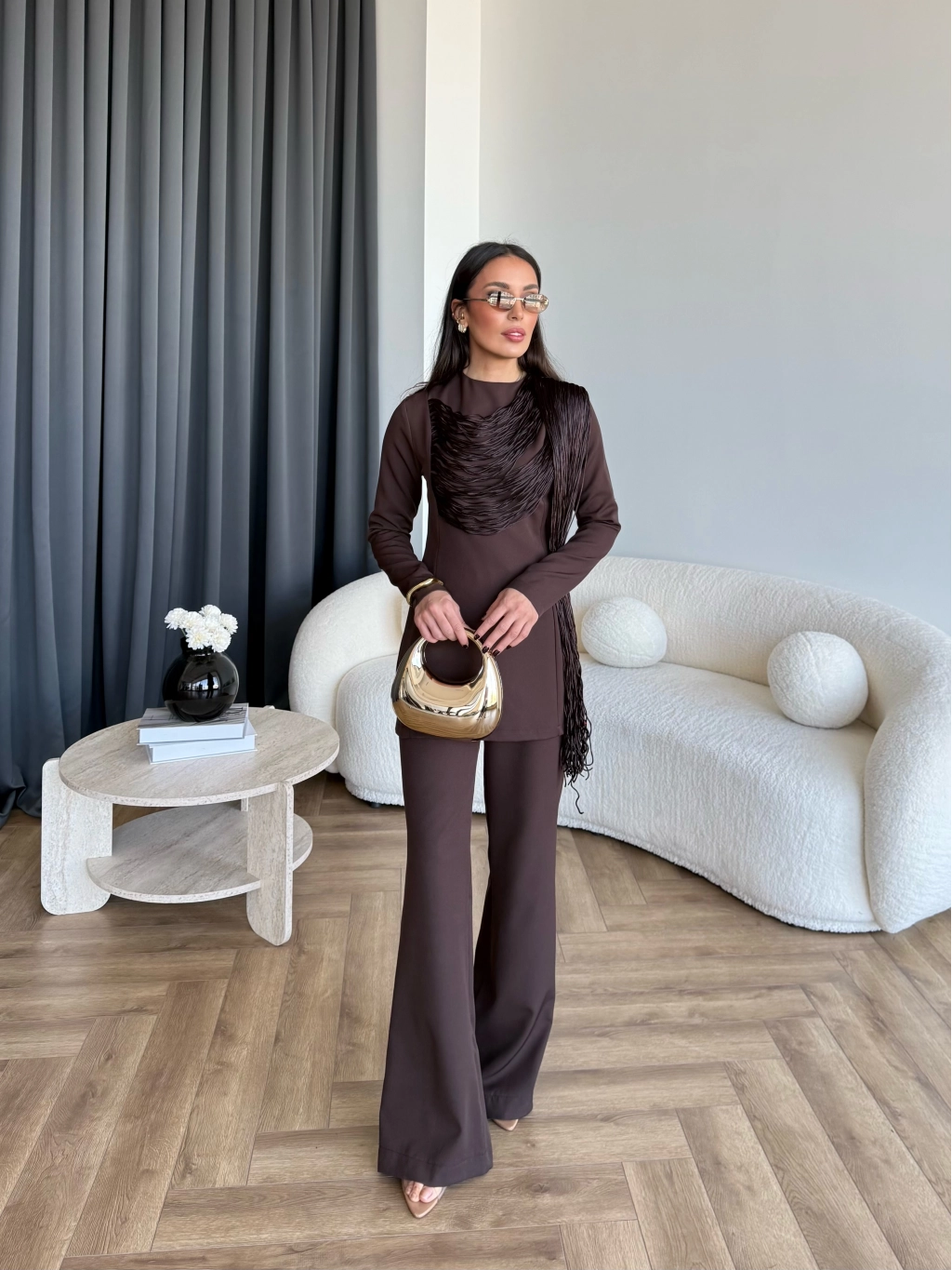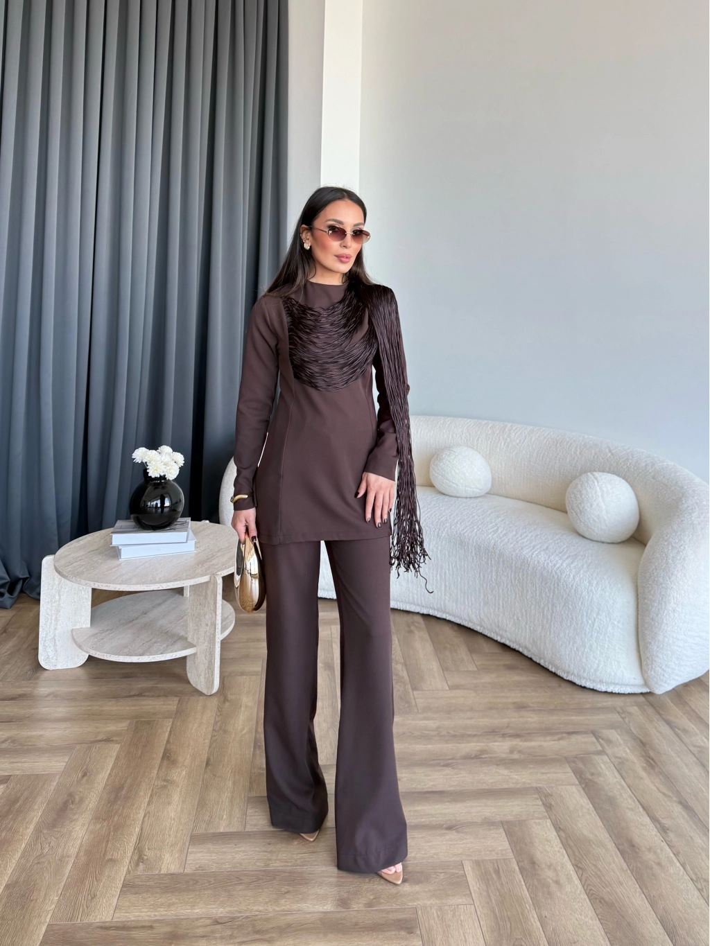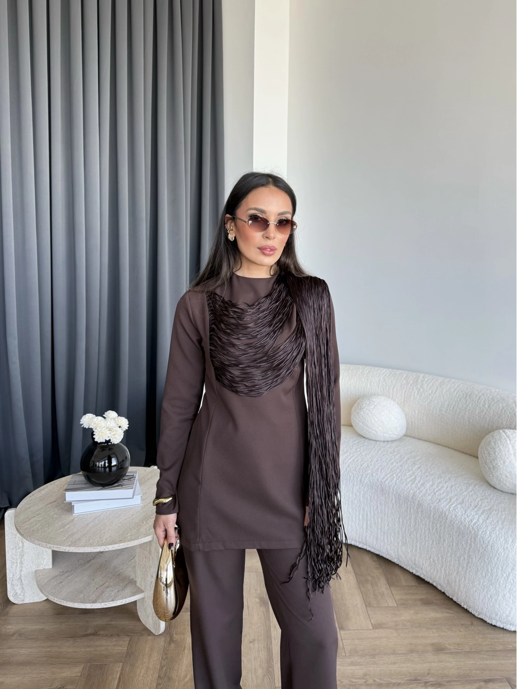 Fuş - Luxe Omuzu Püskül İpli Takım - Acı Kahve