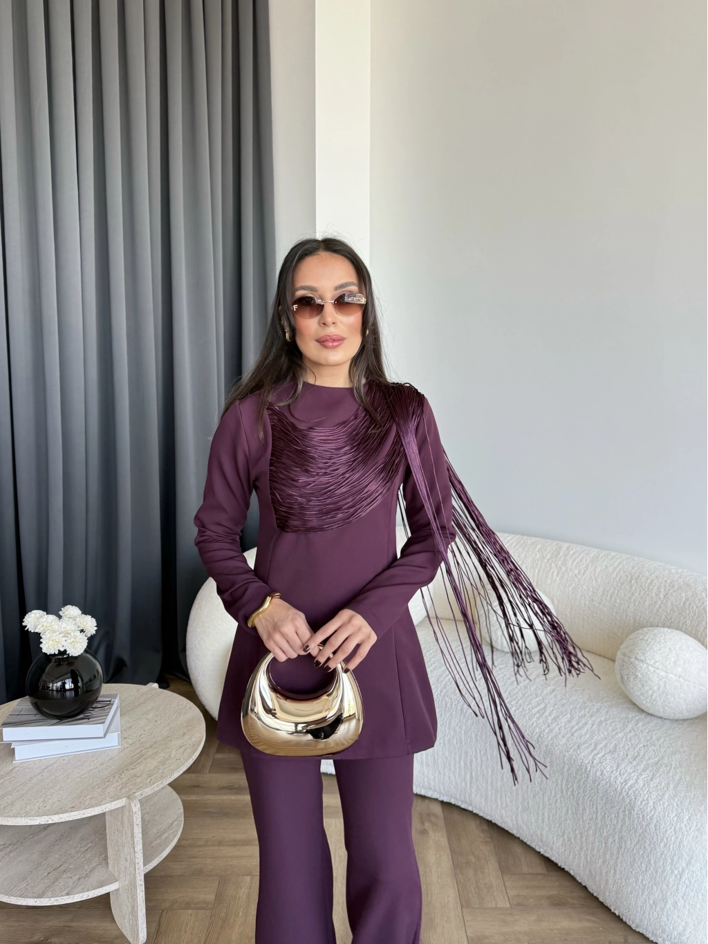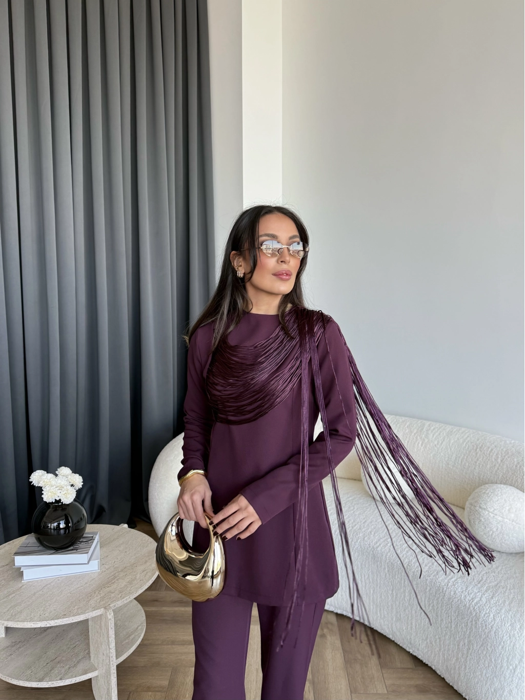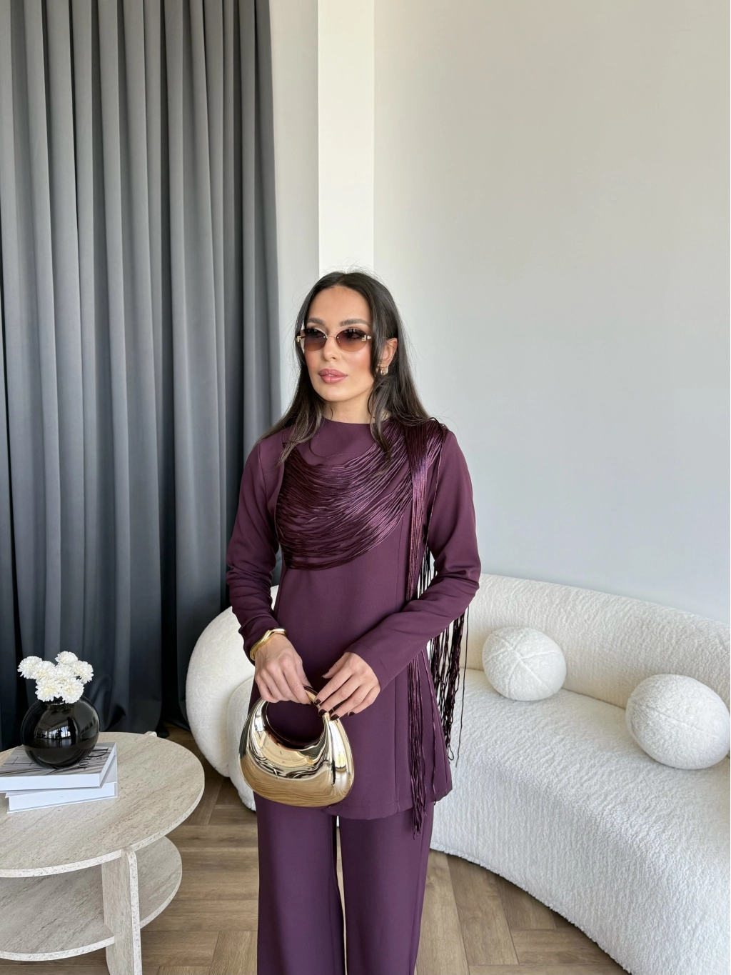 Fuş - Luxe Omuzu Püskül İpli Takım - Bordo