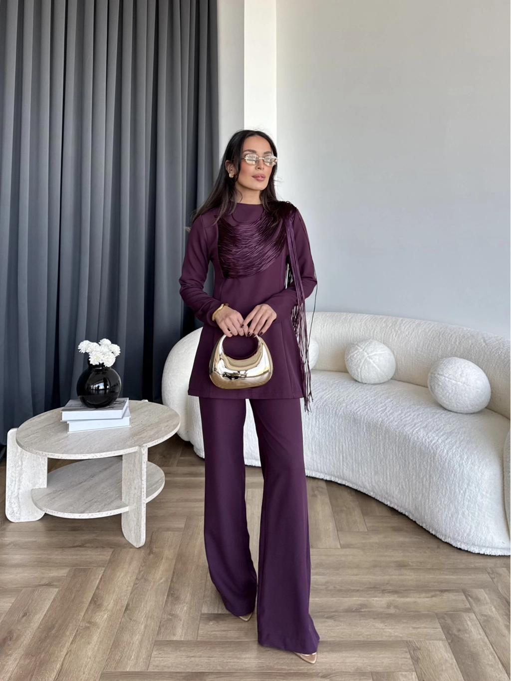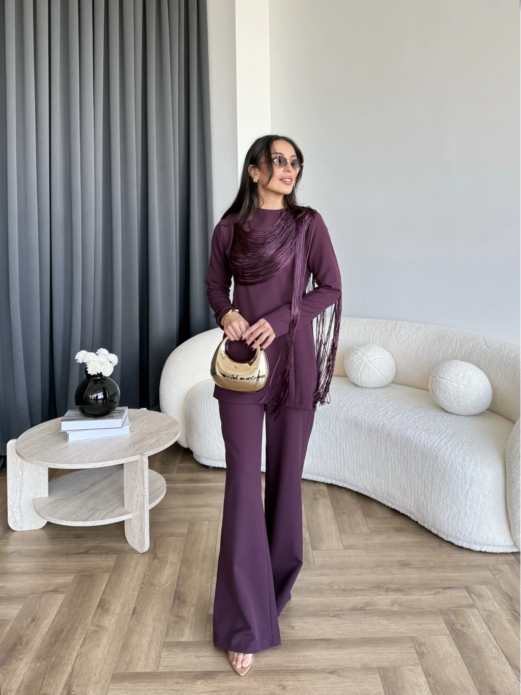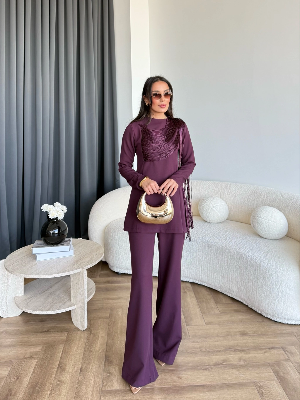 Fuş - Luxe Omuzu Püskül İpli Takım - Bordo