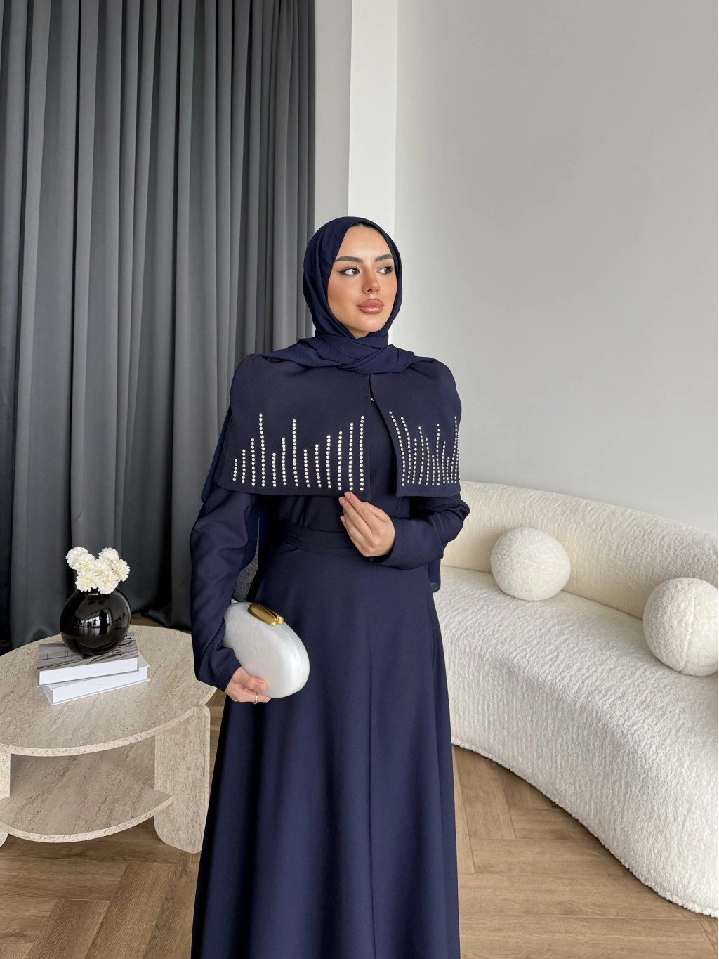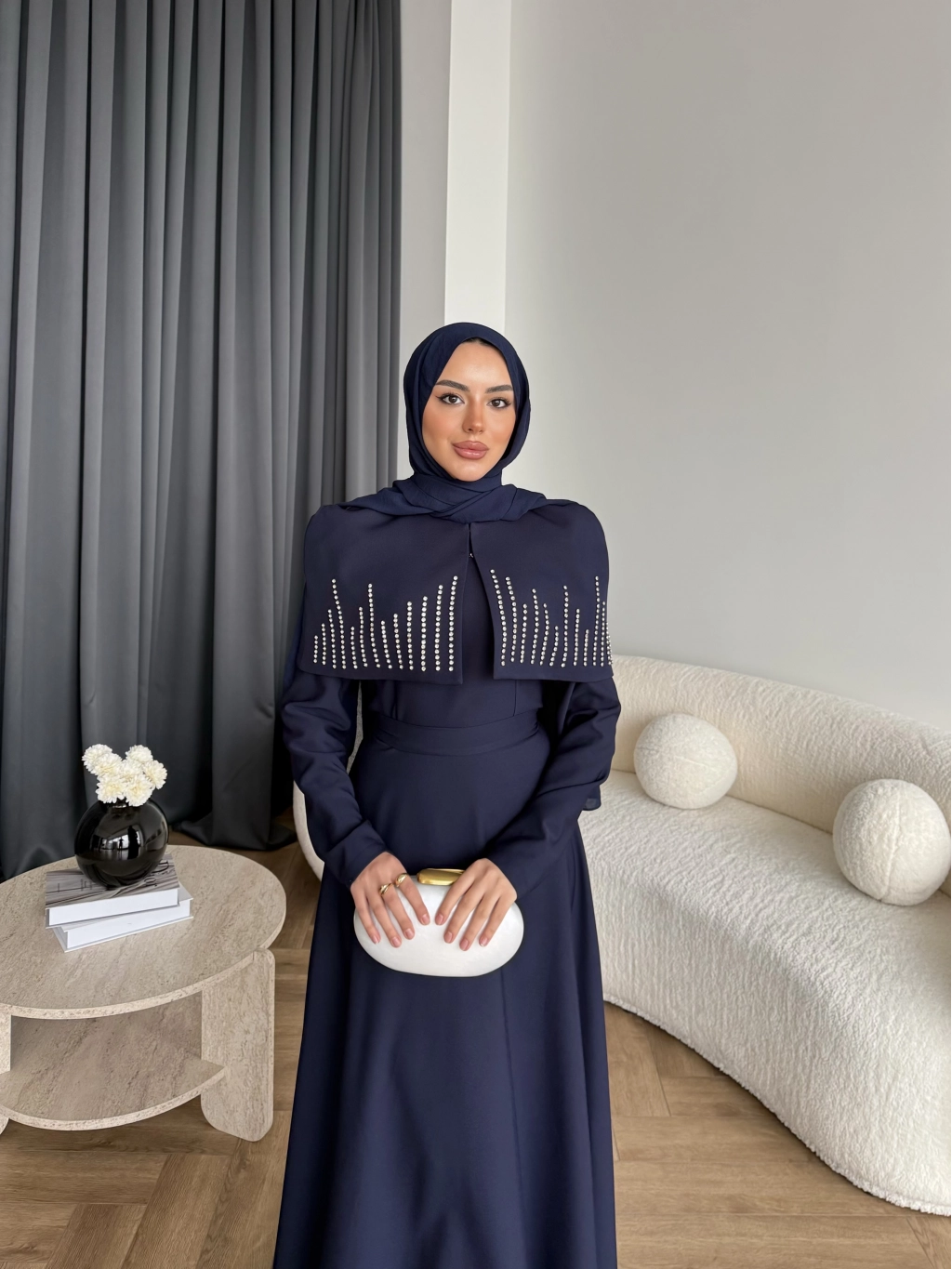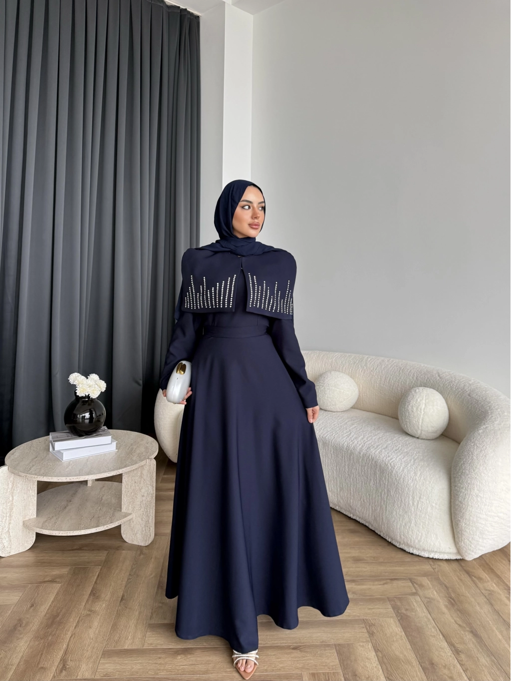 Fuş - Melafis Pelerin Taş Detay Elbise - Lacivert