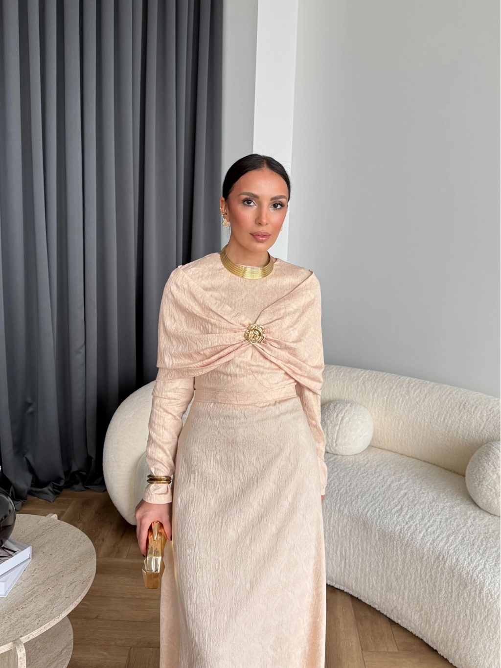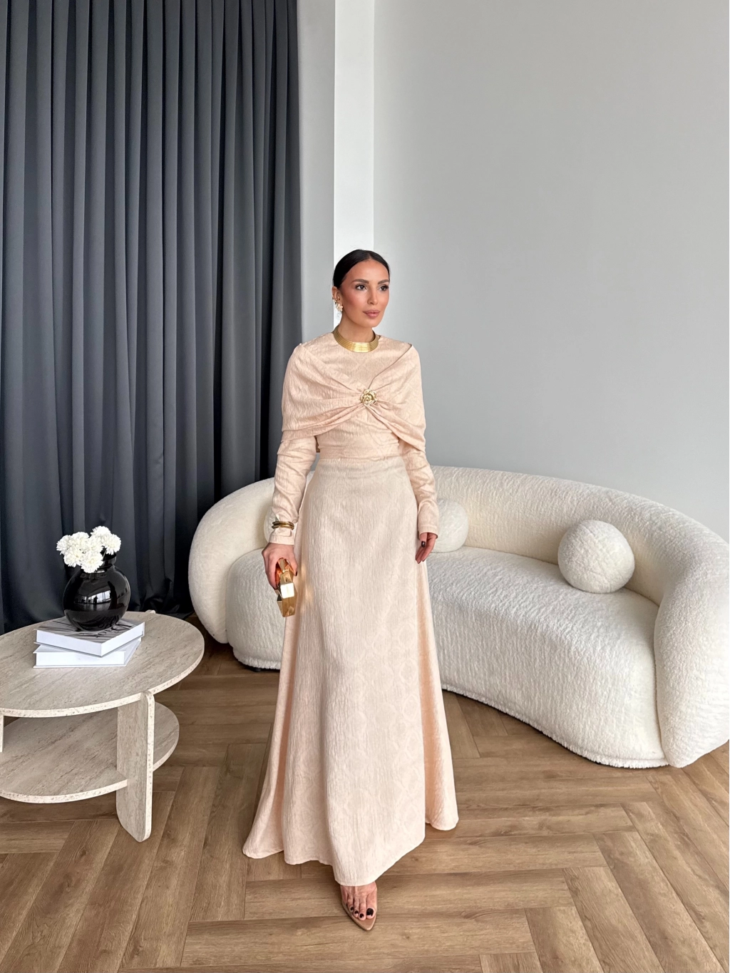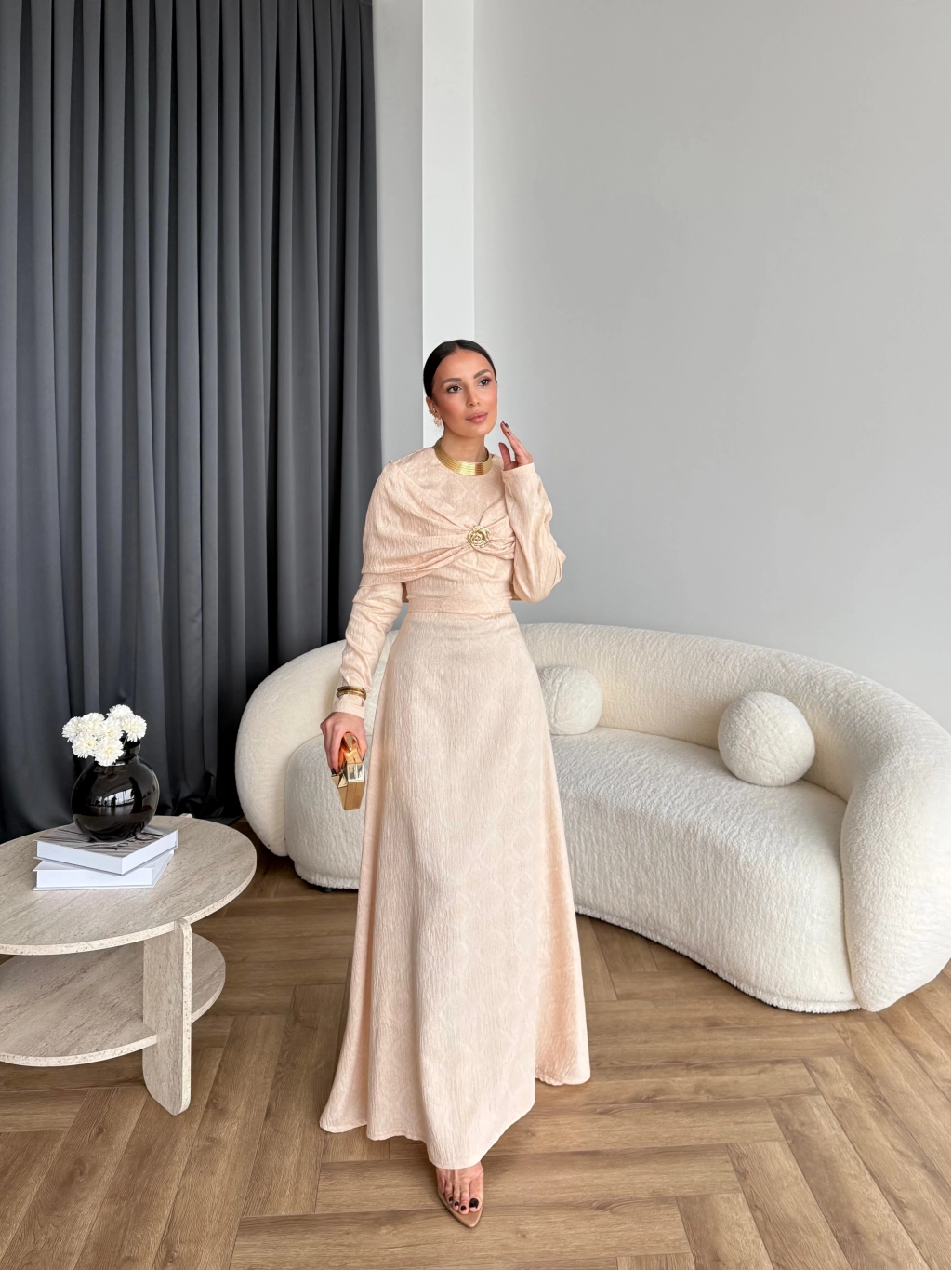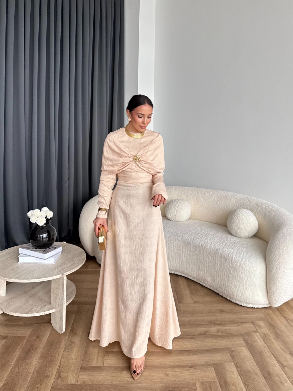 Fuş - Orchid Şal Detaylı Broşlu Elbise - Krem
