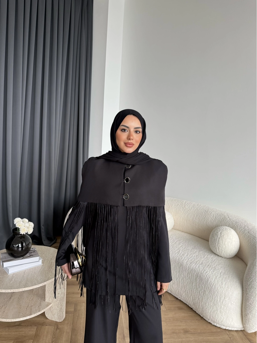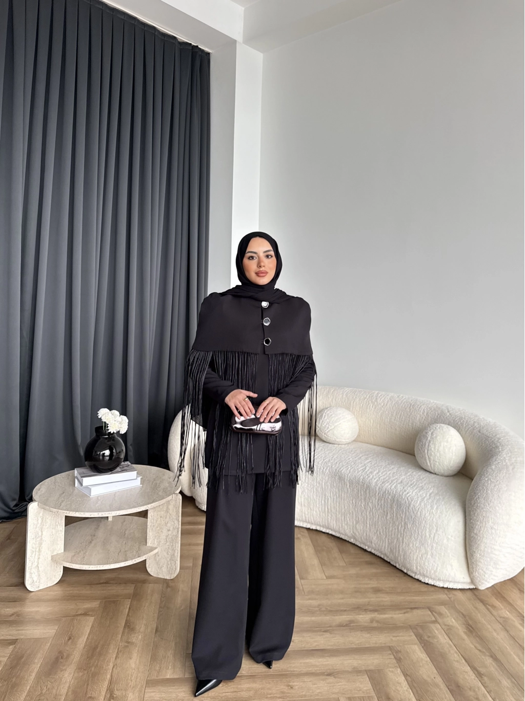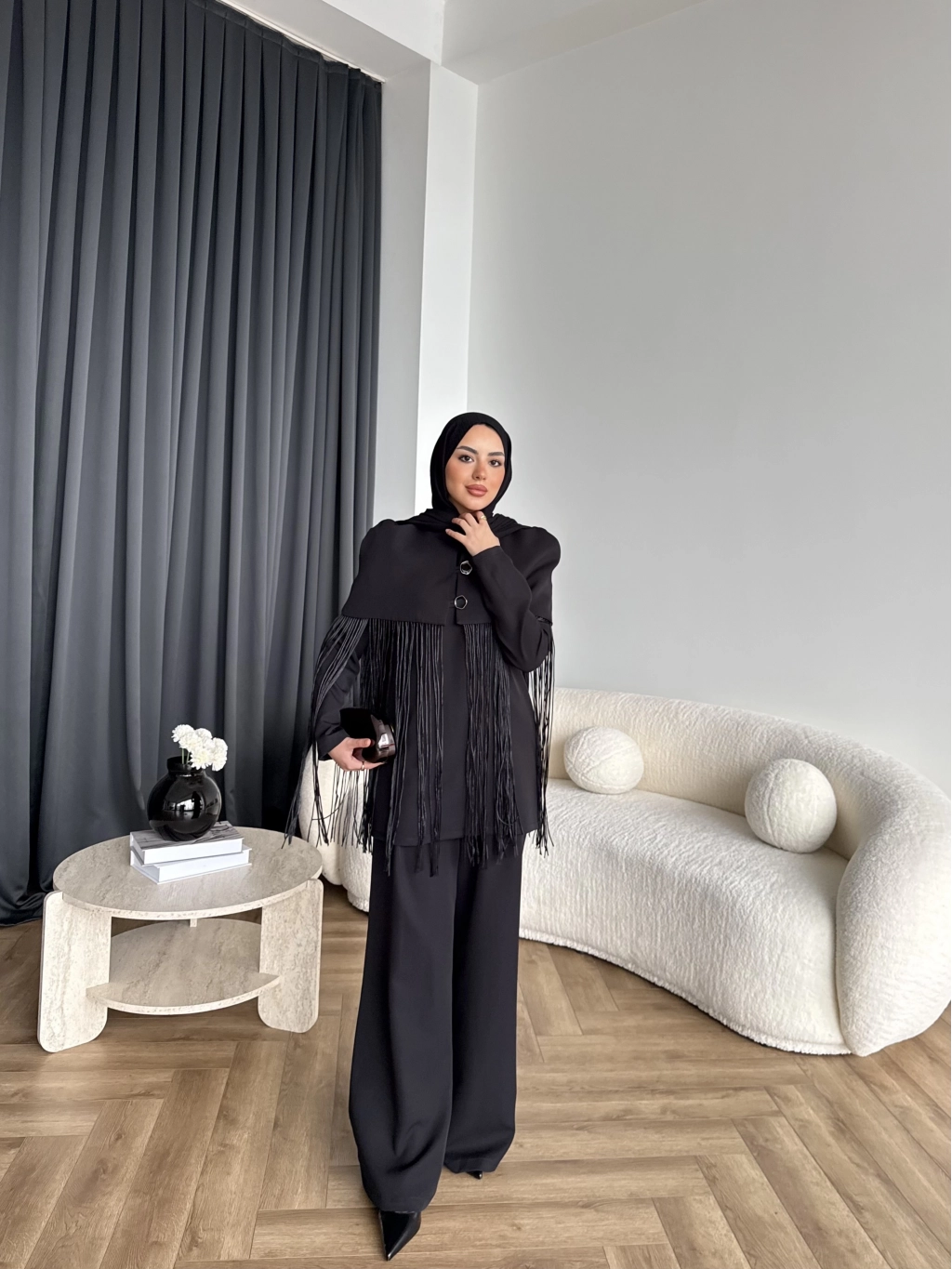 Fuş - Sakura Püsküllü Takım - Siyah