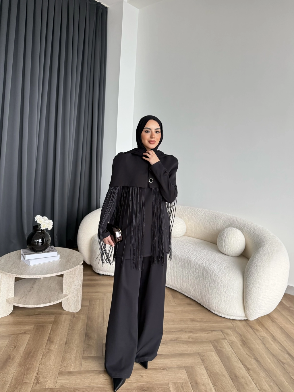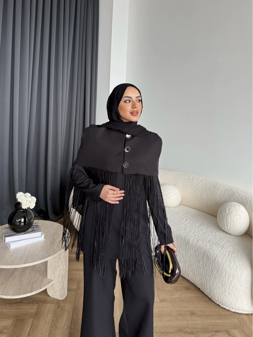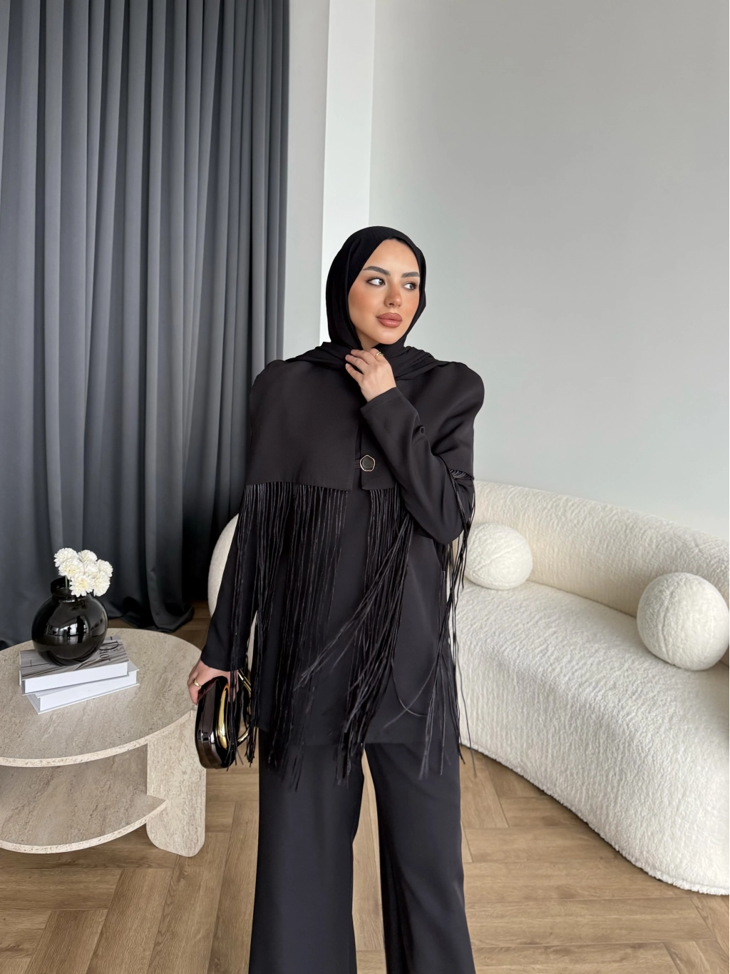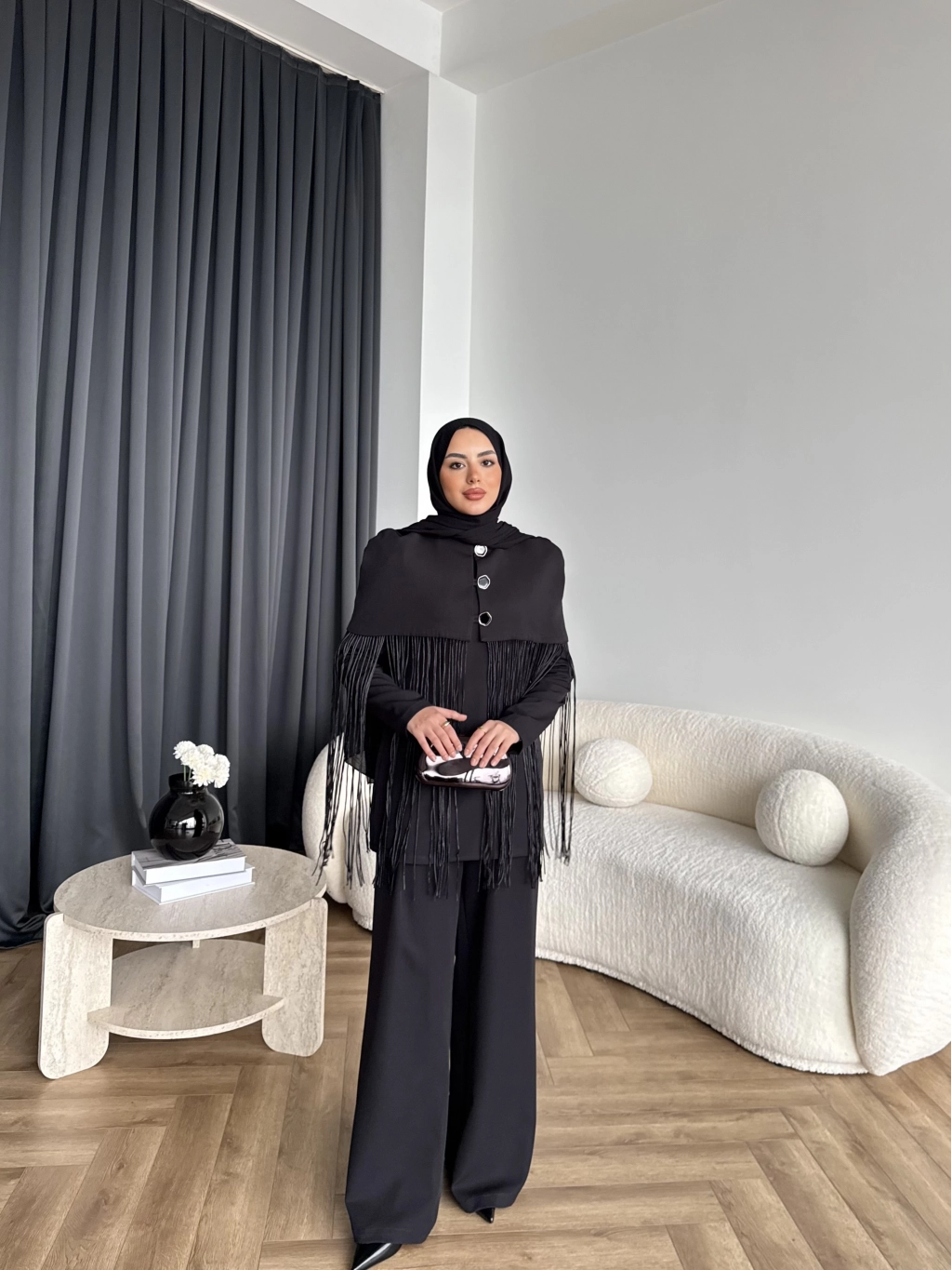 Fuş - Sakura Püsküllü Takım - Siyah