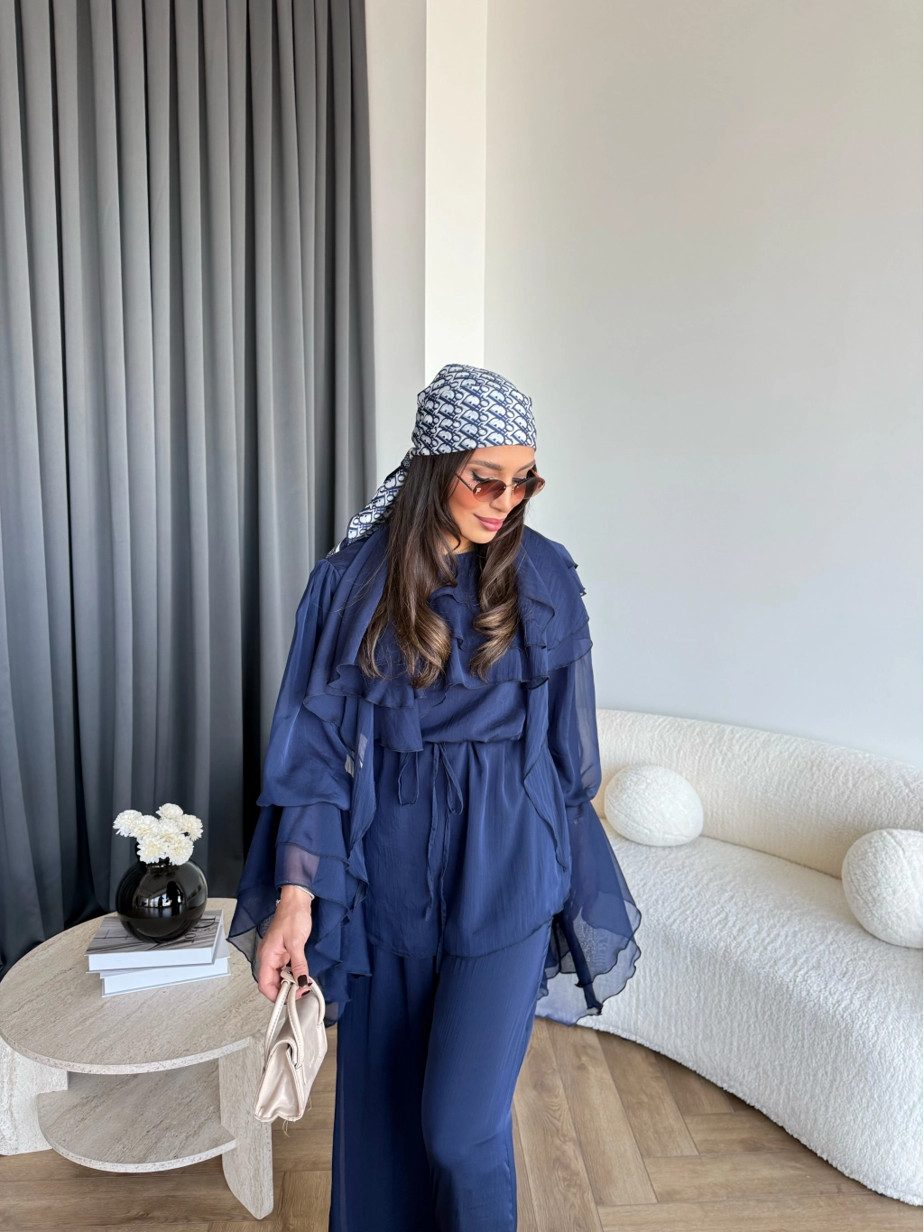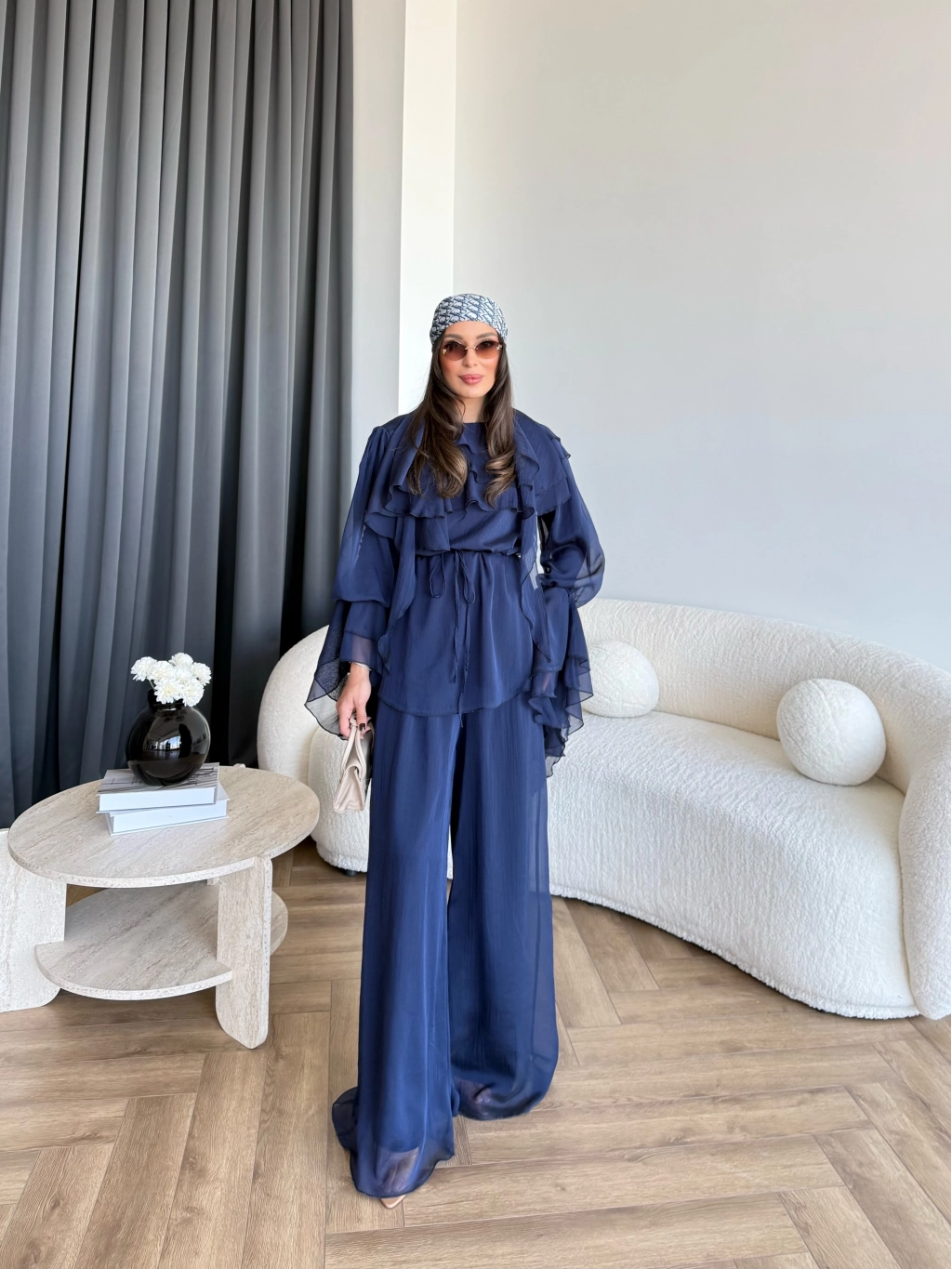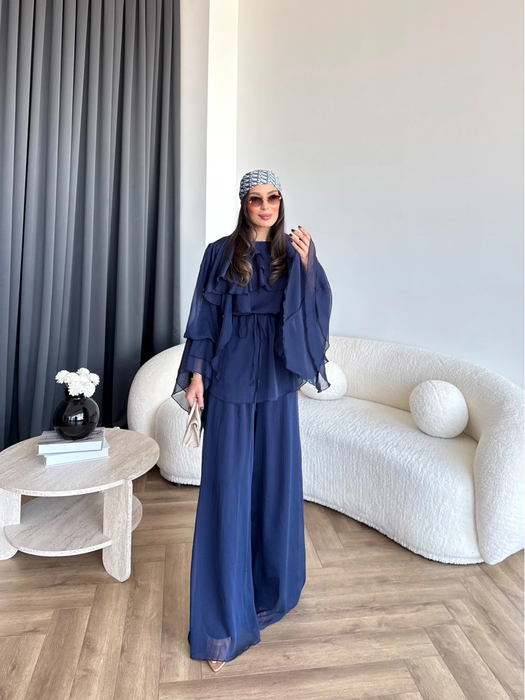Fuş - Volan Kol Şifon Takım - Lacivert - ÖN SİPARİŞTİR