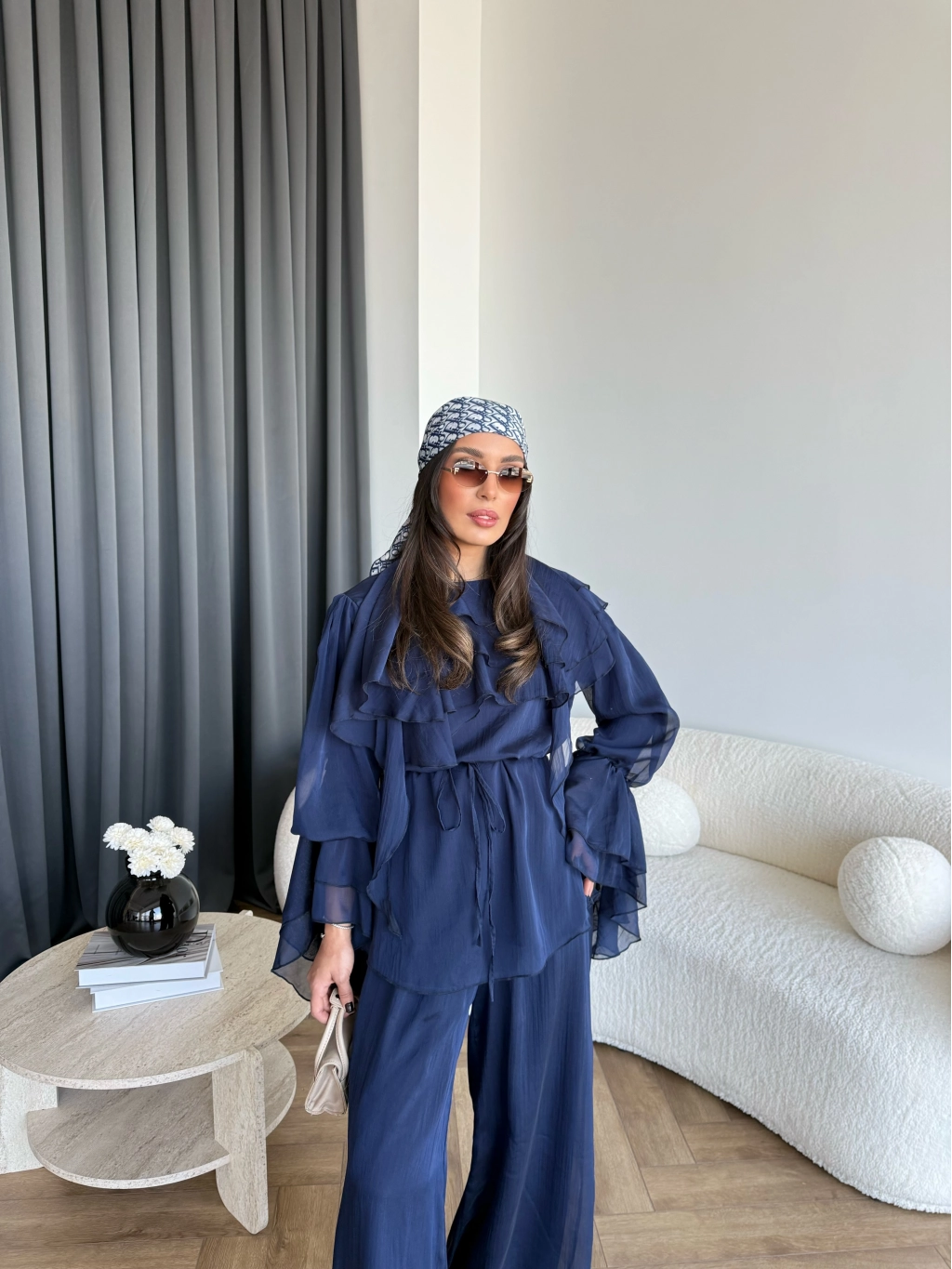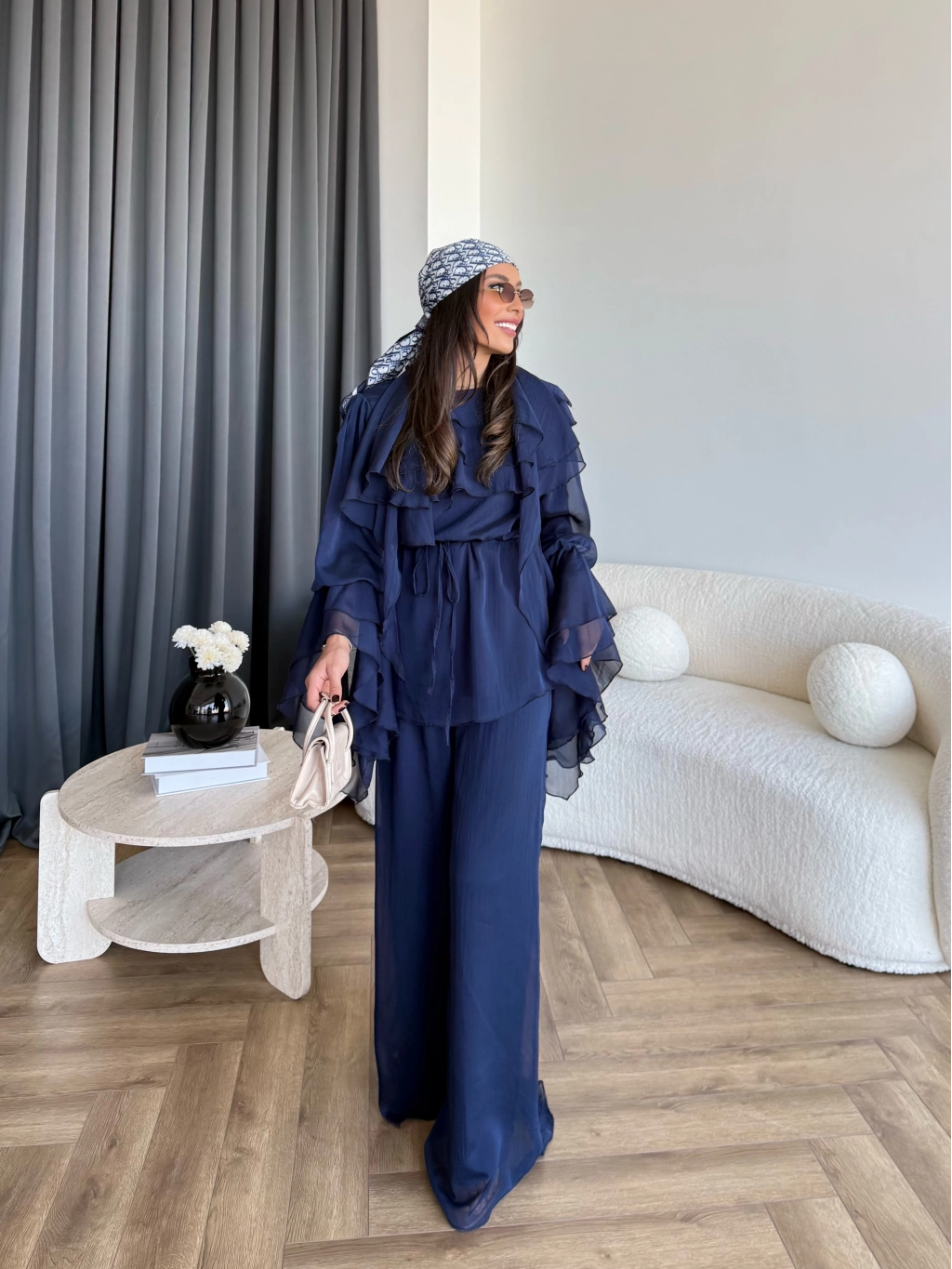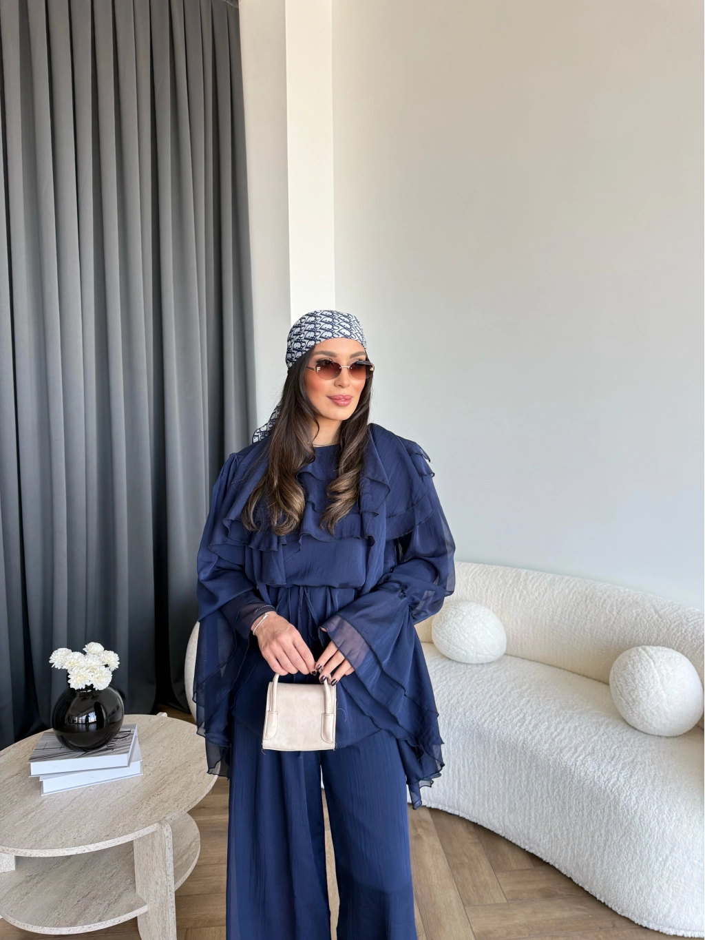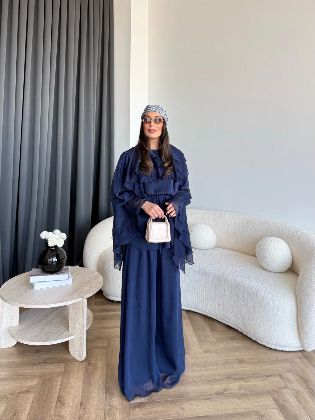 Fuş - Volan Kol Şifon Takım - Lacivert - ÖN SİPARİŞTİR