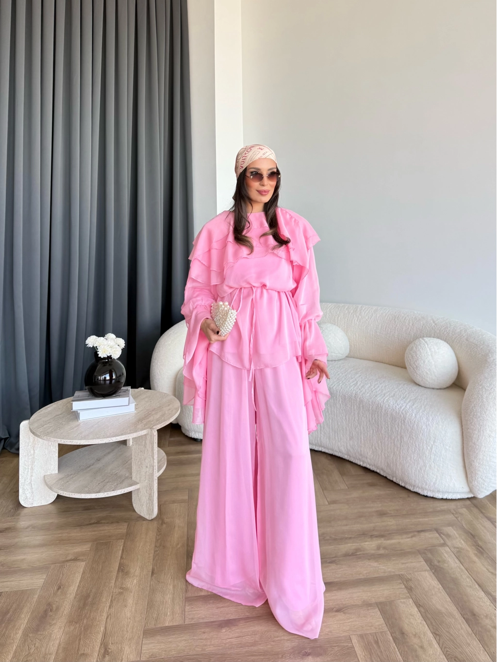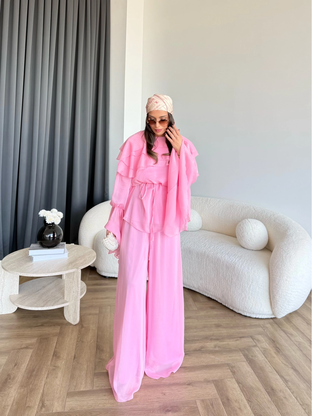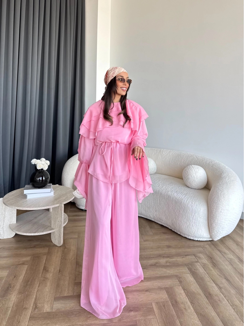 Fuş - Volan Kol Şifon Takım - Pembe - ÖN SİPARİŞTİR