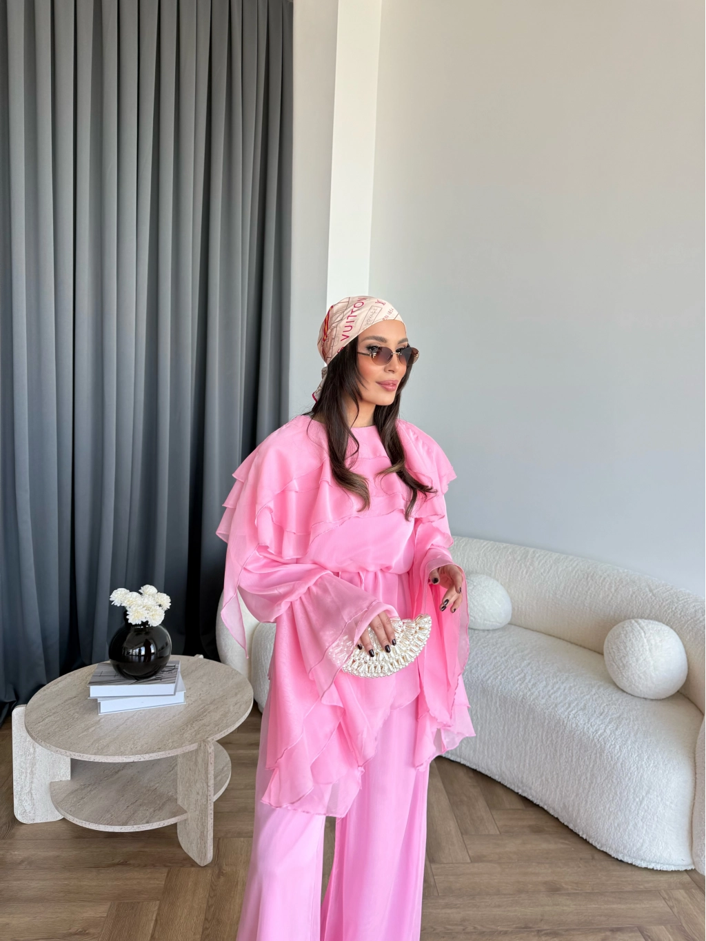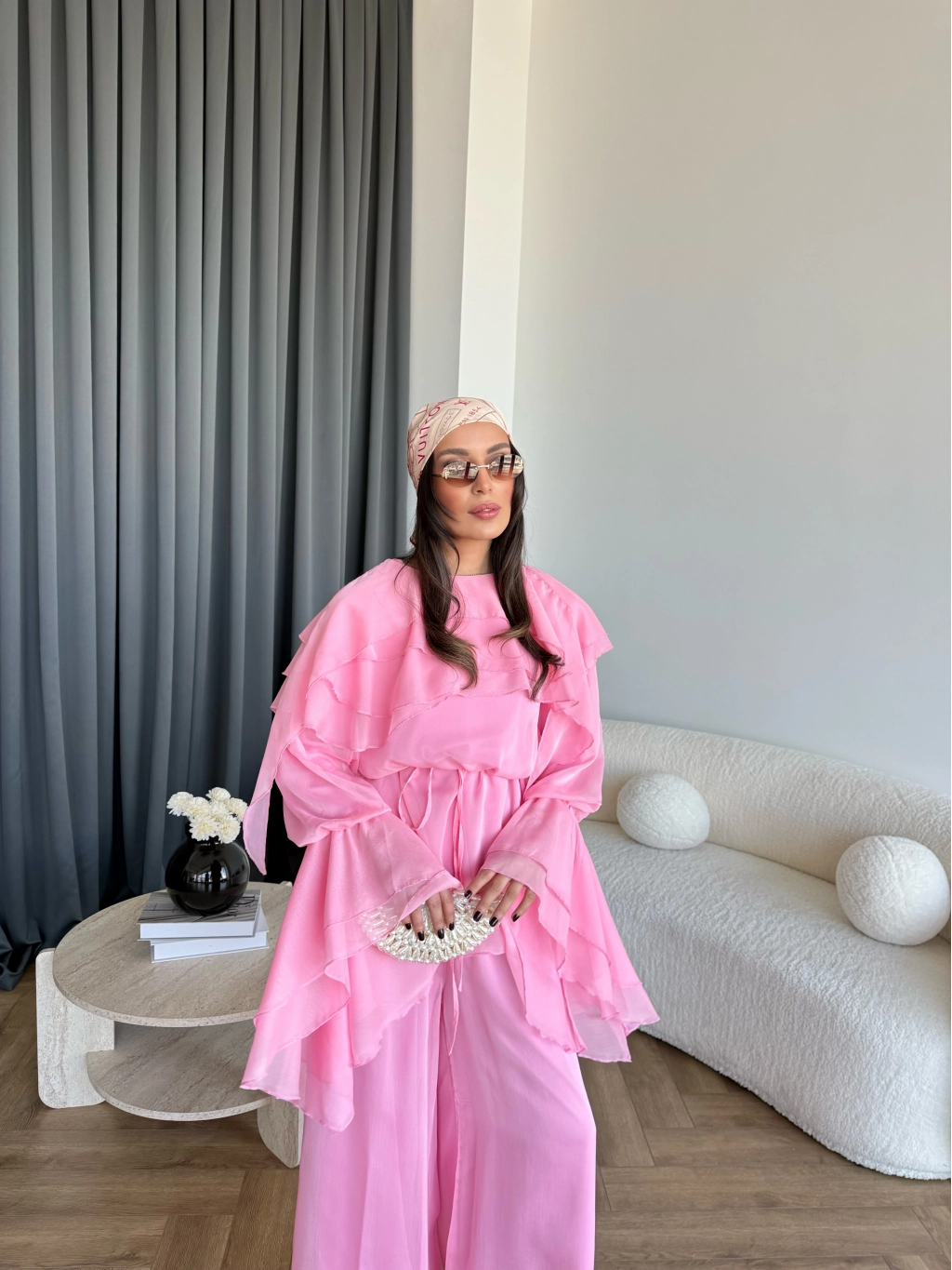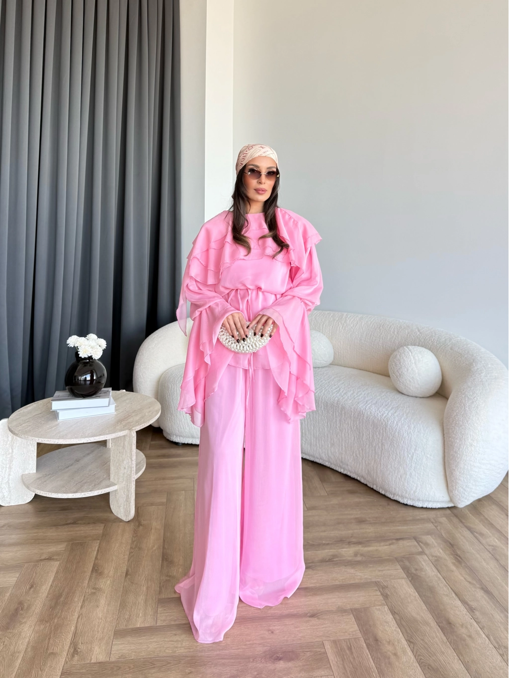 Fuş - Volan Kol Şifon Takım - Pembe - ÖN SİPARİŞTİR