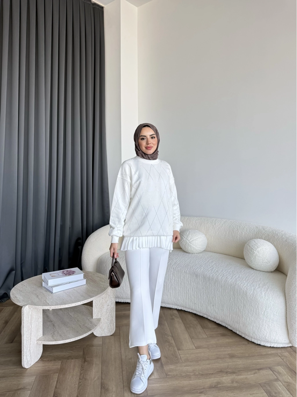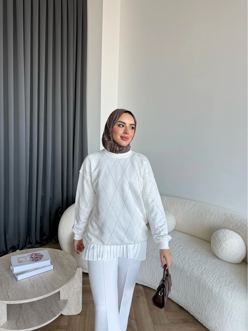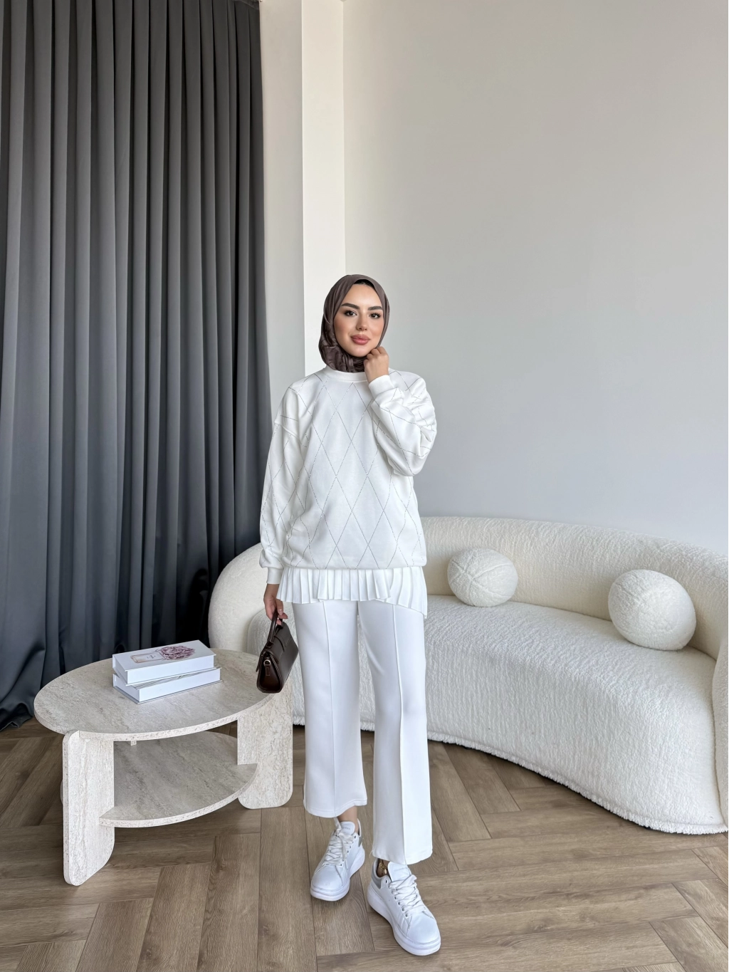 Gn-Elban Taşlı Sweat - Beyaz