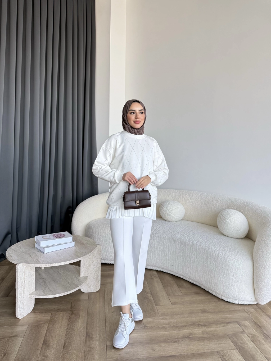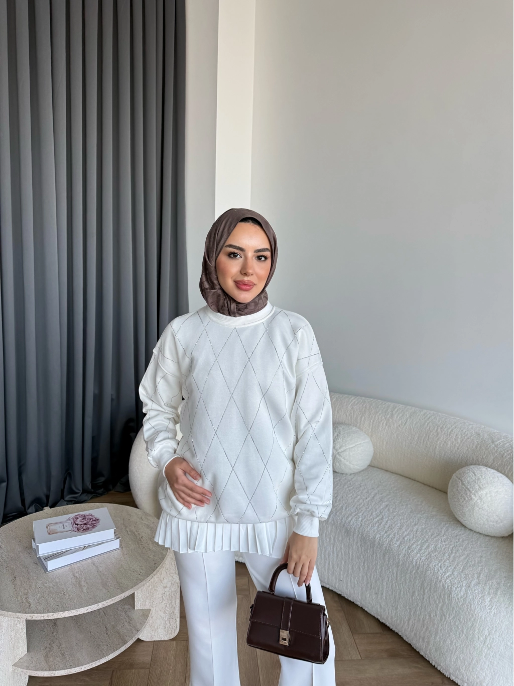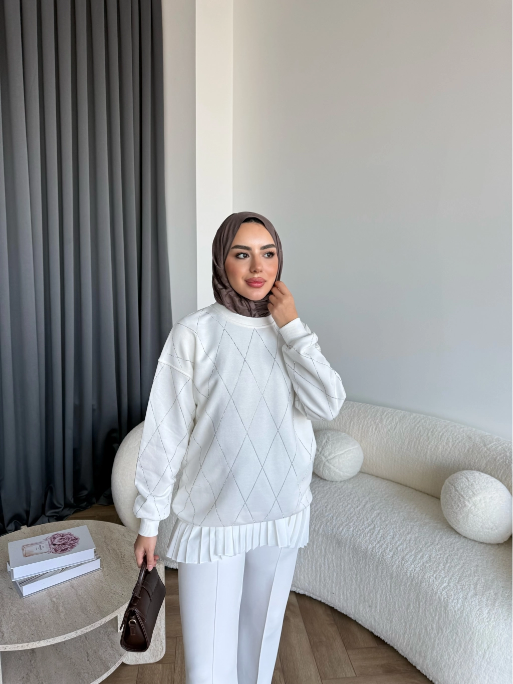 Gn-Elban Taşlı Sweat - Beyaz