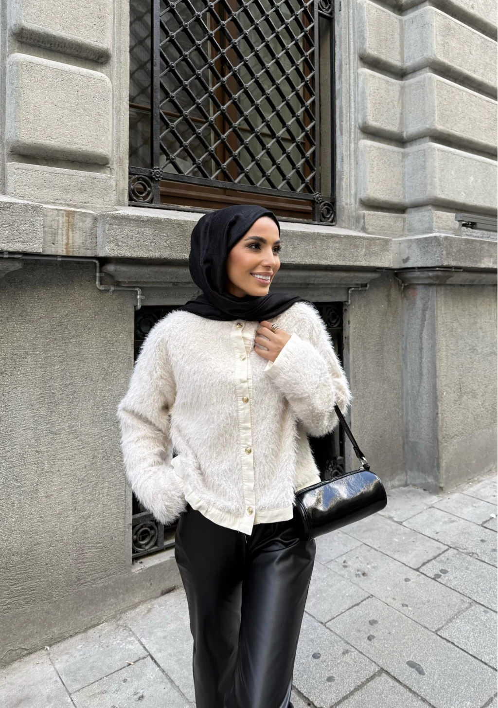 Fırfır Detaylı Peluş Hırka - Siyah