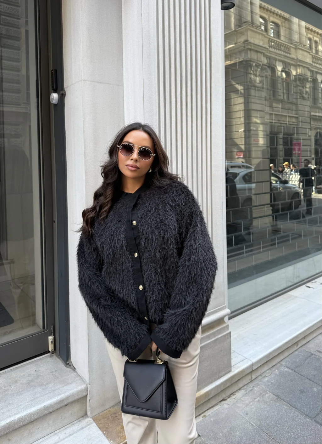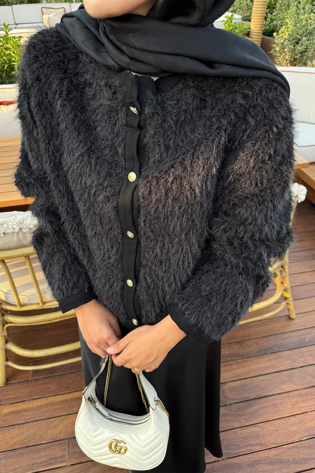 İnci Şerit Detaylı Kürk Ceket - Siyah