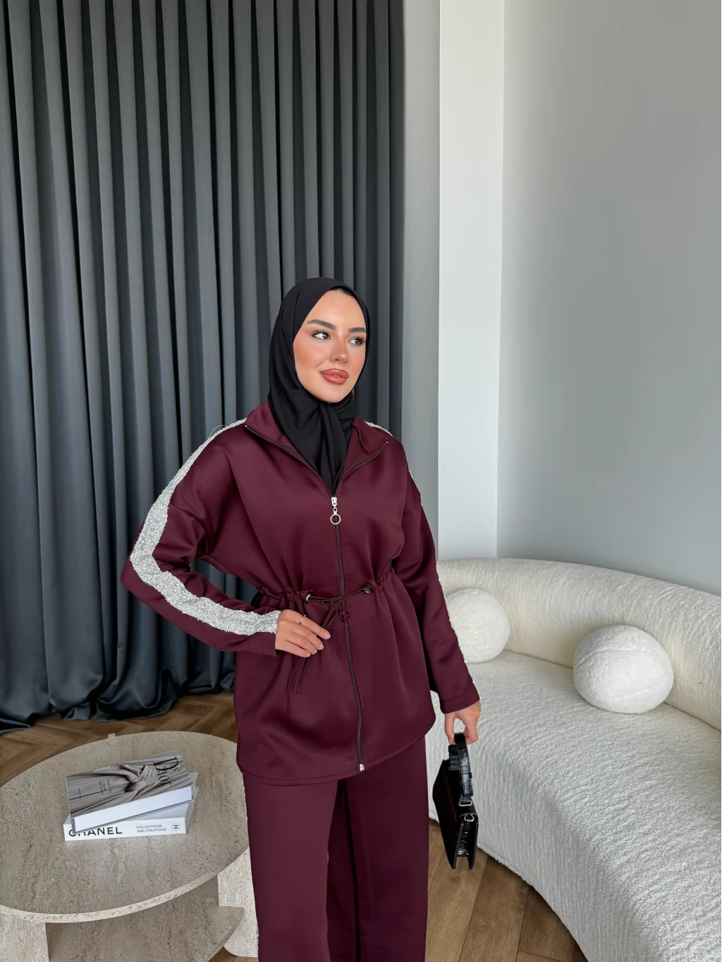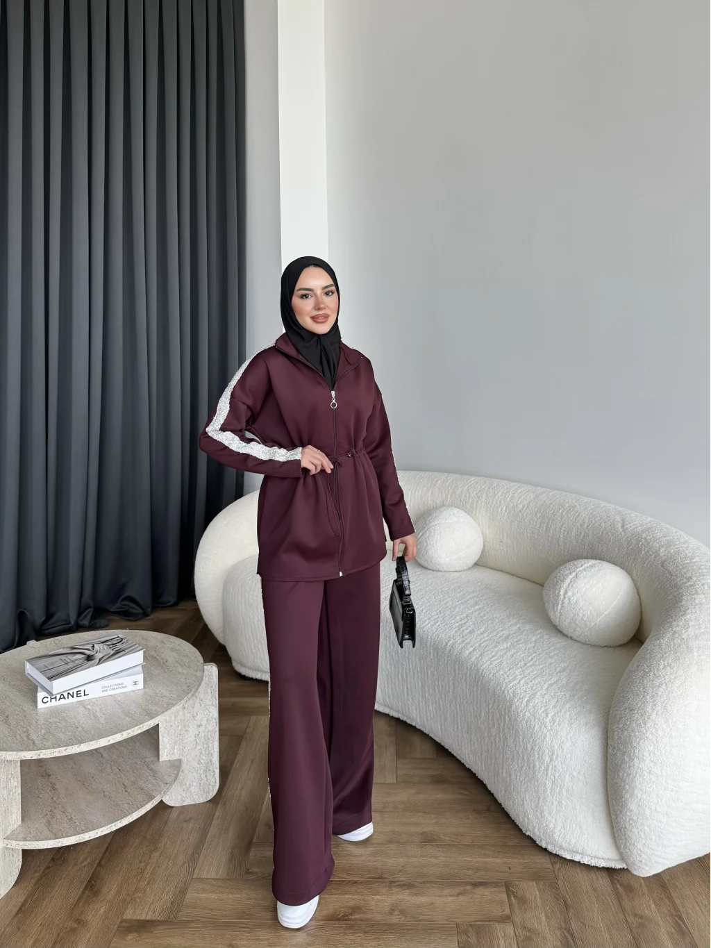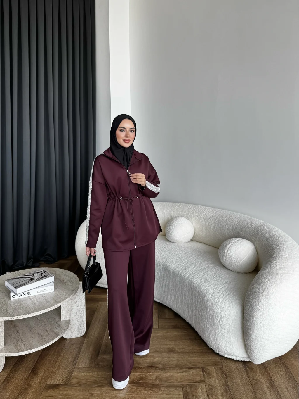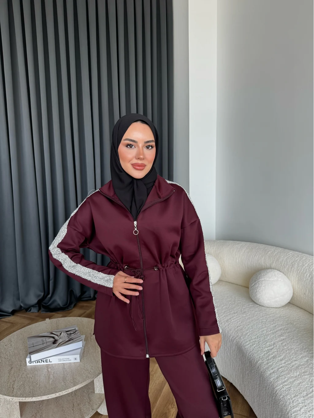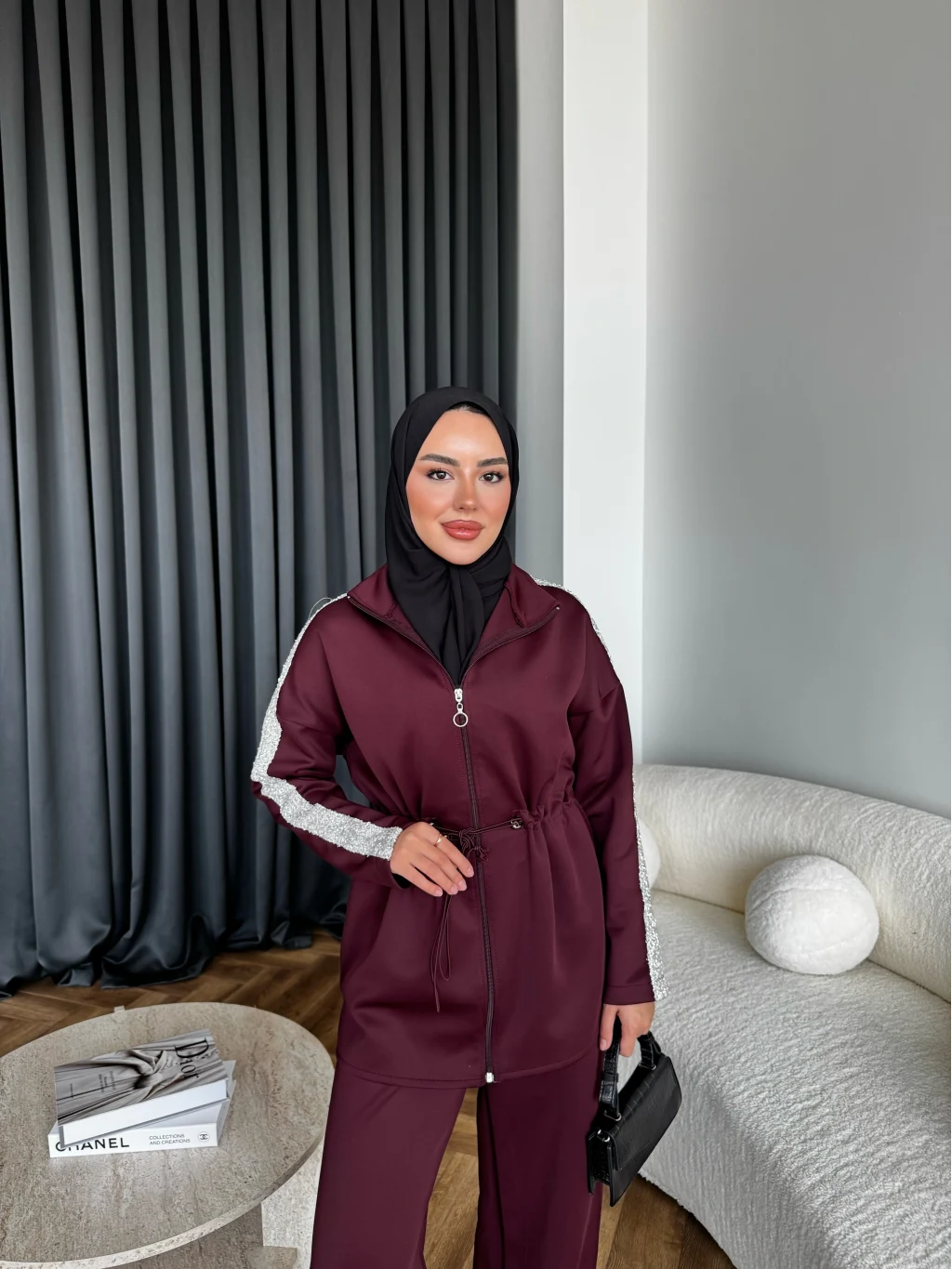 Gollan Fermuarlı Scuba Takım - Acı Kahve