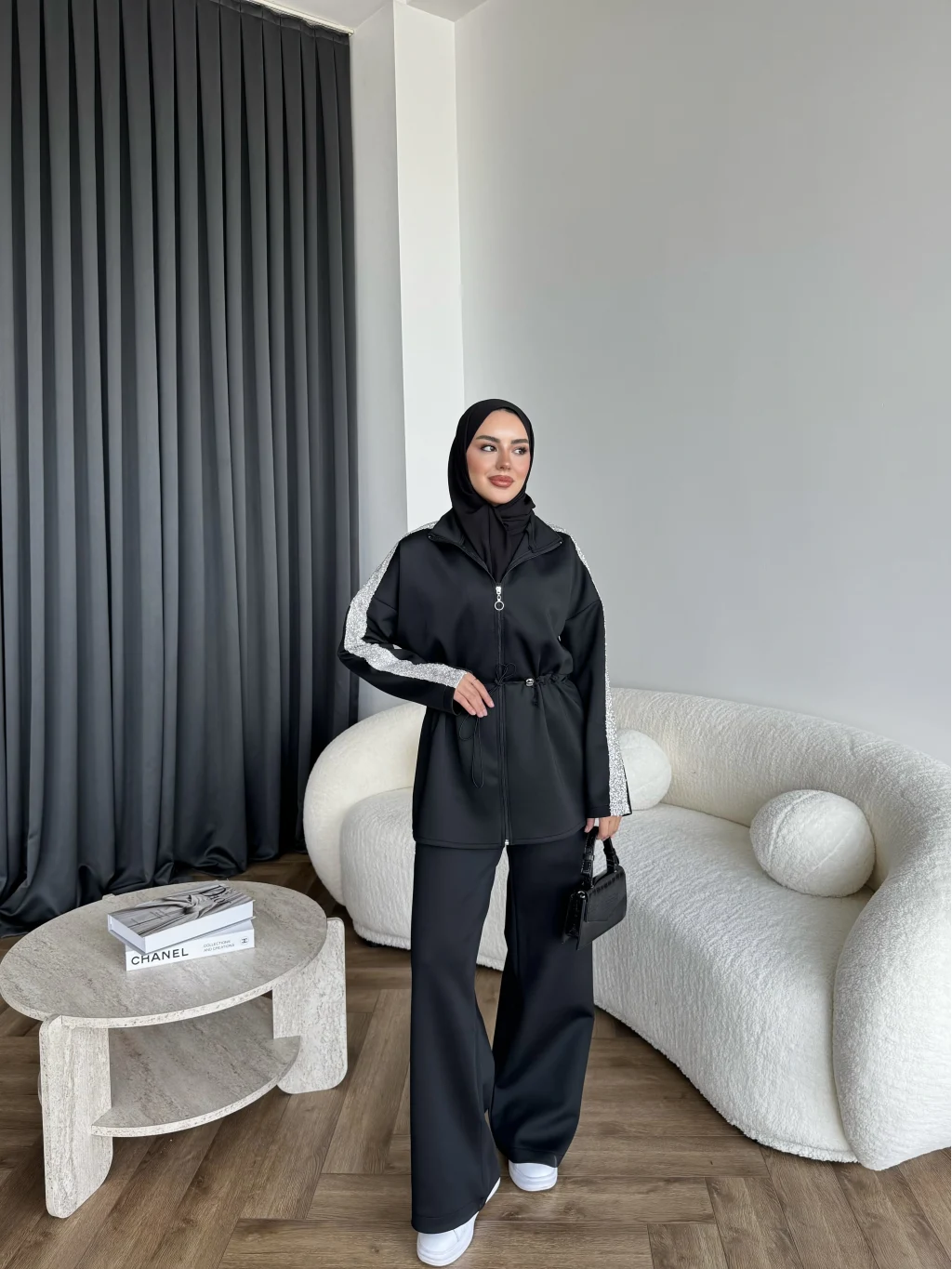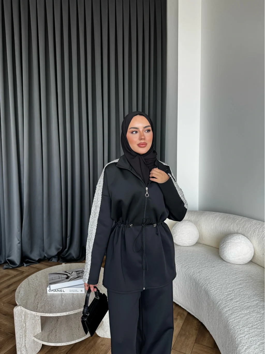 Gollan Fermuarlı Scuba Takım - Acı Kahve