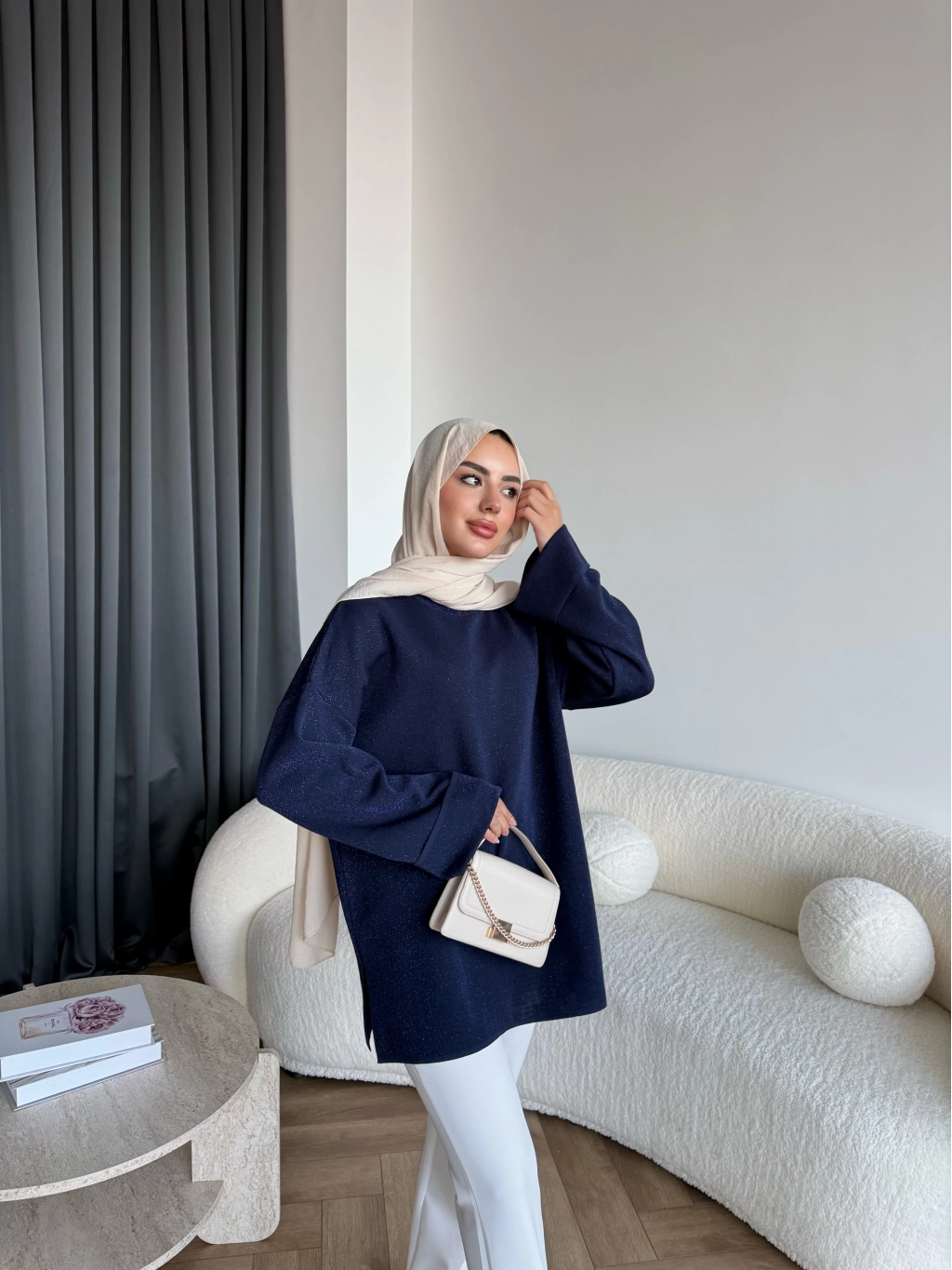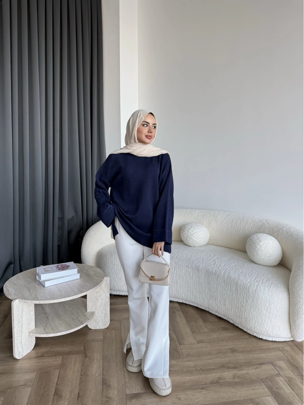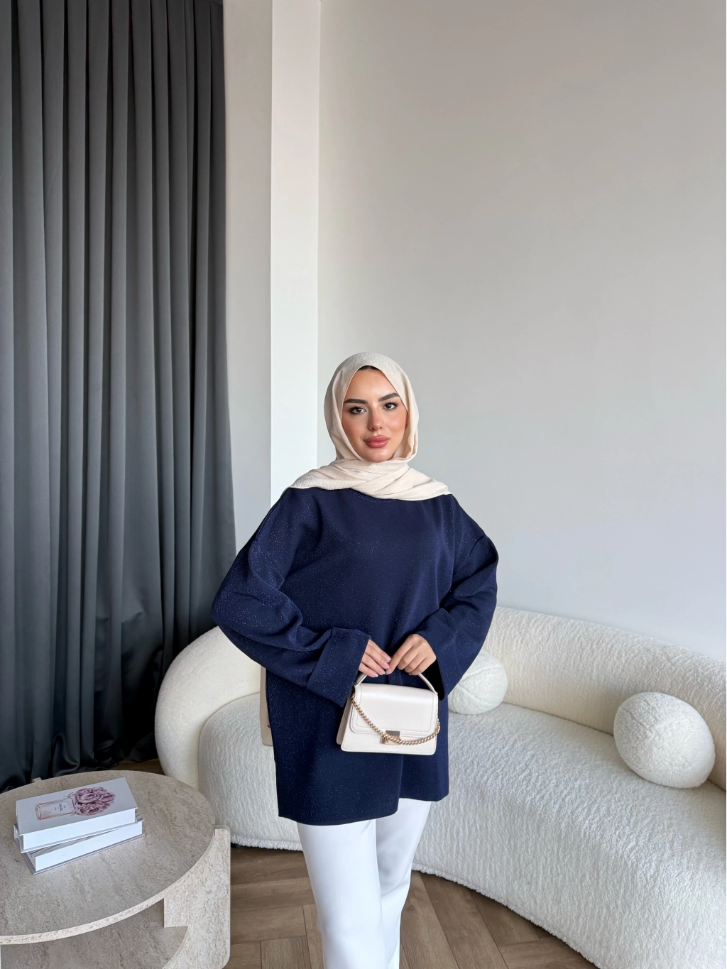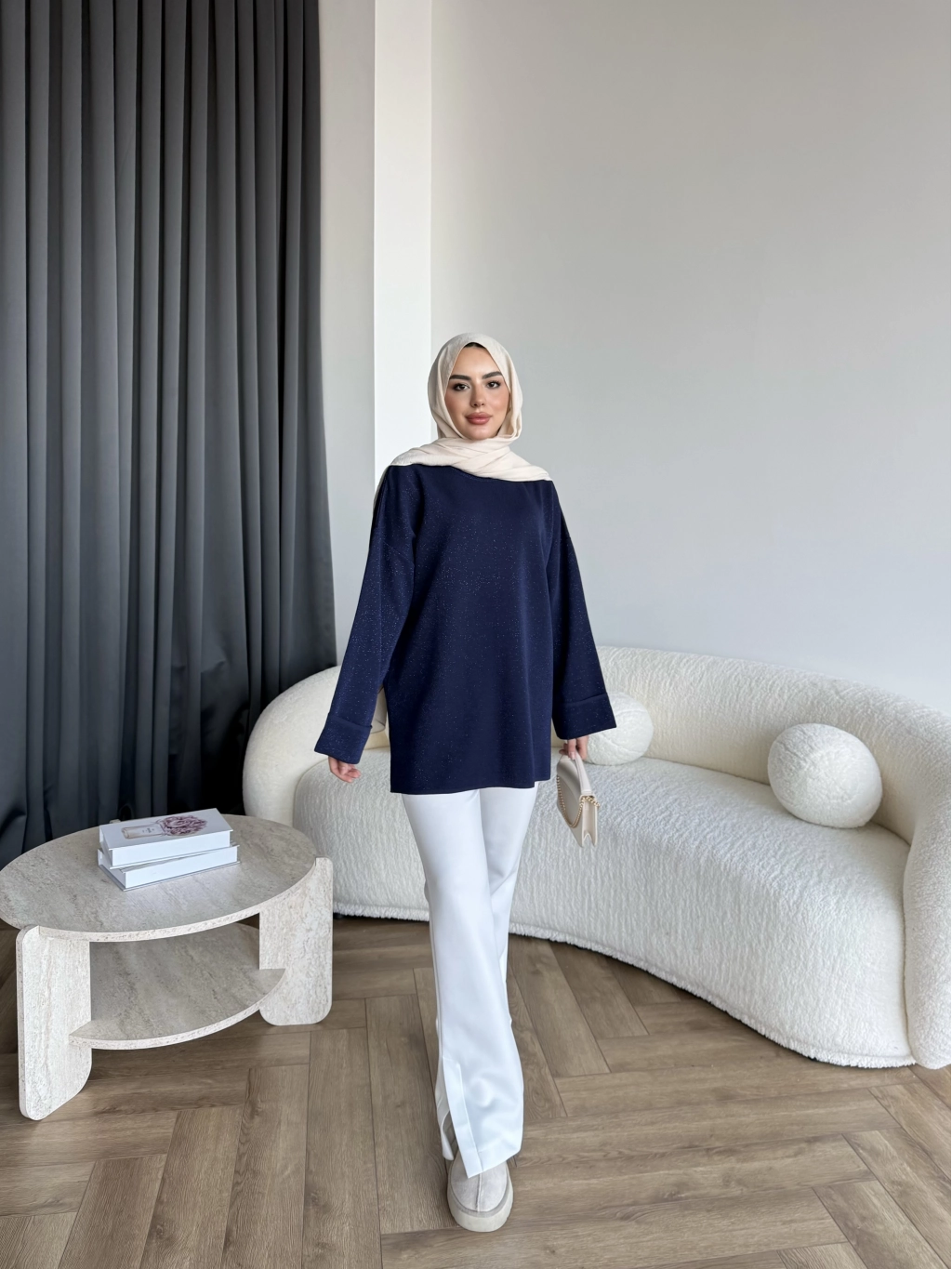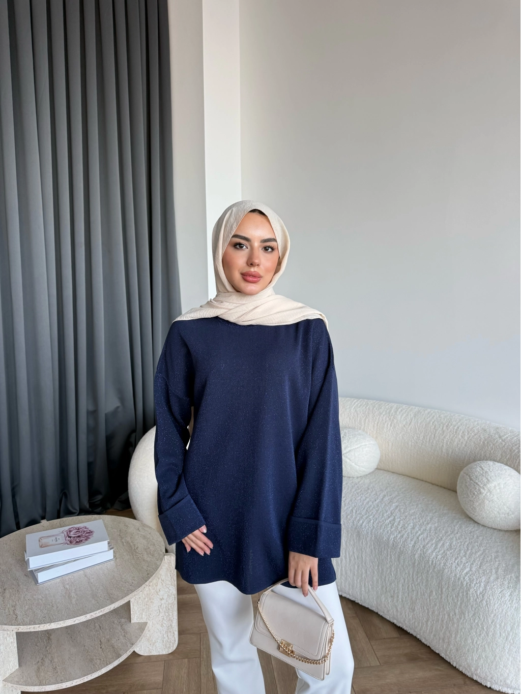 Gülsy Kol Detay Simli Triko Kazak - Lacivert