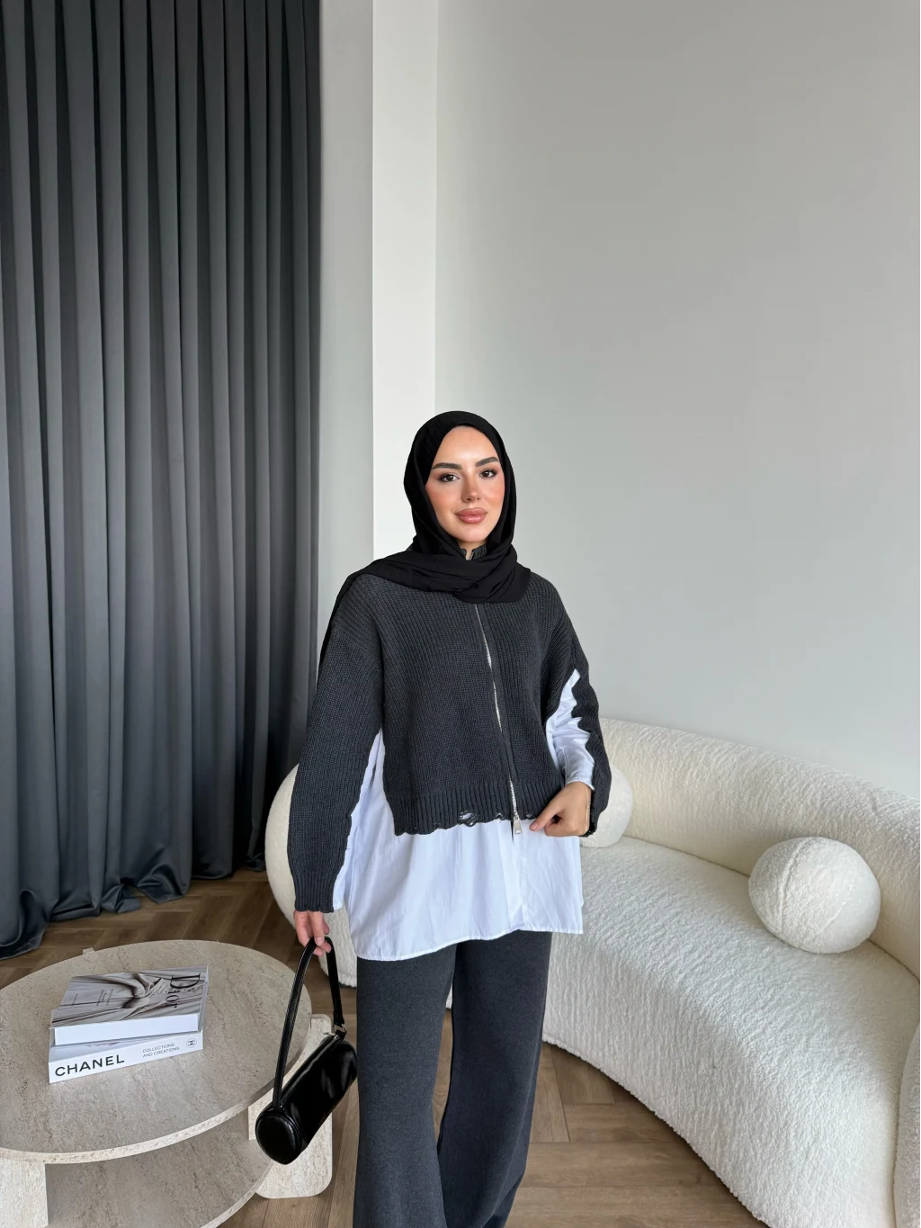 Gollan Fermuarlı Scuba Takım - Acı Kahve