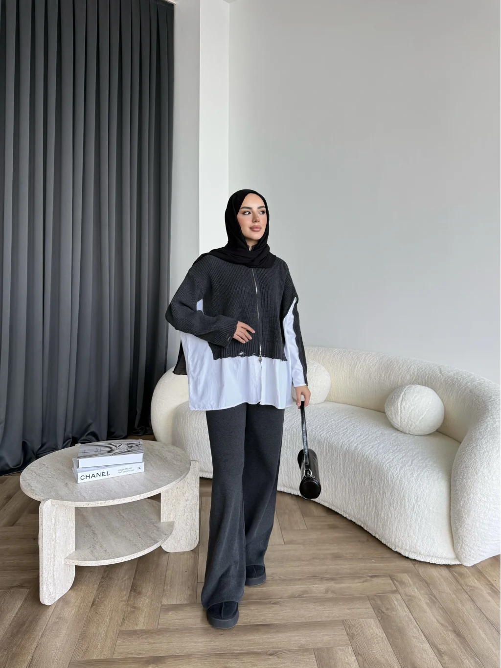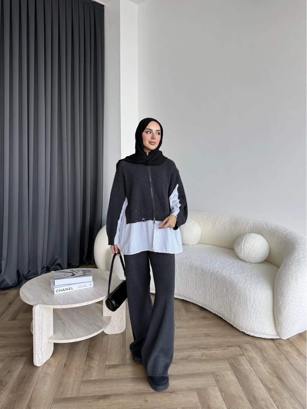 Polo Yaka Örgü Triko Takım - Acı Kahve