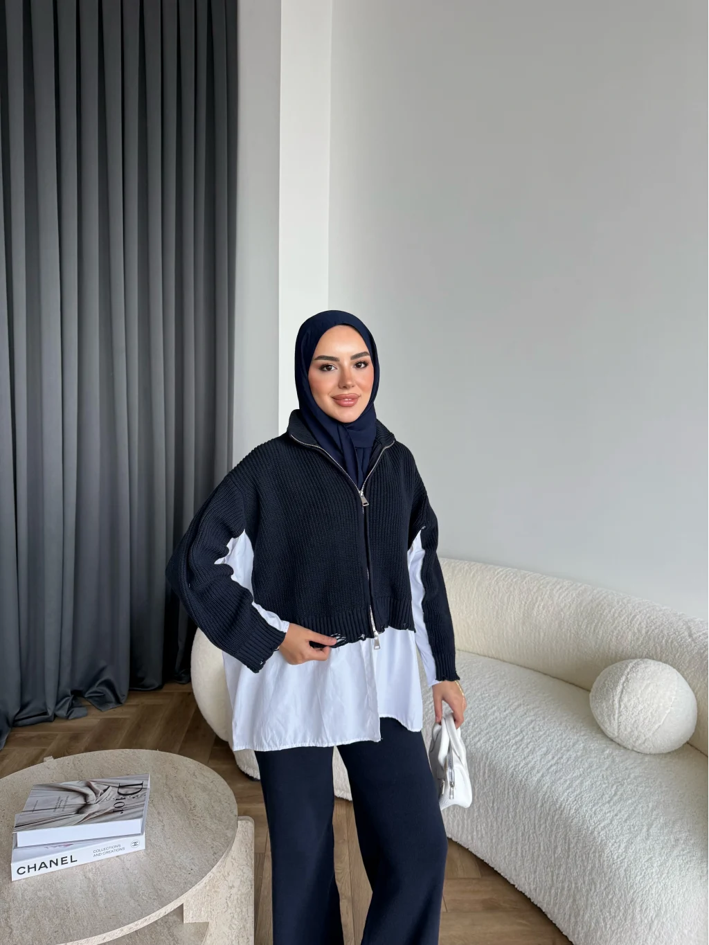 Gollan Fermuarlı Scuba Takım - Acı Kahve