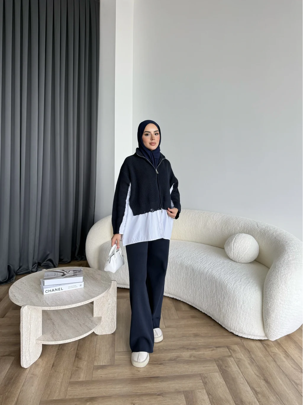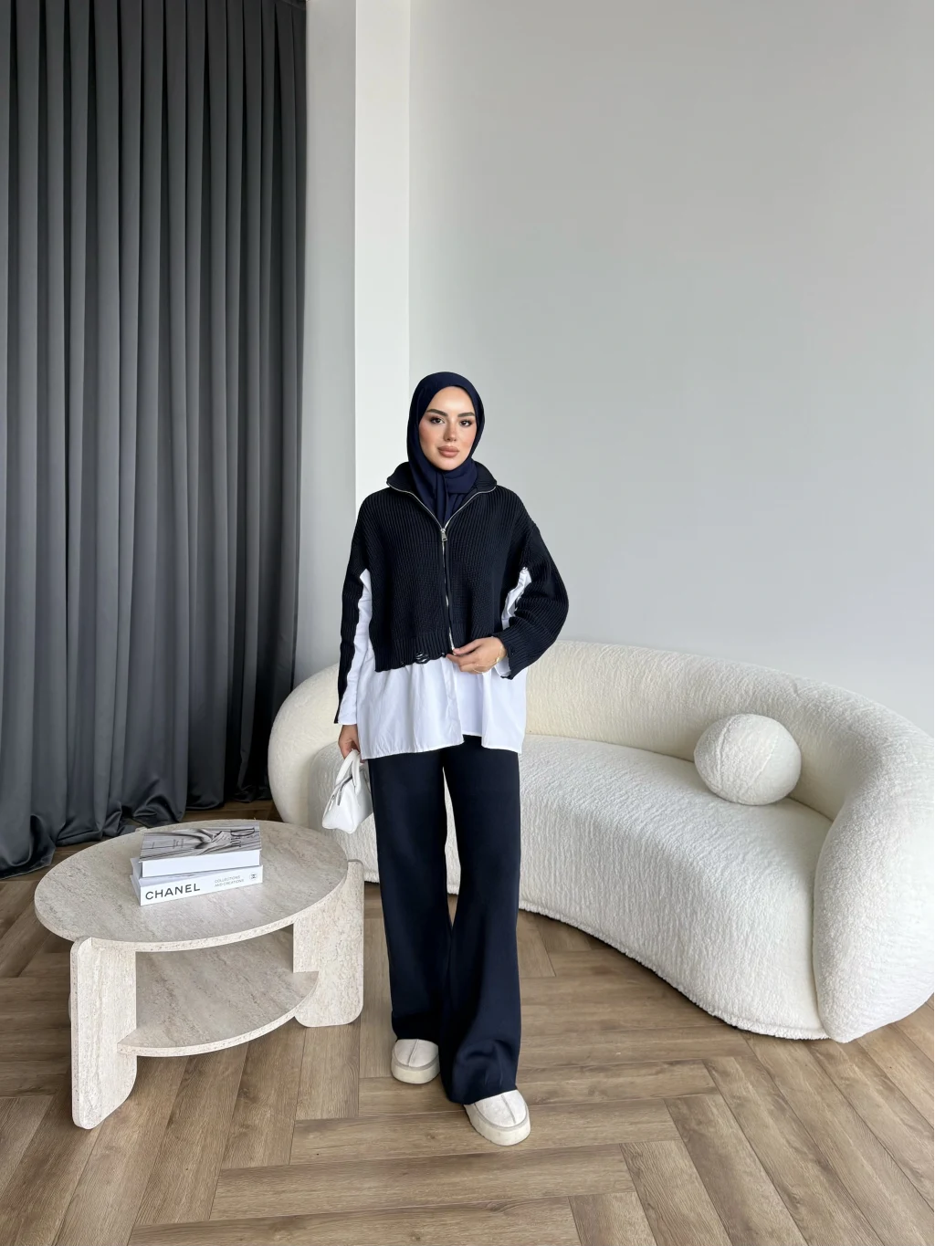 Polo Yaka Örgü Triko Takım - Acı Kahve
