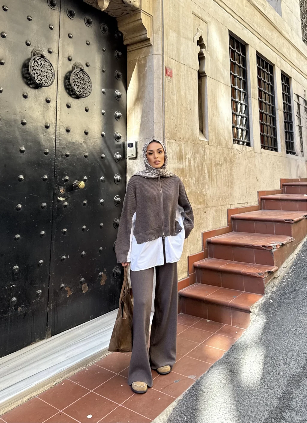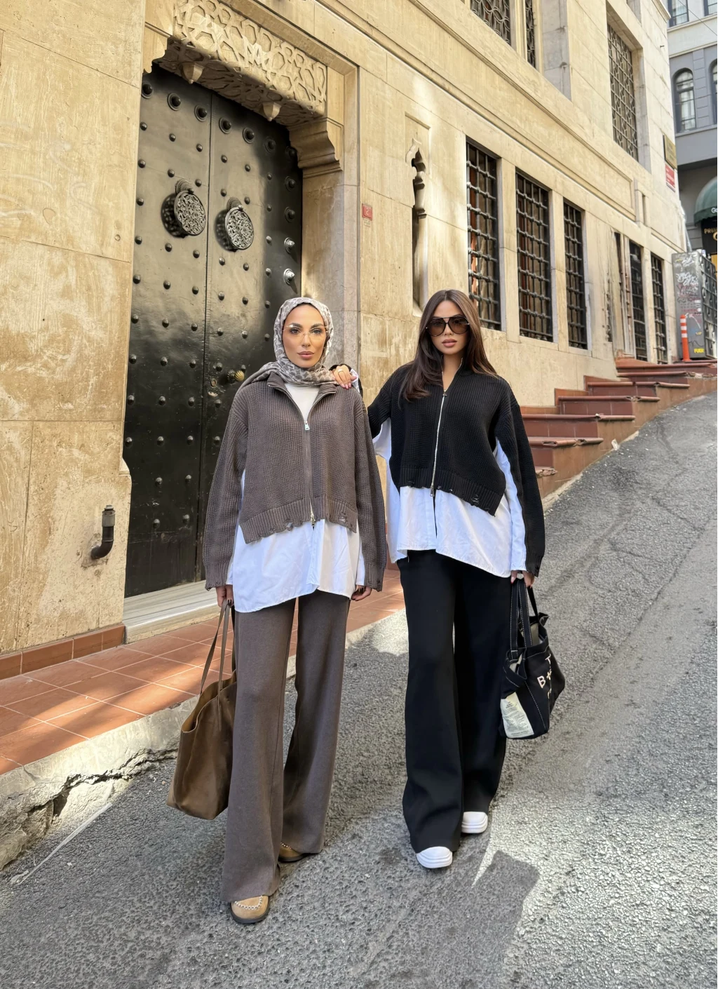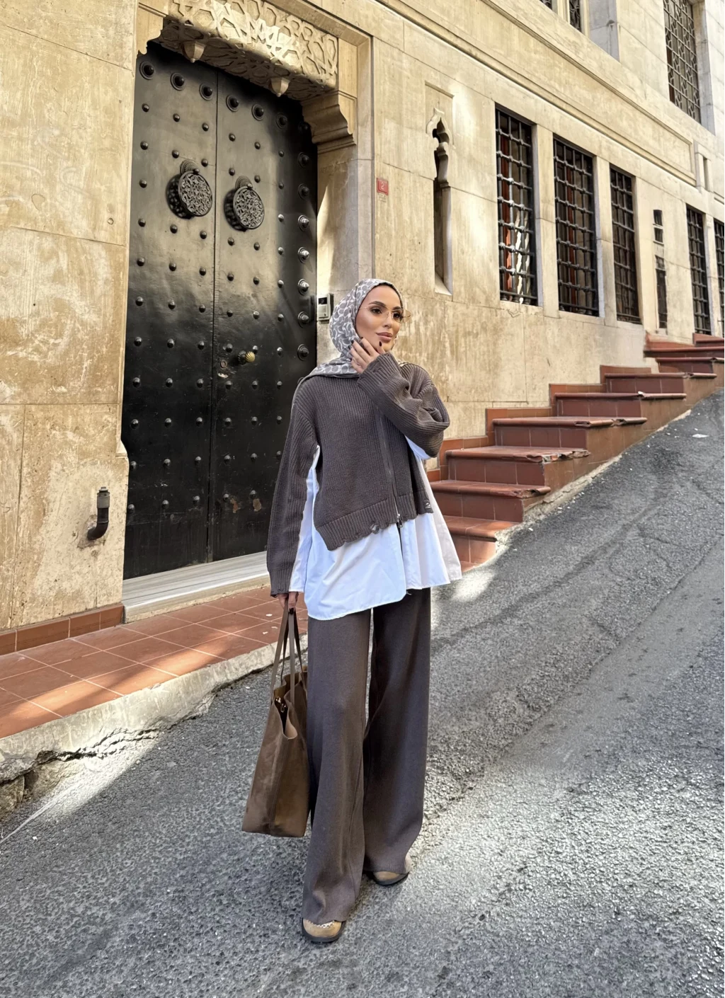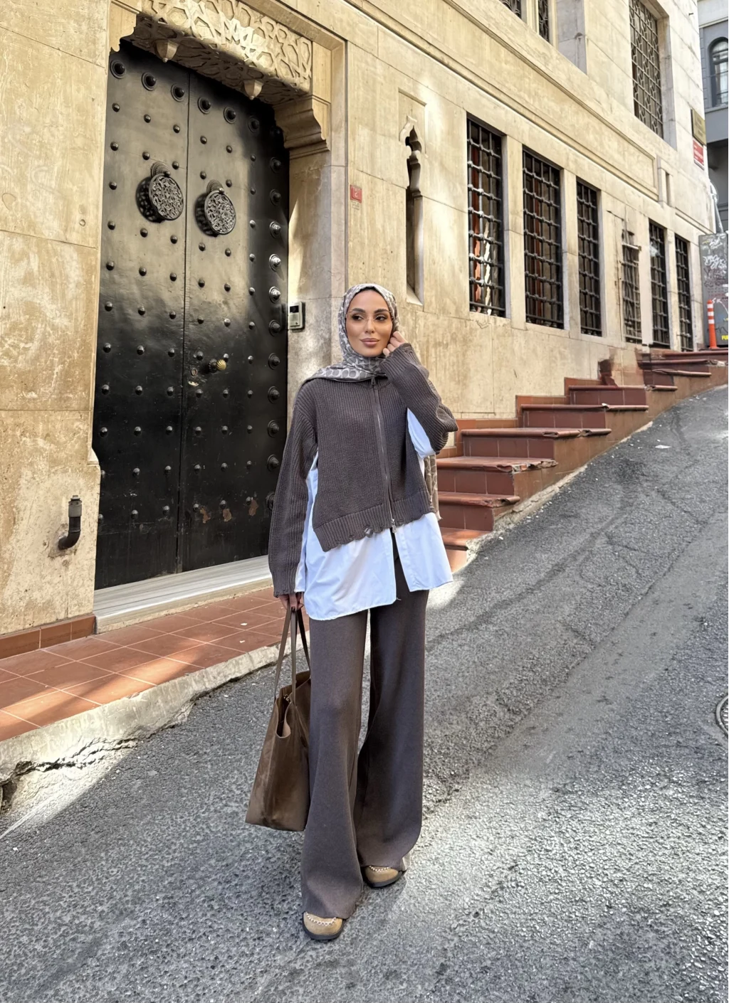 Polo Yaka Örgü Triko Takım - Acı Kahve
