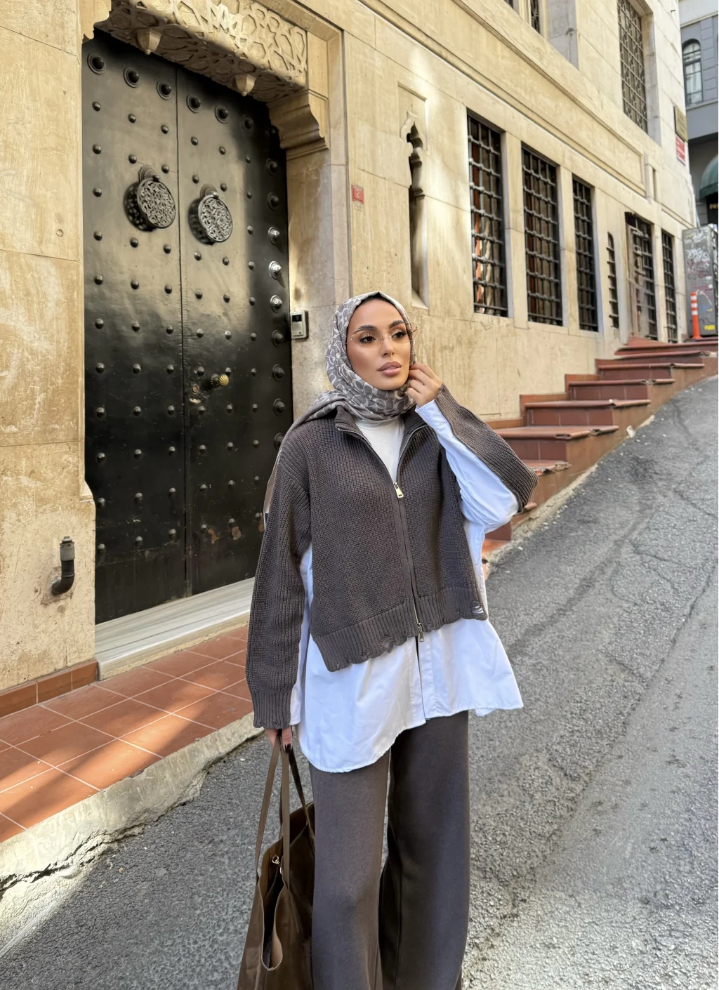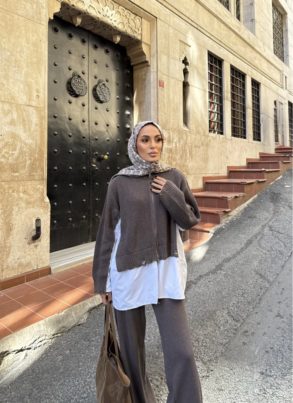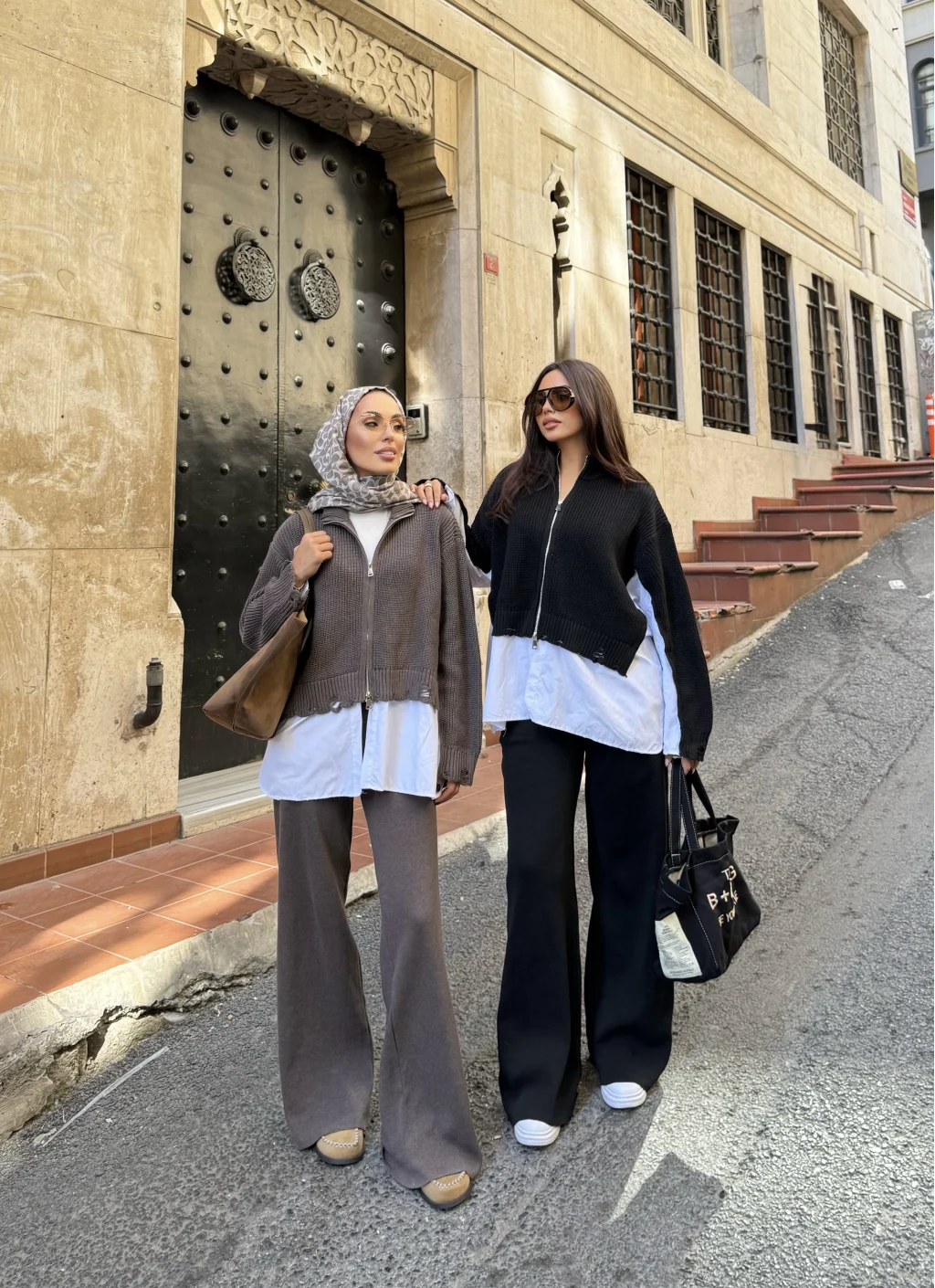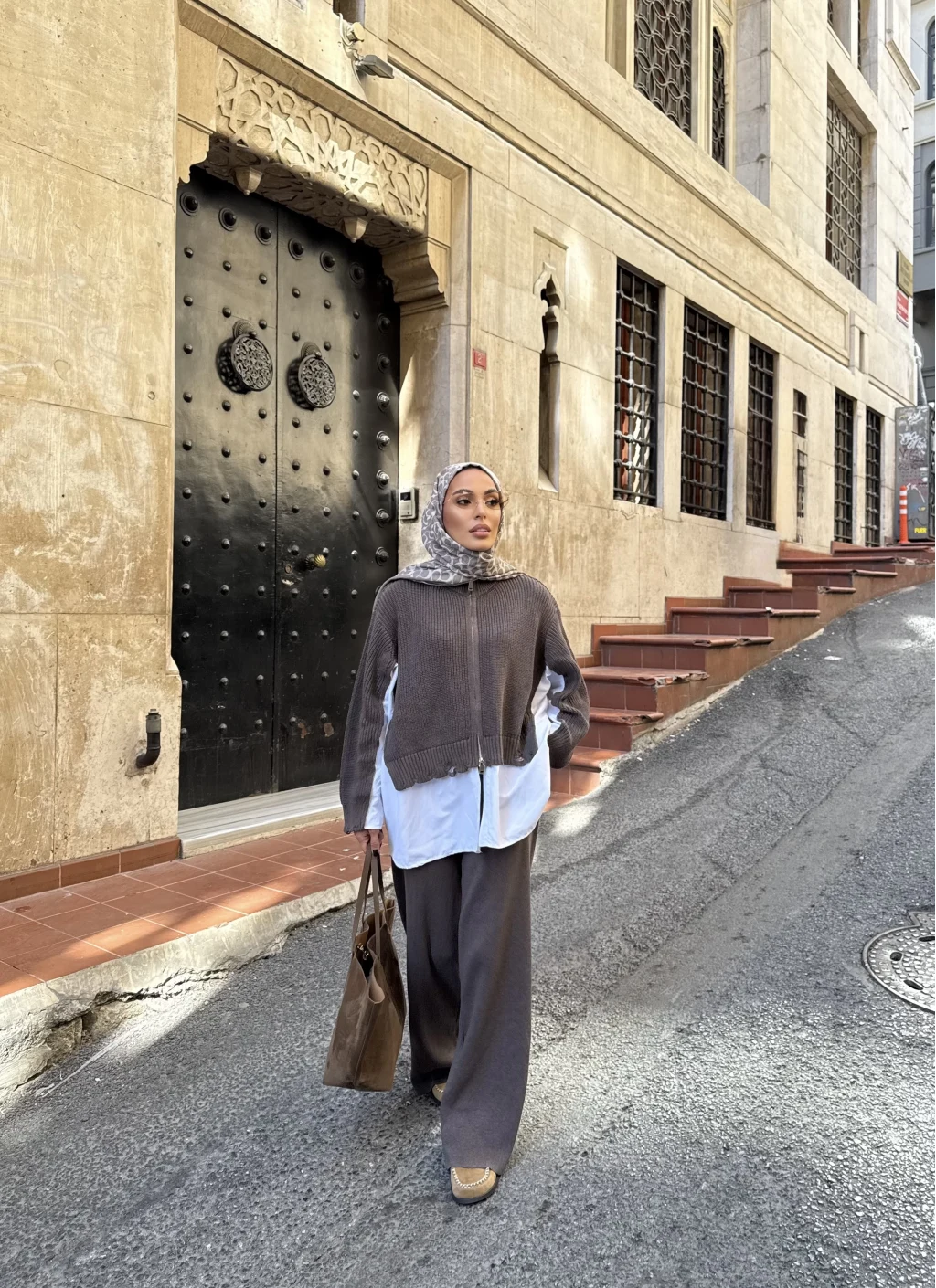 Polo Yaka Örgü Triko Takım - Acı Kahve
