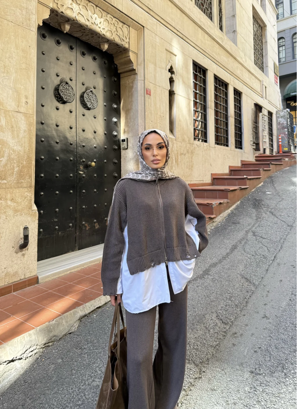 Gollan Fermuarlı Scuba Takım - Acı Kahve