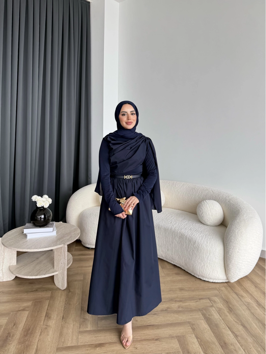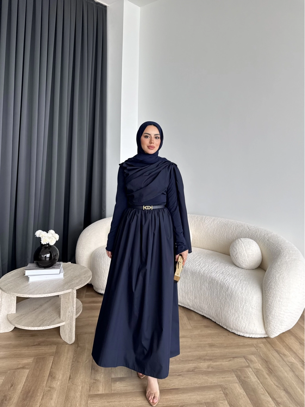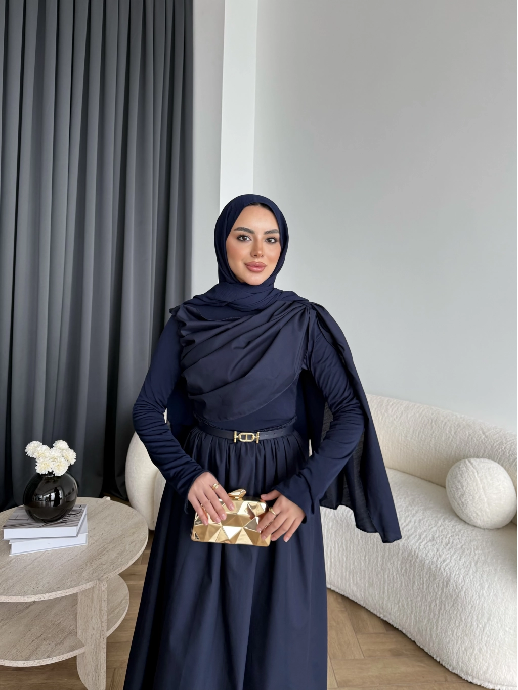 Hen - Aven Şal Detay Sandy Poplin Elbise - Lacivert