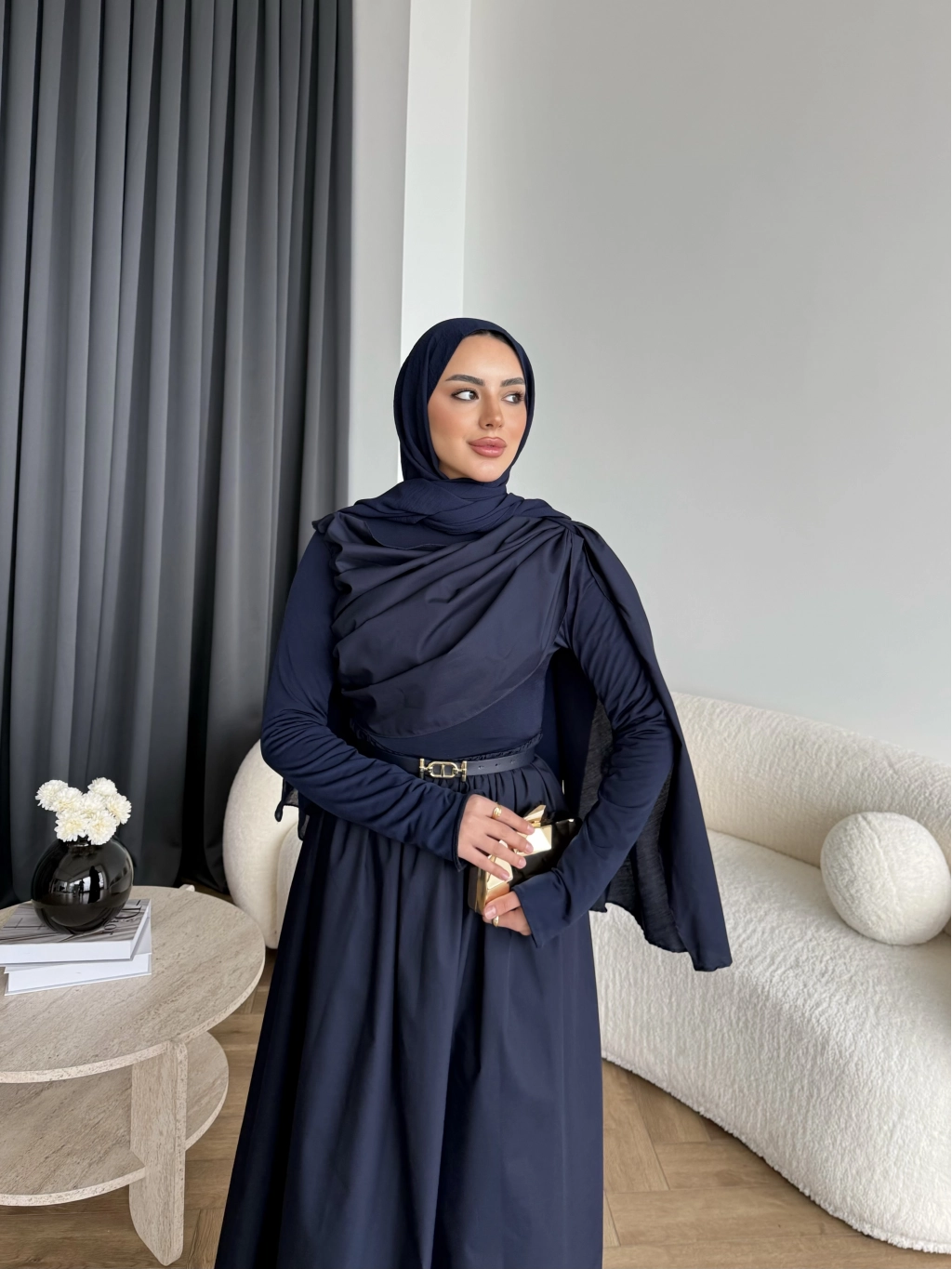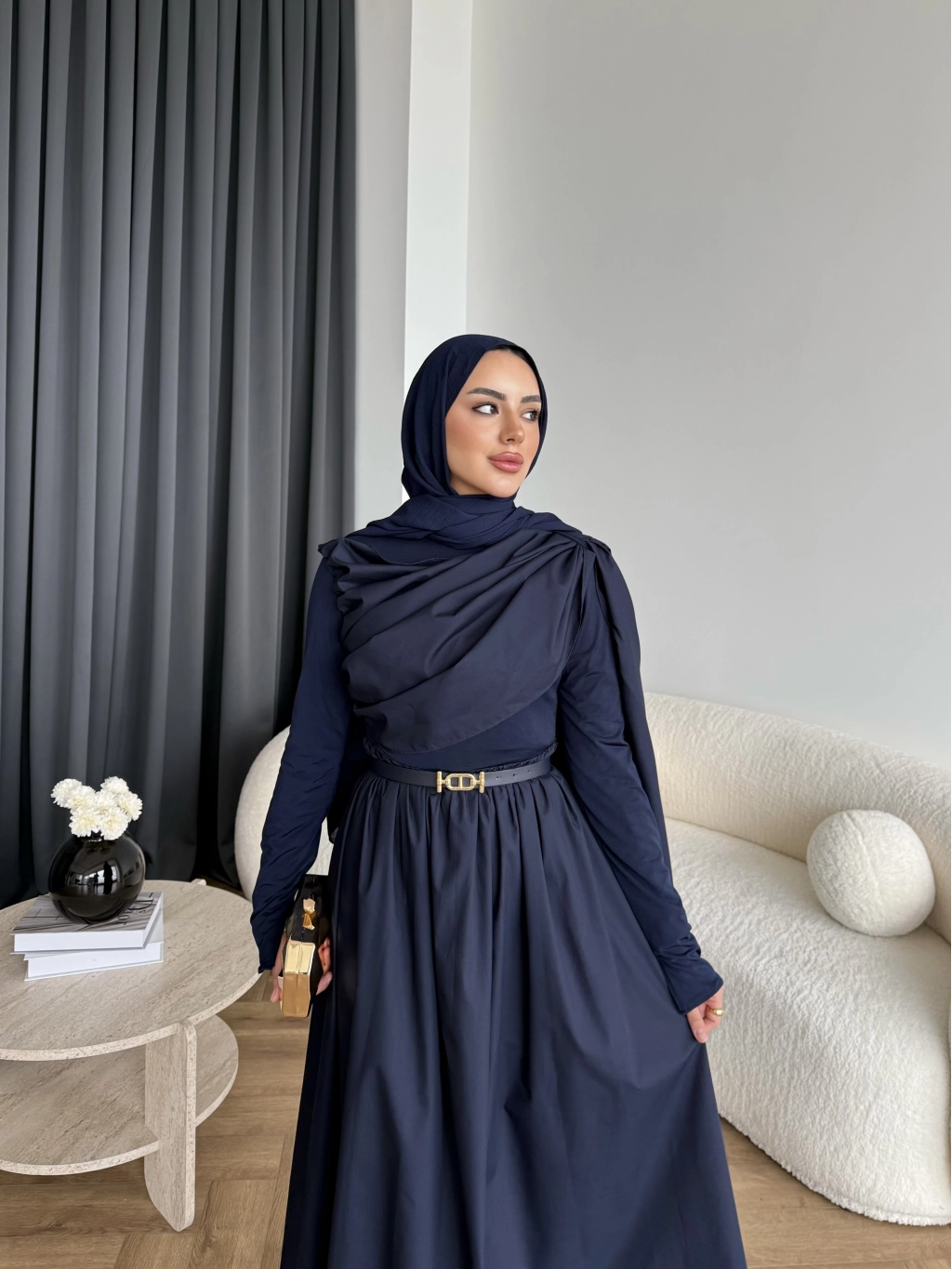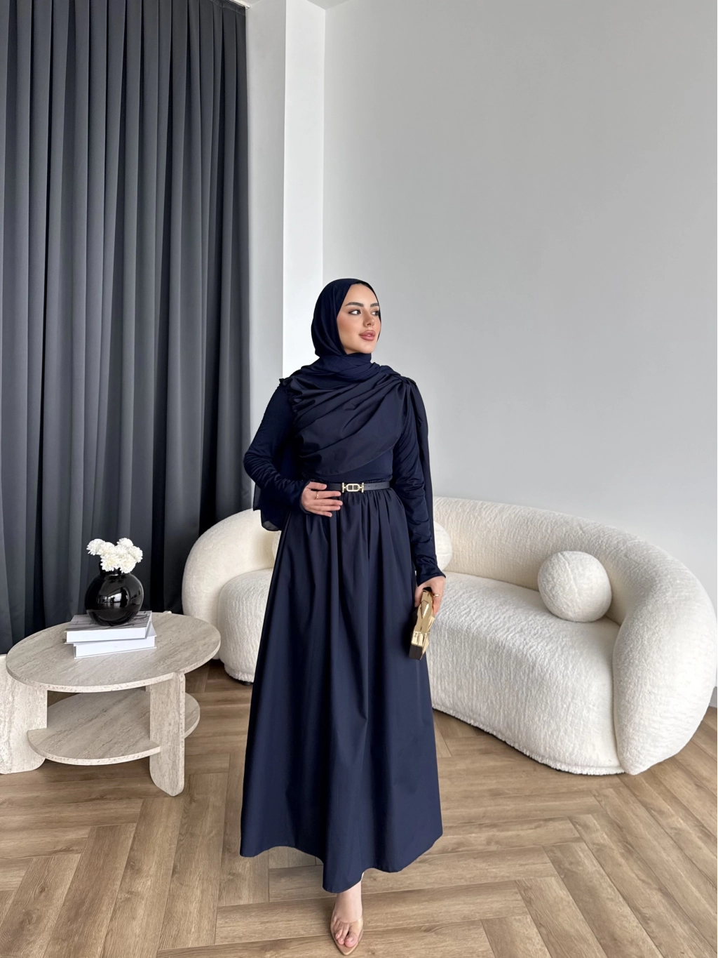 Hen - Aven Şal Detay Sandy Poplin Elbise - Lacivert