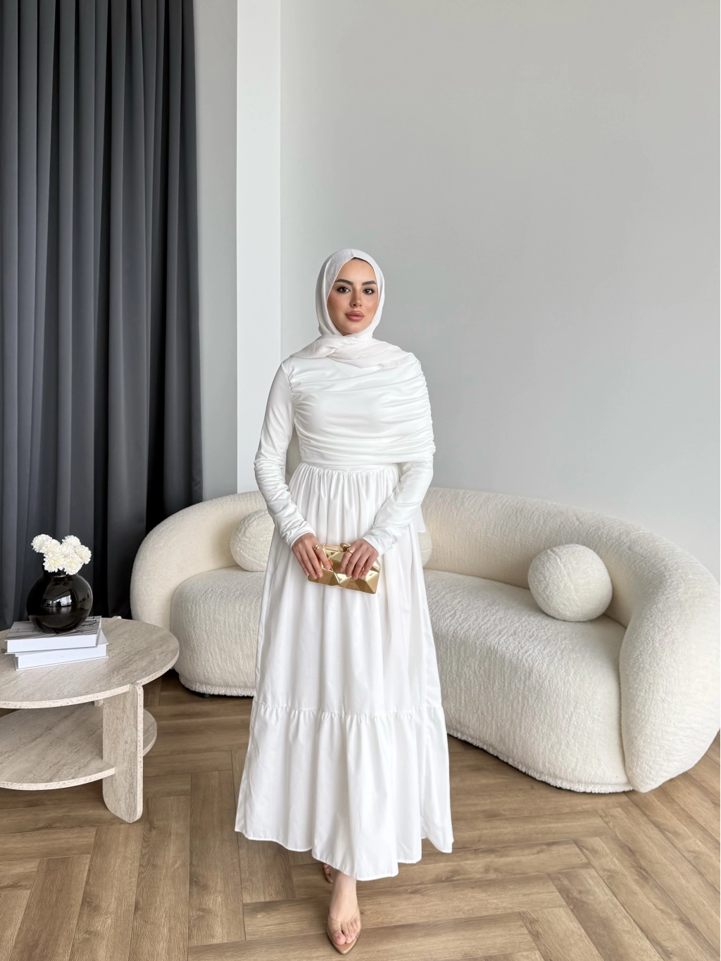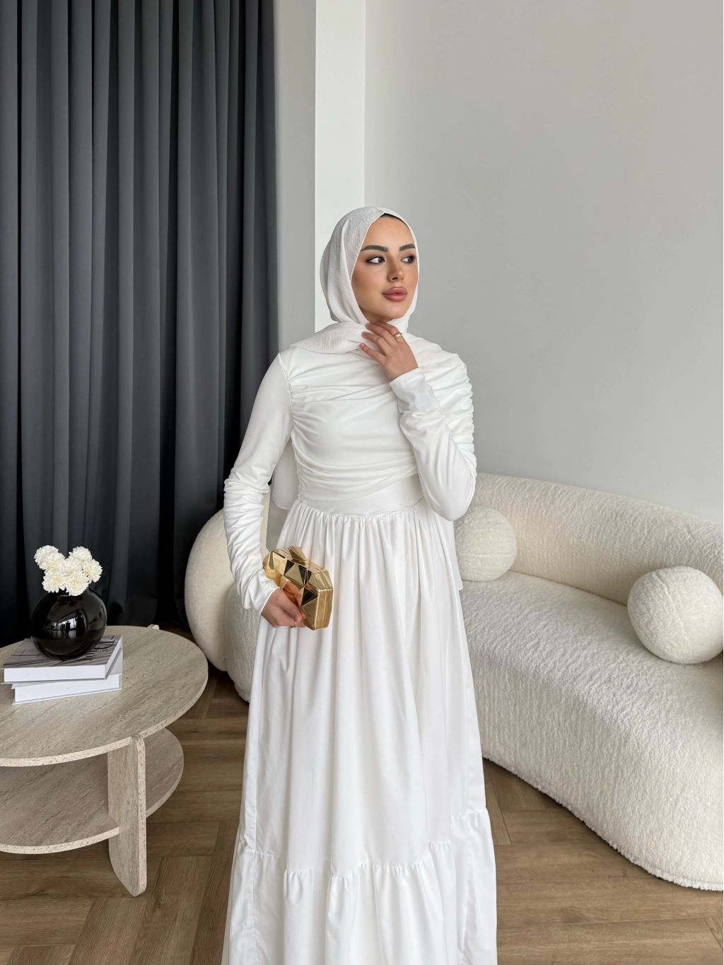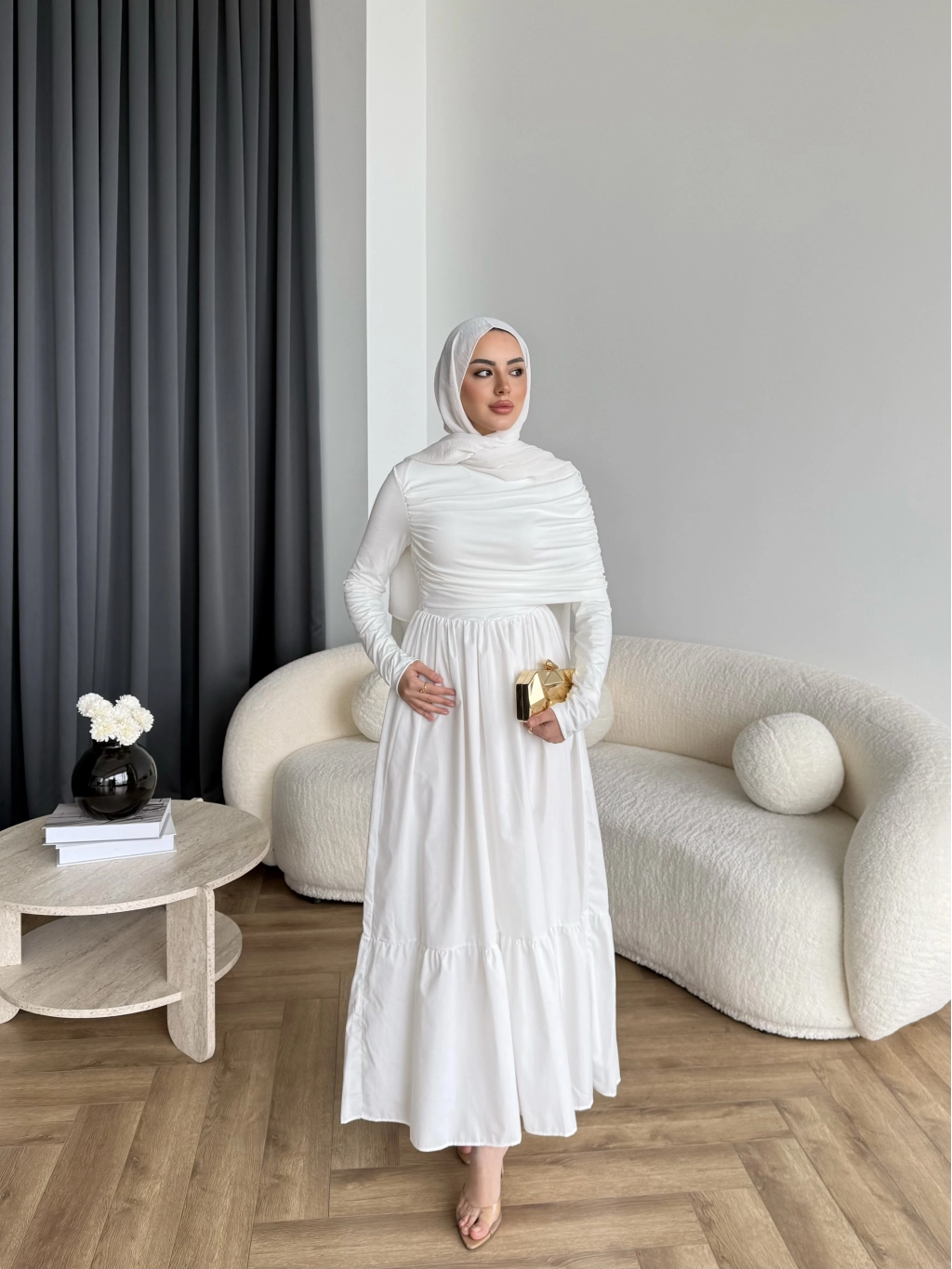 Hen - Helen Büzgülü Sandy Poplin Elbise - Beyaz