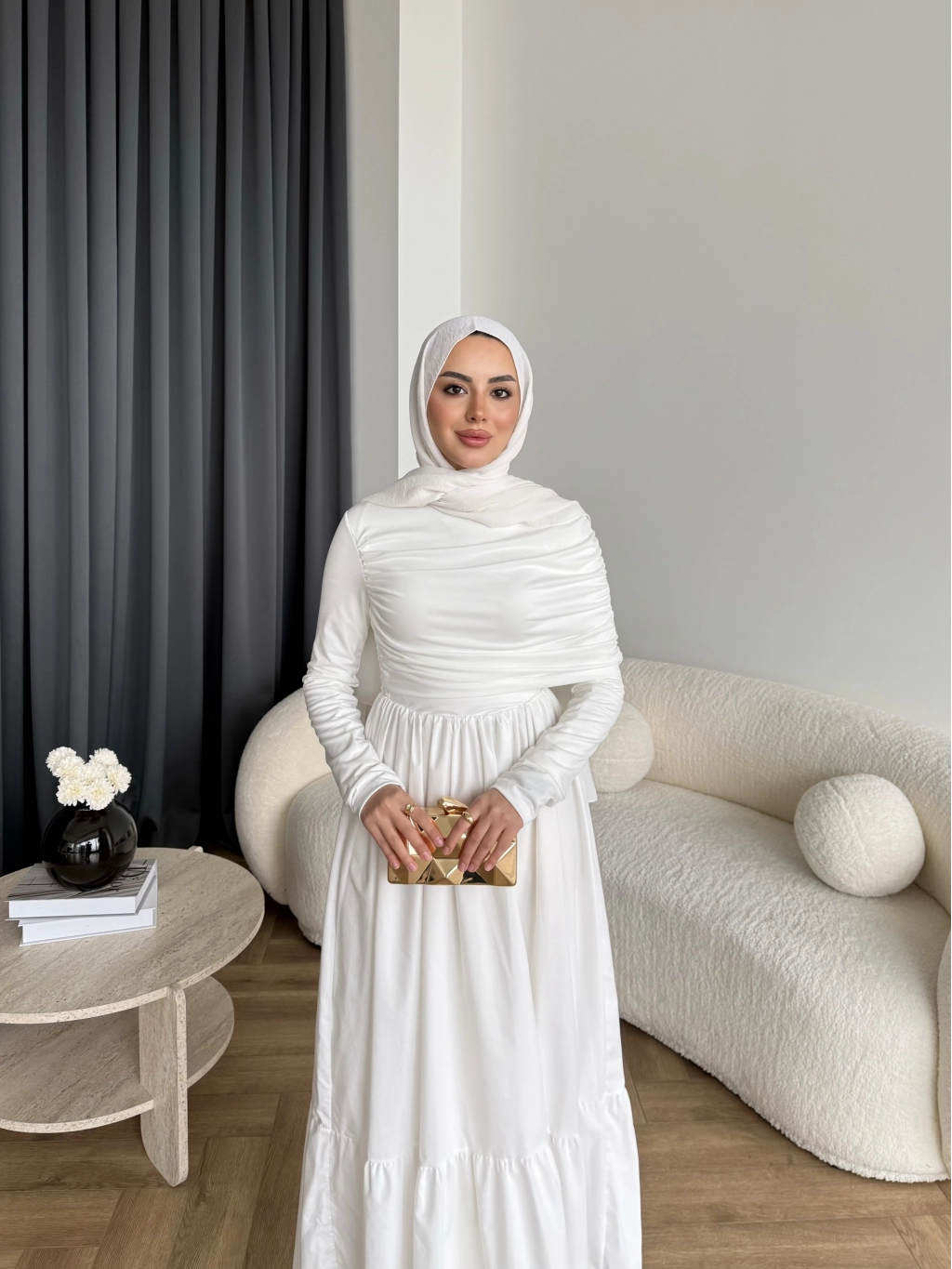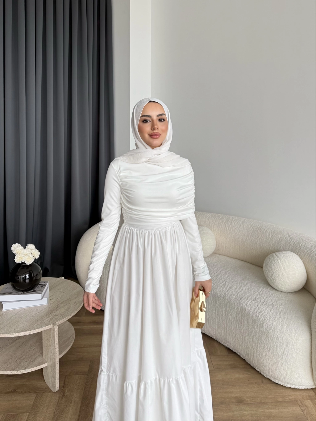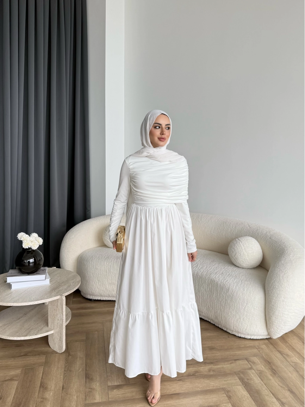 Hen - Helen Büzgülü Sandy Poplin Elbise - Beyaz
