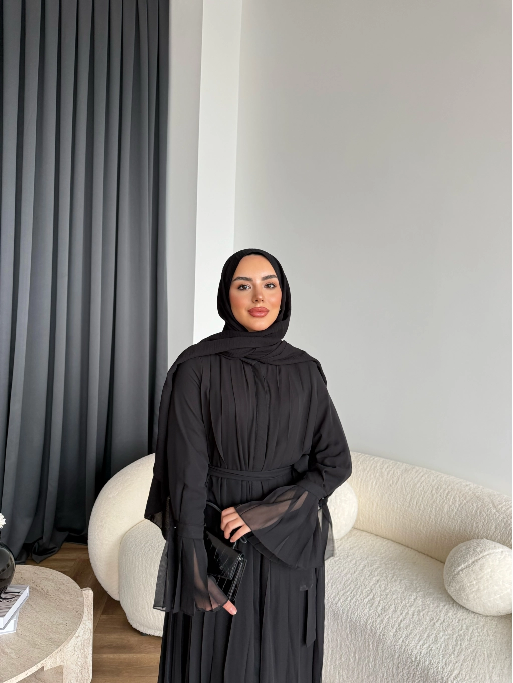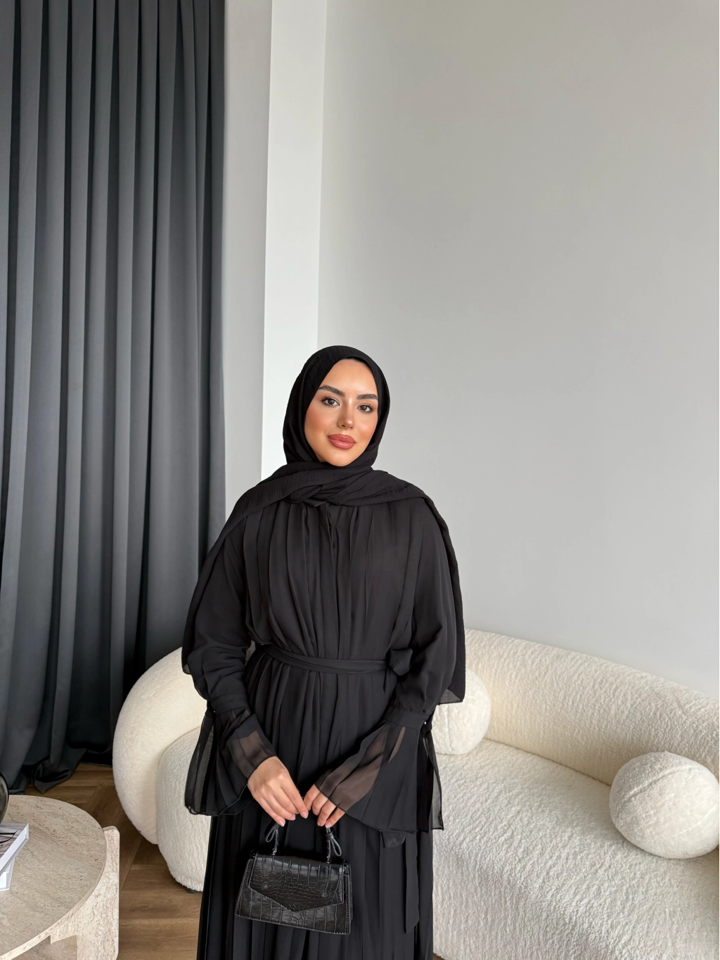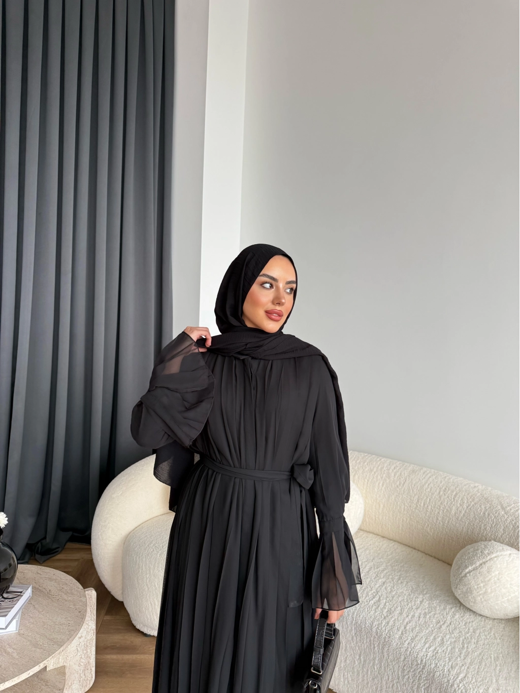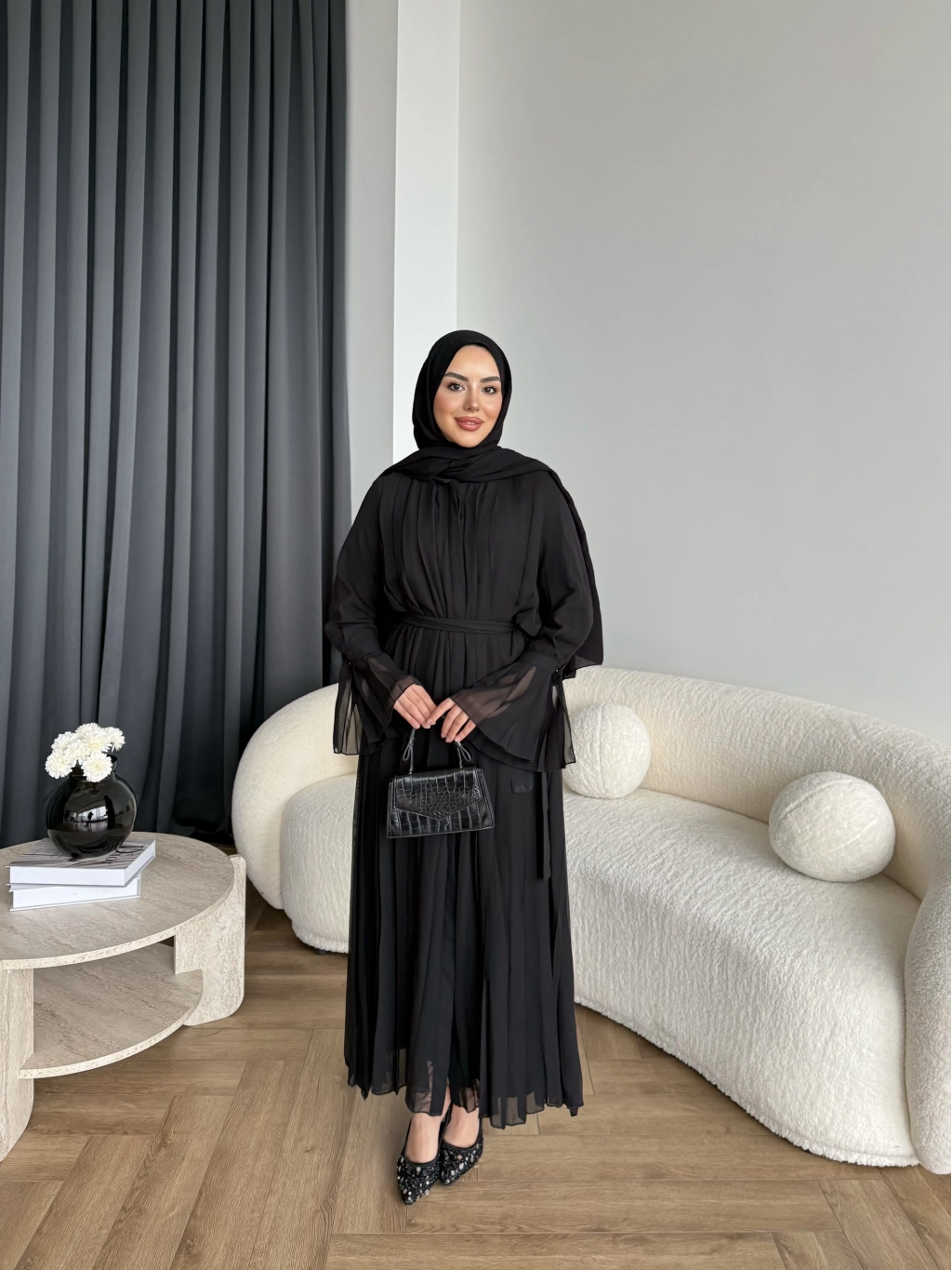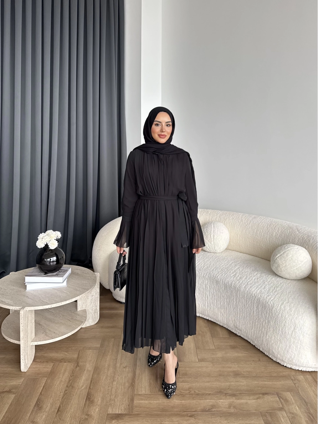 Hen - Lior Piliseli Şifon Elbise - Siyah