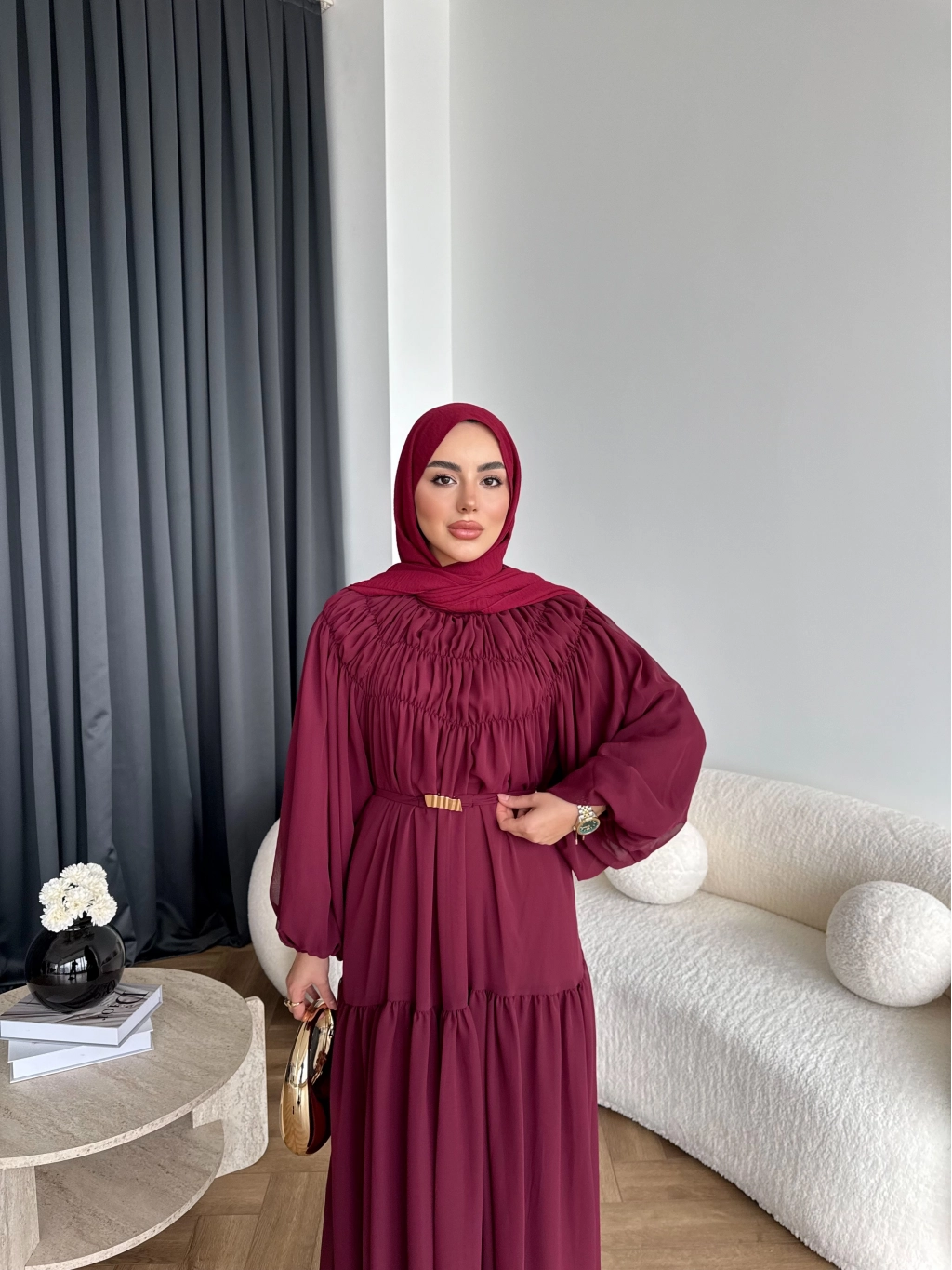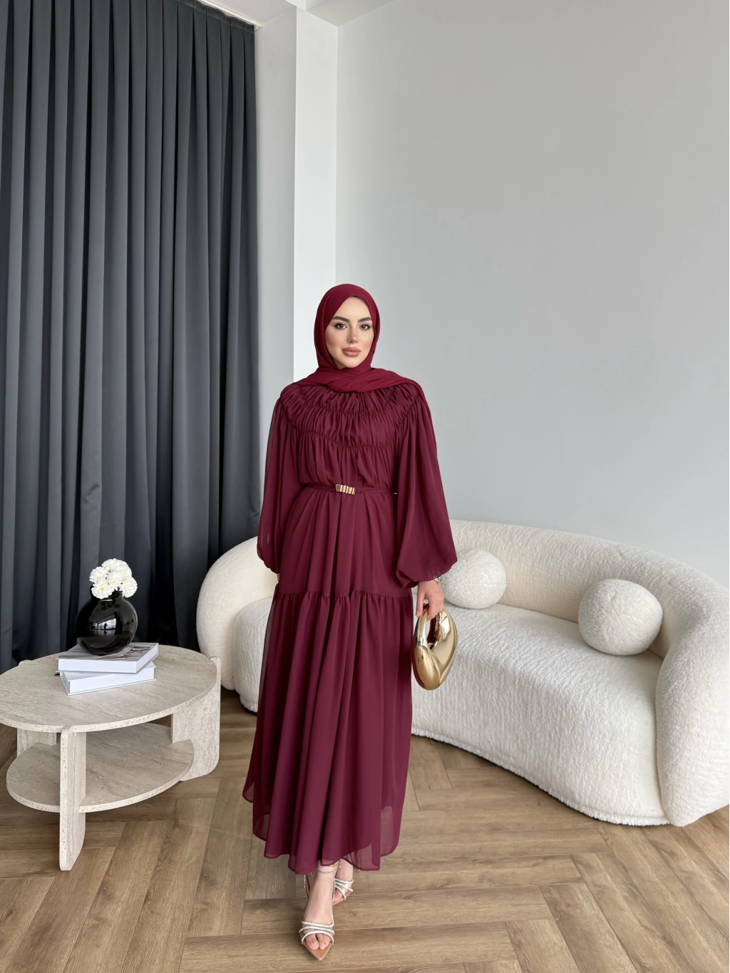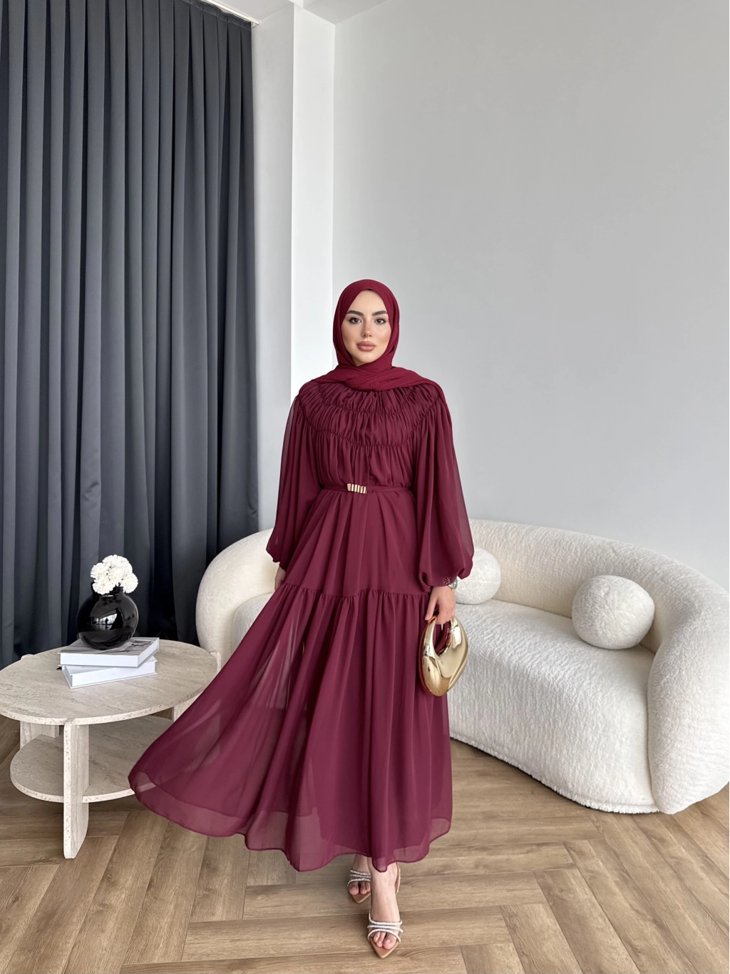 Hen - Margo Şifon Elbise - Bordo