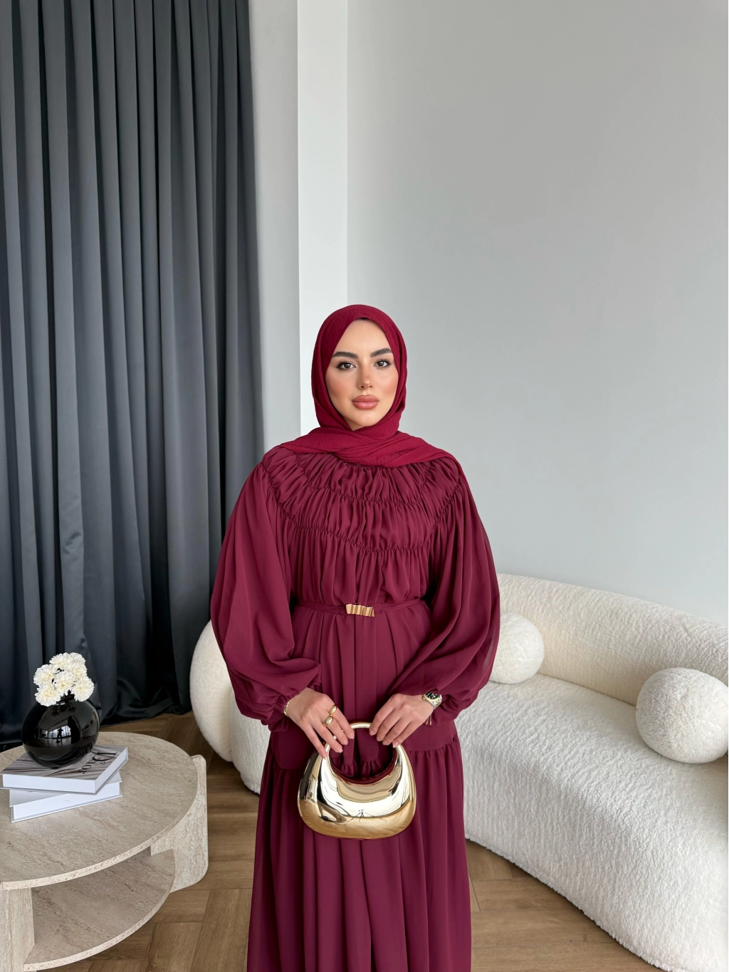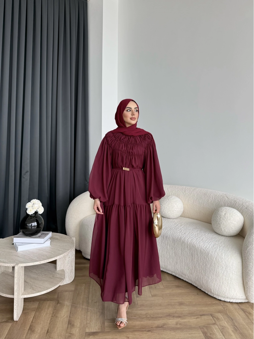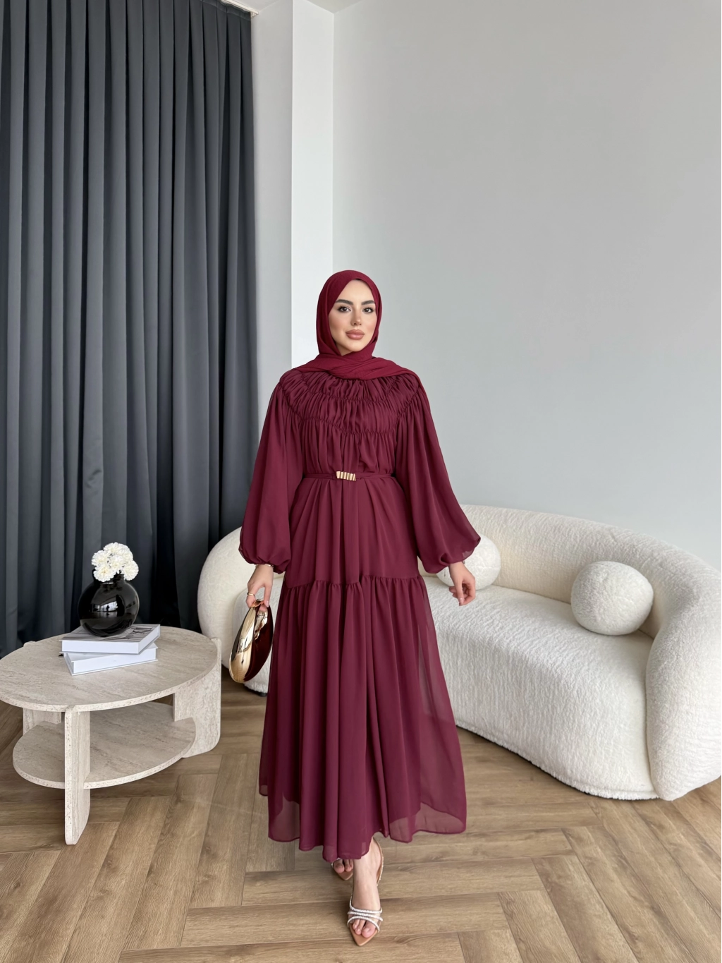 Hen - Margo Şifon Elbise - Bordo