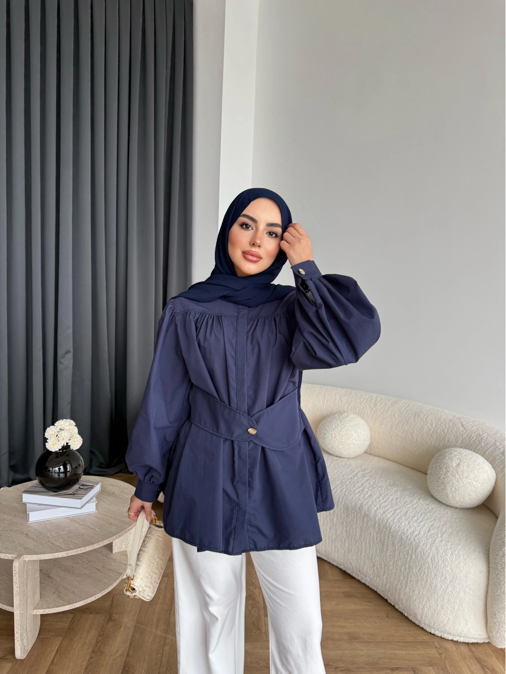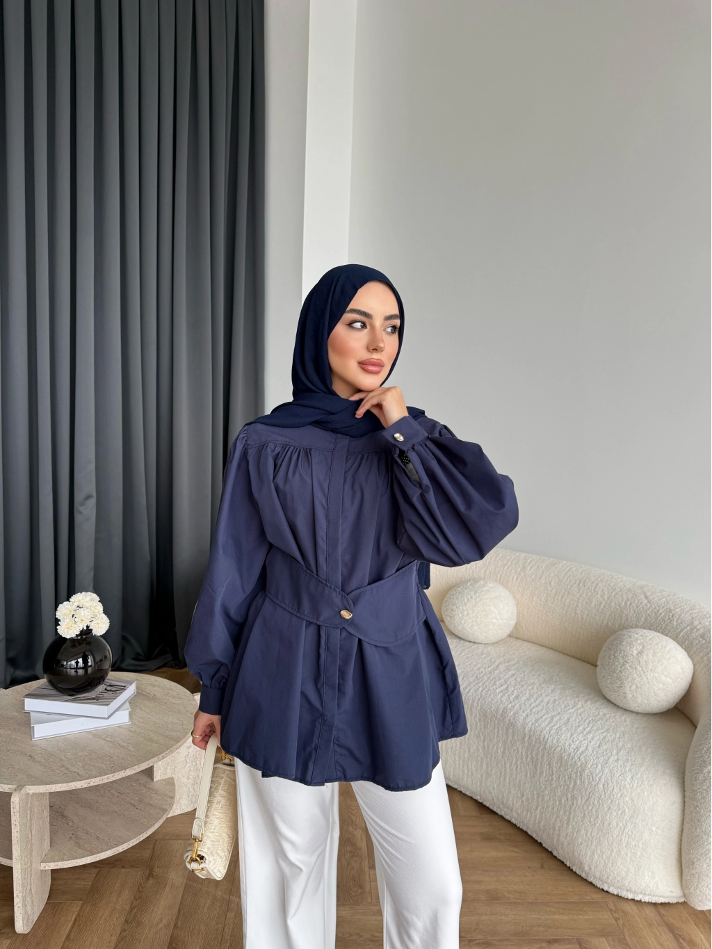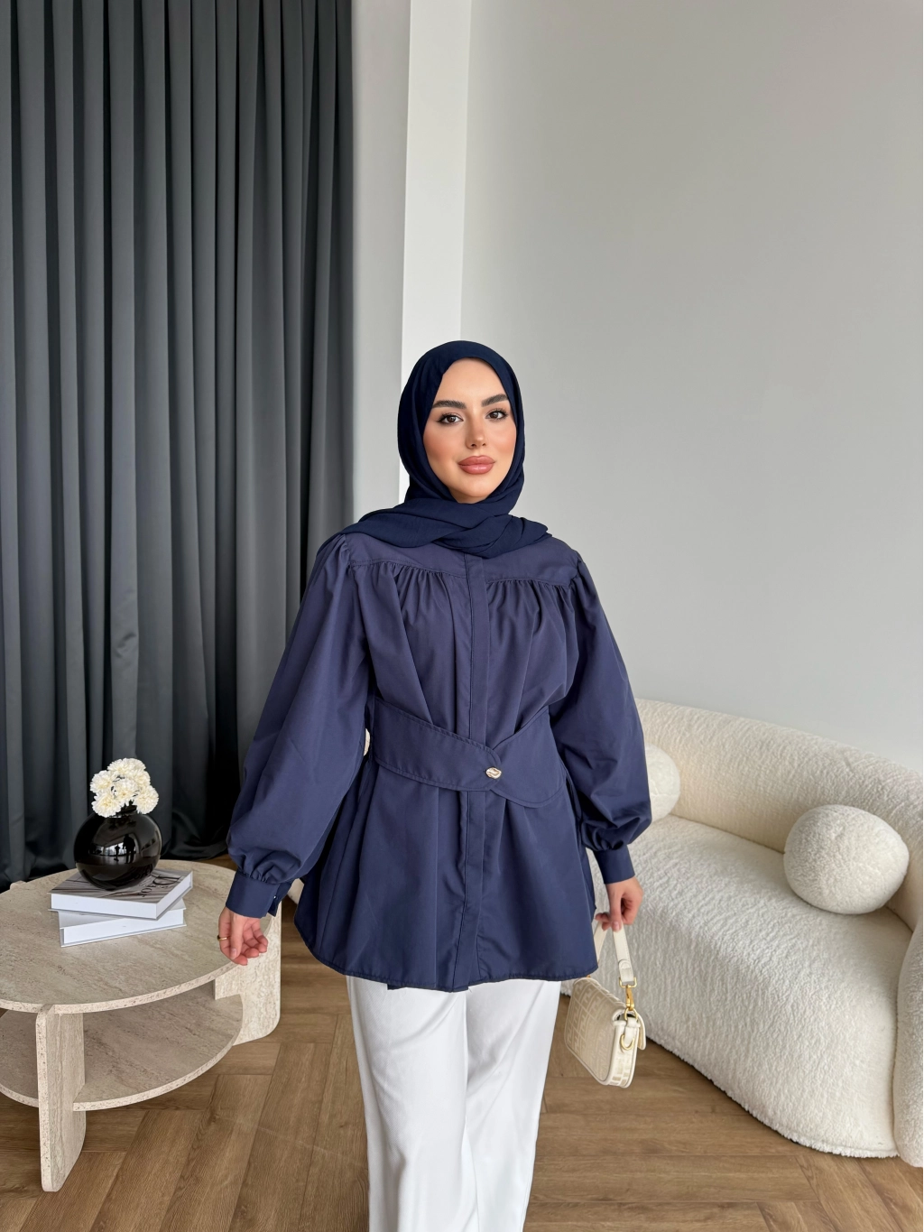 Hen - Mihra Bel Detaylı Gömlek - Lacivert - ÖN SİPARİŞ