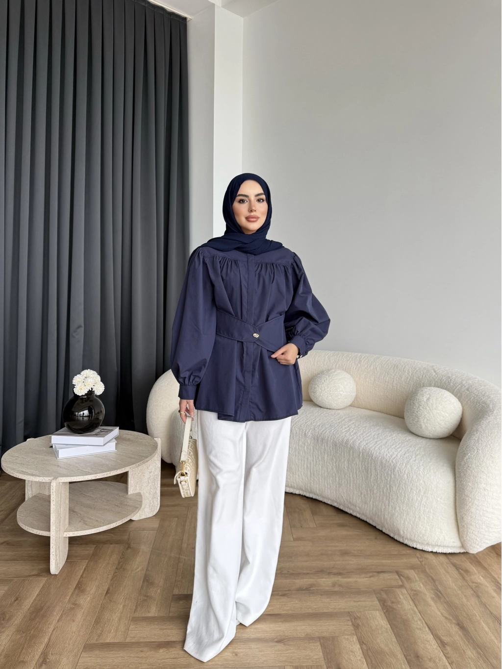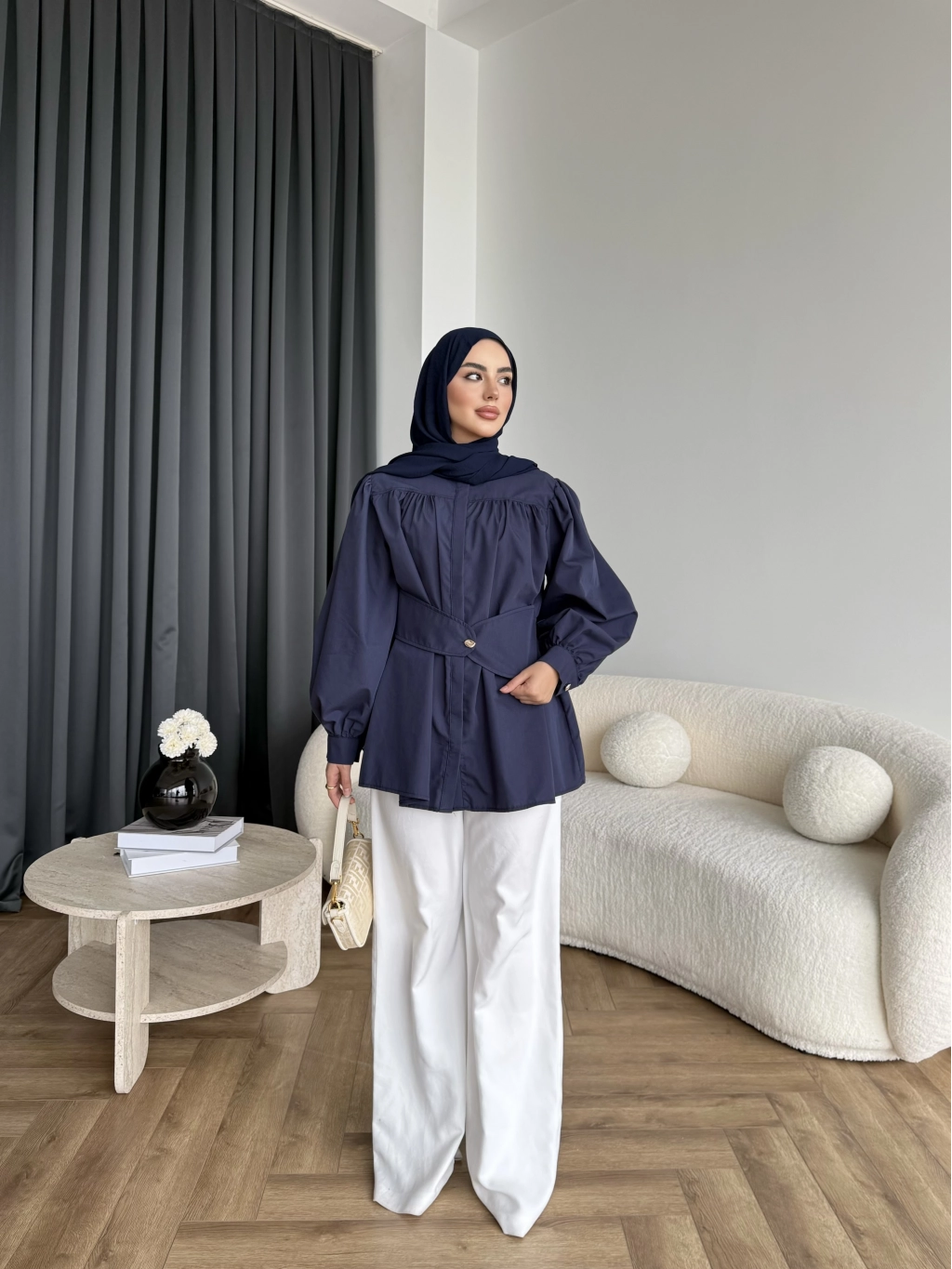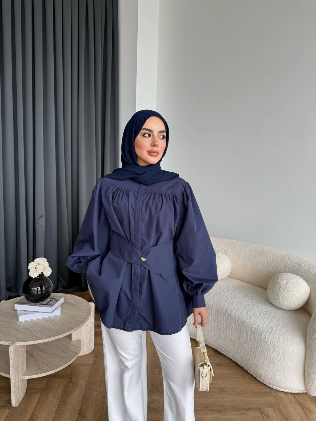 Hen - Mihra Bel Detaylı Gömlek - Lacivert - ÖN SİPARİŞ