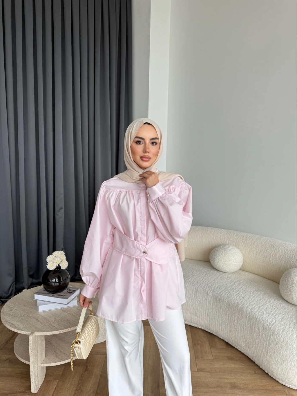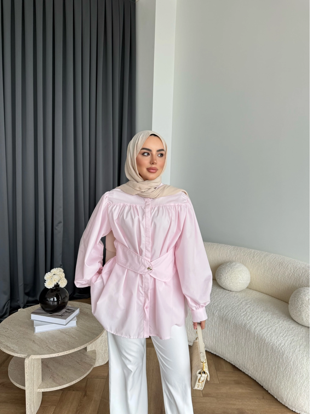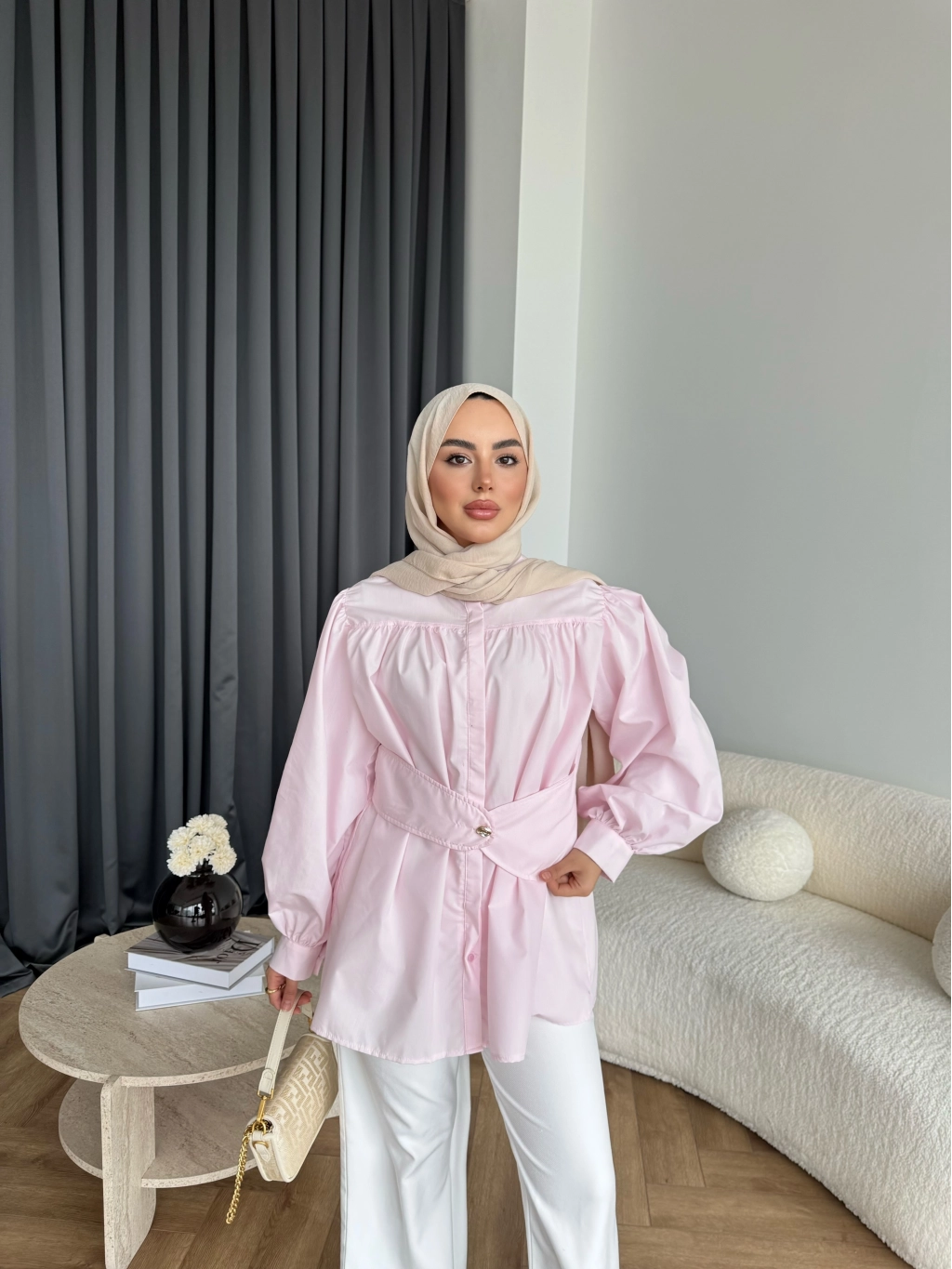 Hen - Mihra Bel Detaylı Gömlek - Pembe - ÖN SİPARİŞ