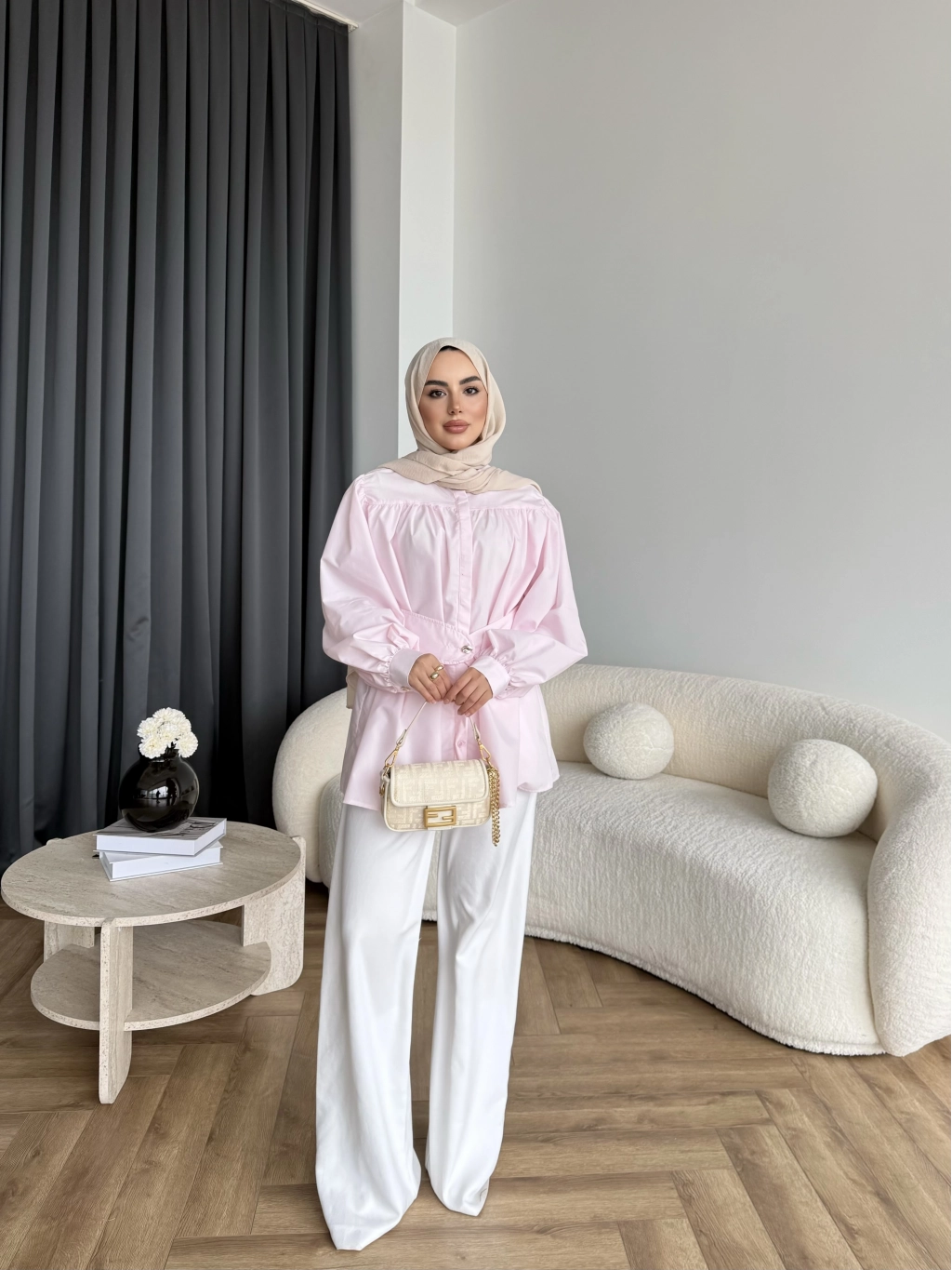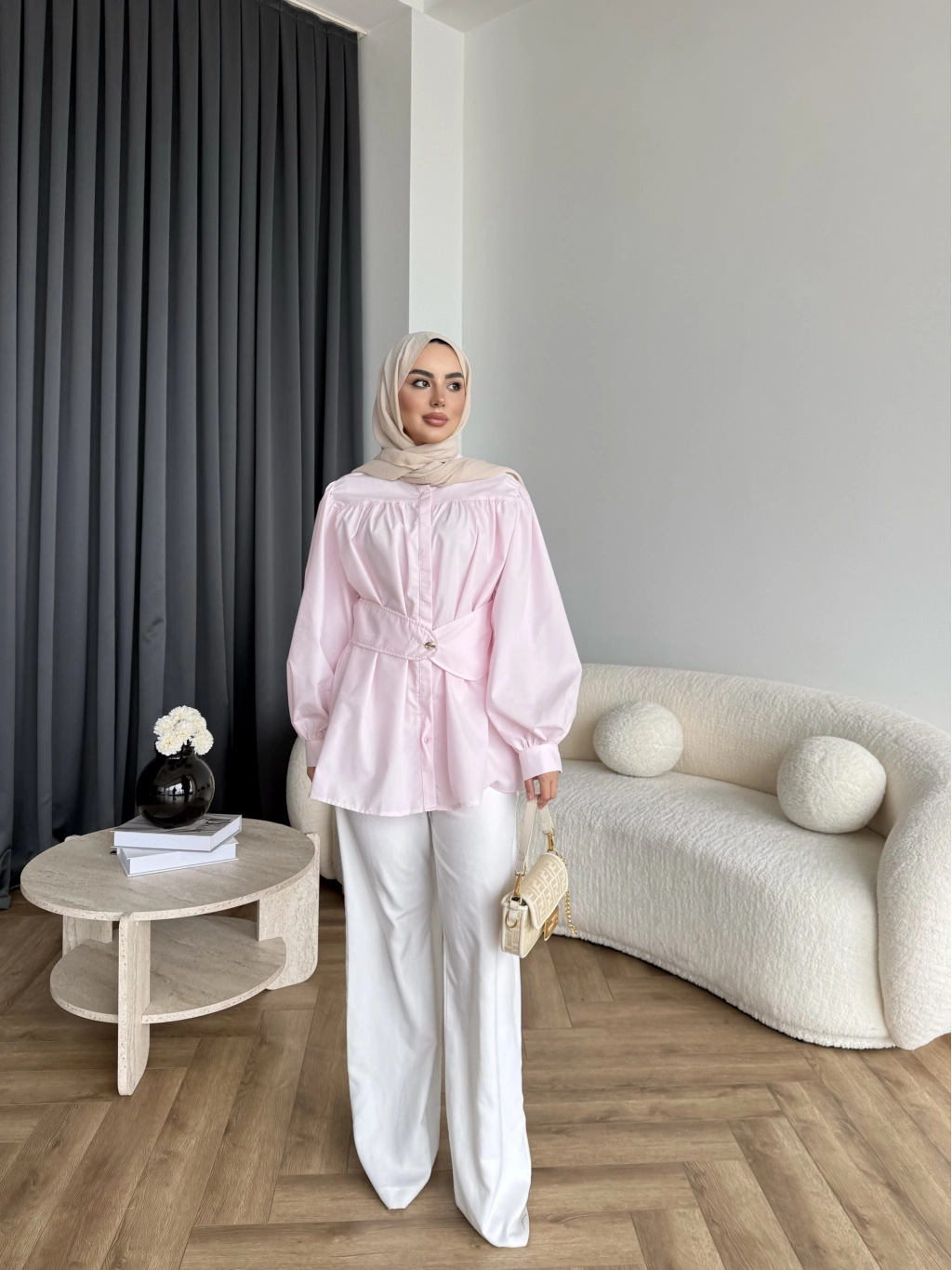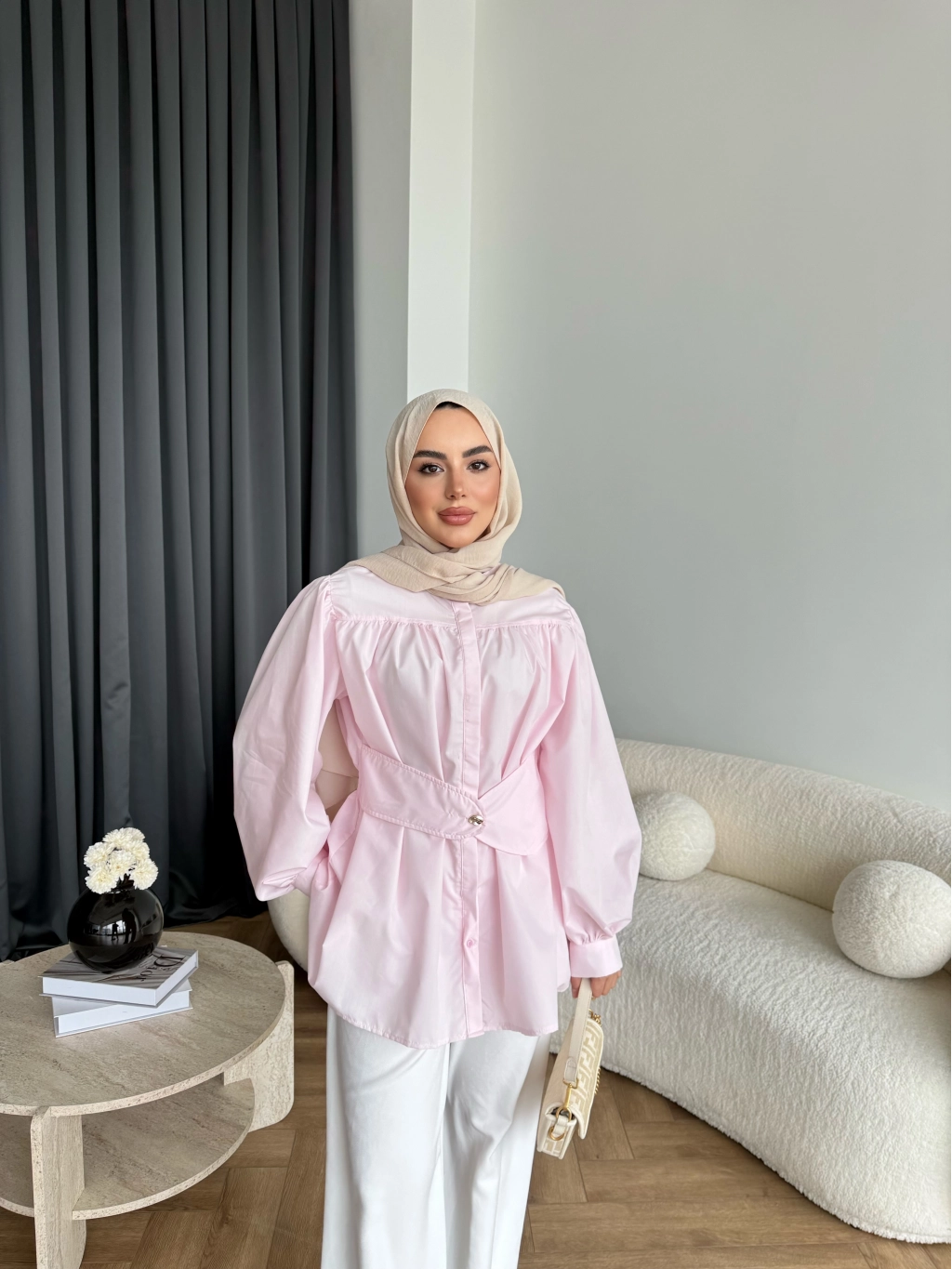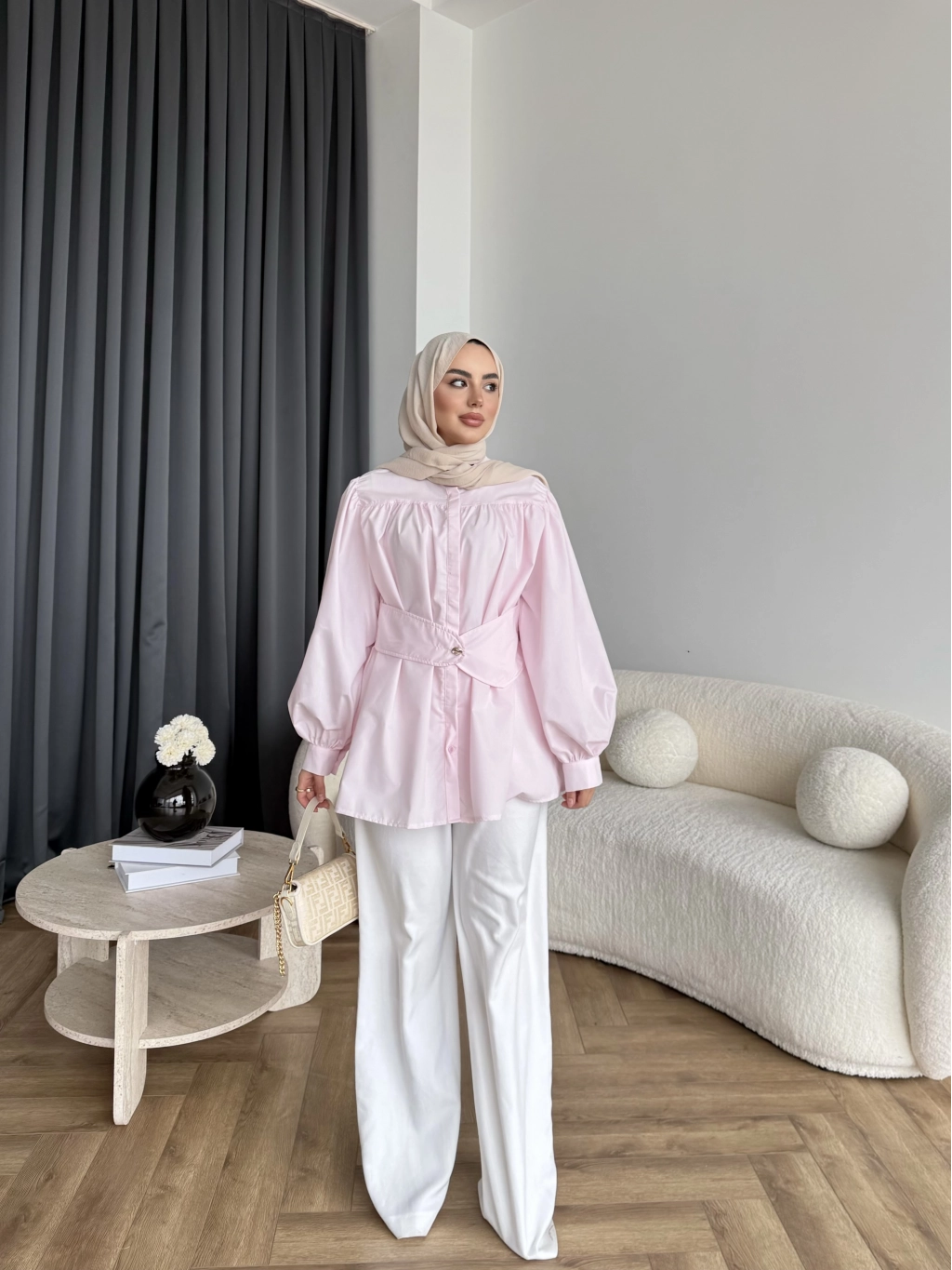 Hen - Mihra Bel Detaylı Gömlek - Pembe - ÖN SİPARİŞ