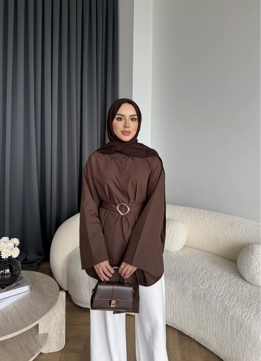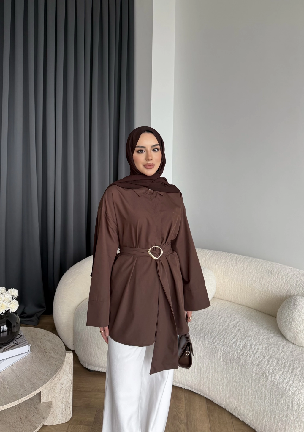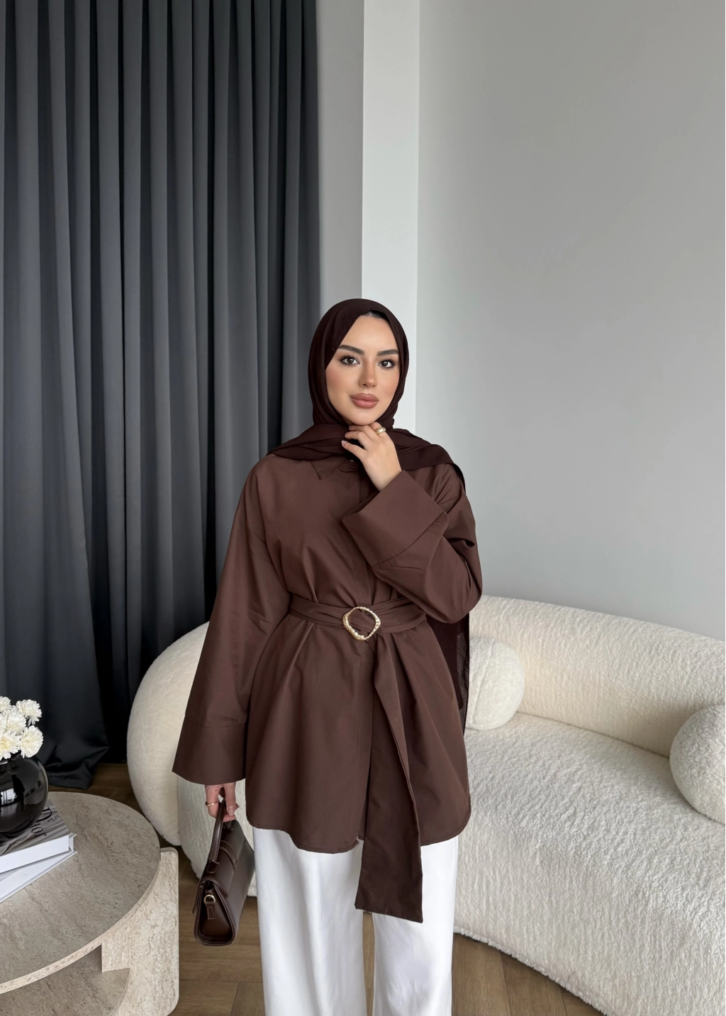 Hen - Noble Kuşaklı Gömlek - Kahve