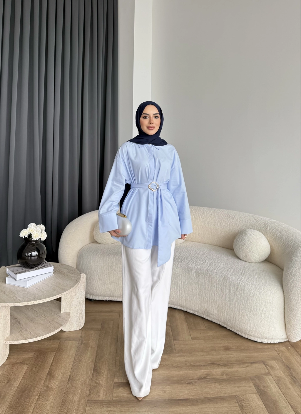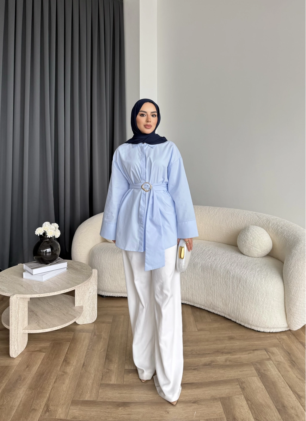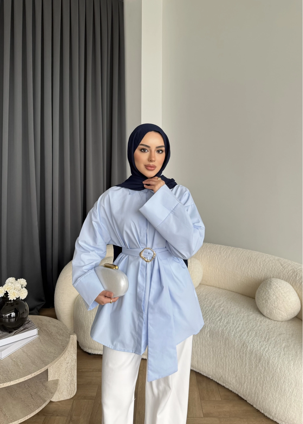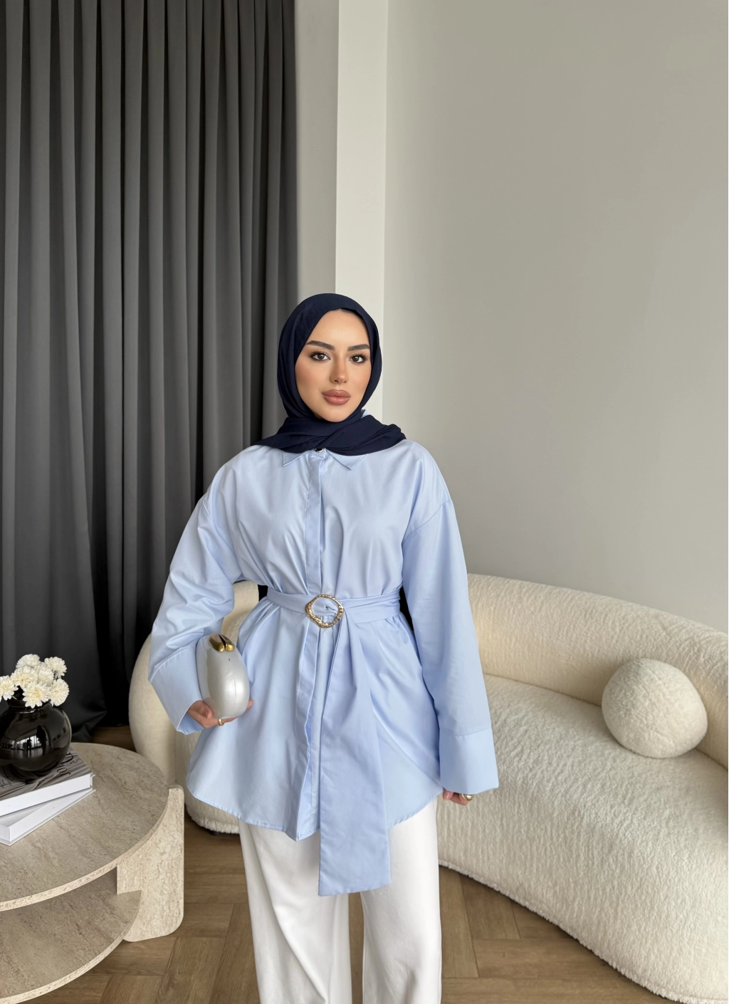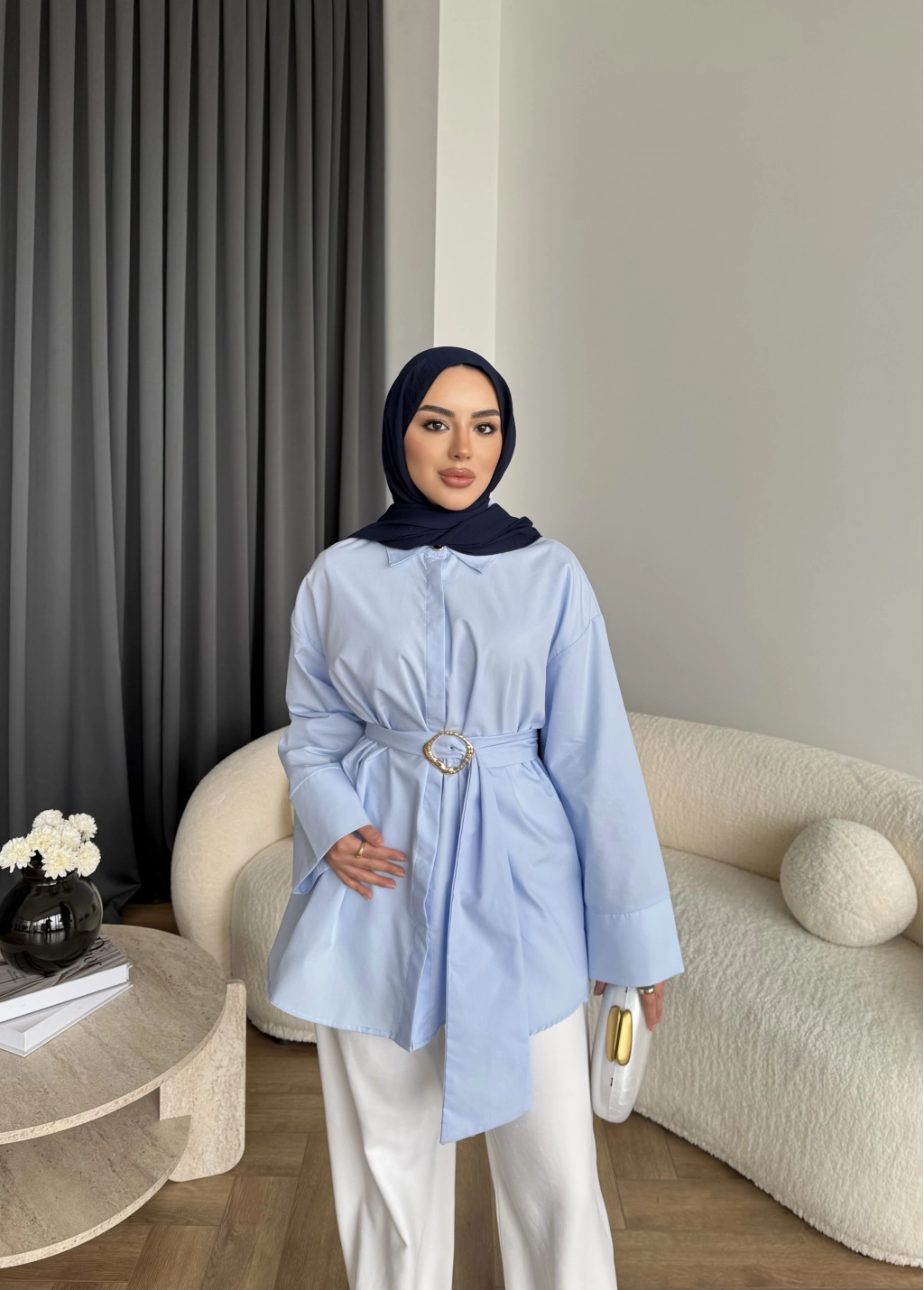 Hen - Noble Kuşaklı Gömlek - Mavi