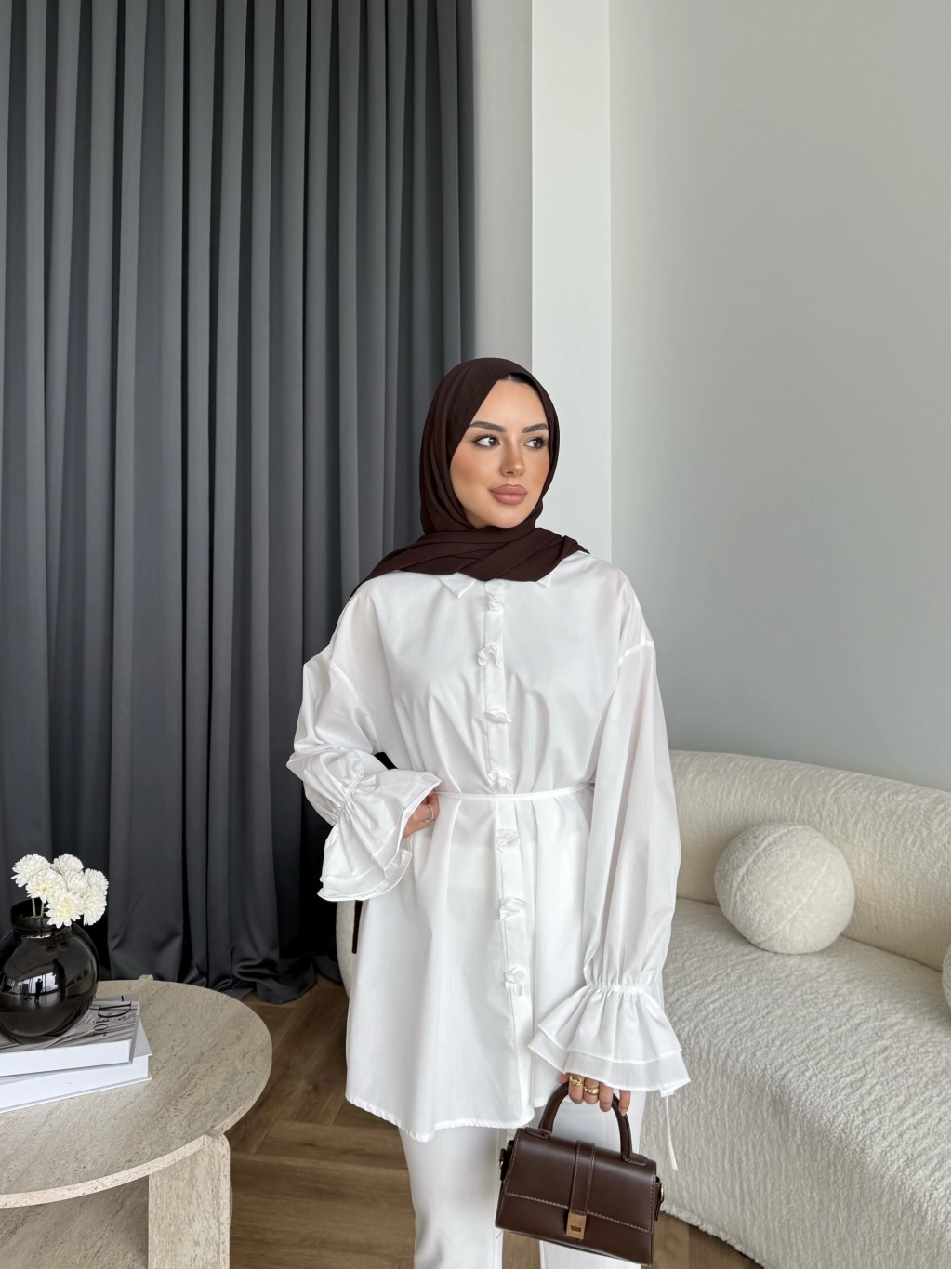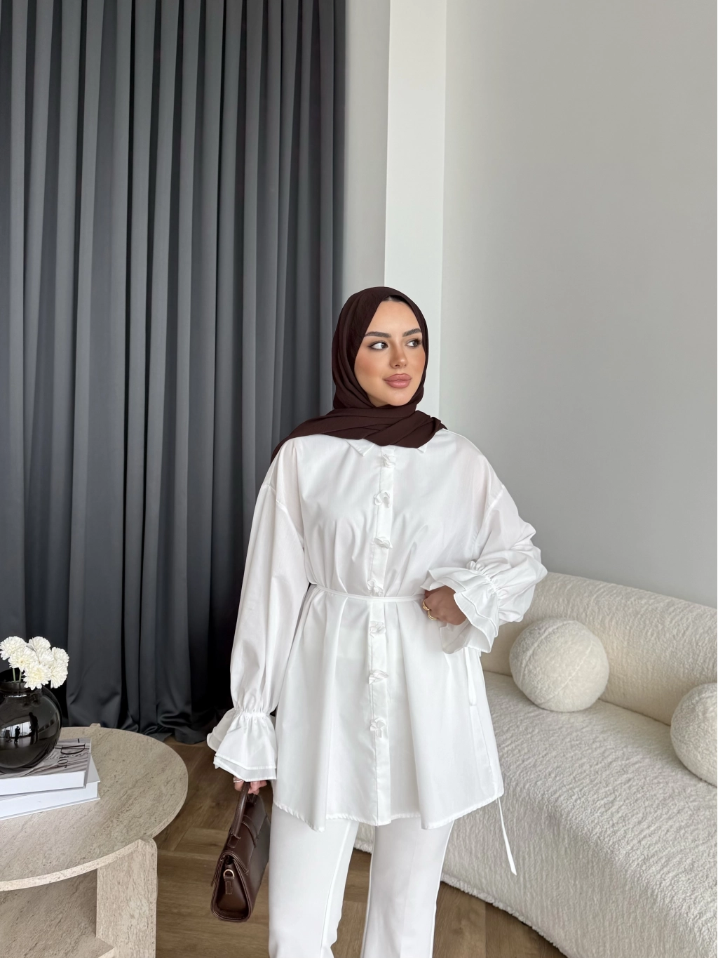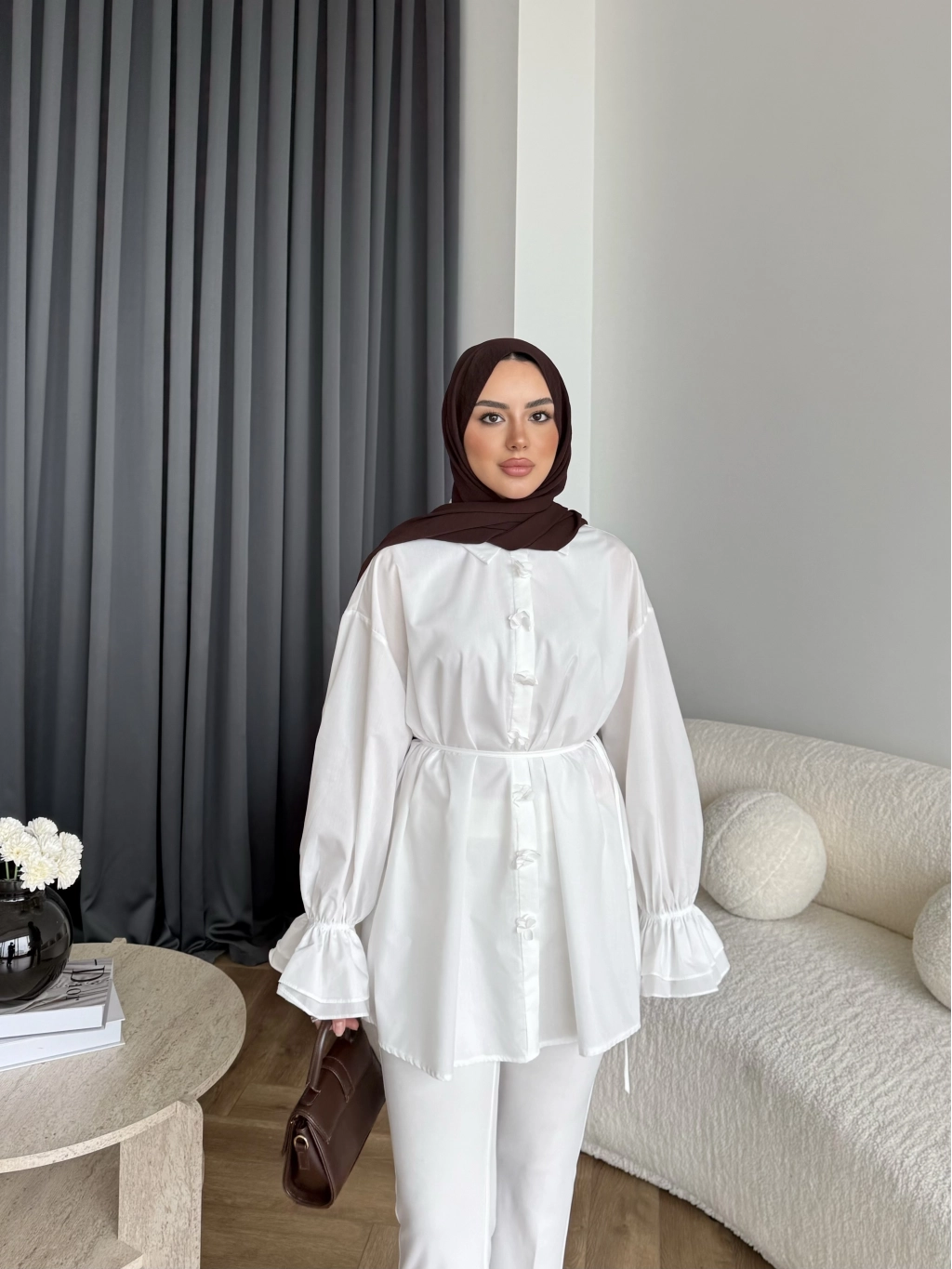 Hen - Sehaa Gül Detay Gömlek - Beyaz