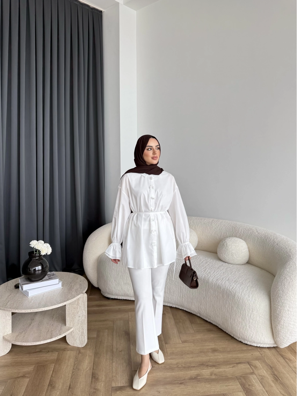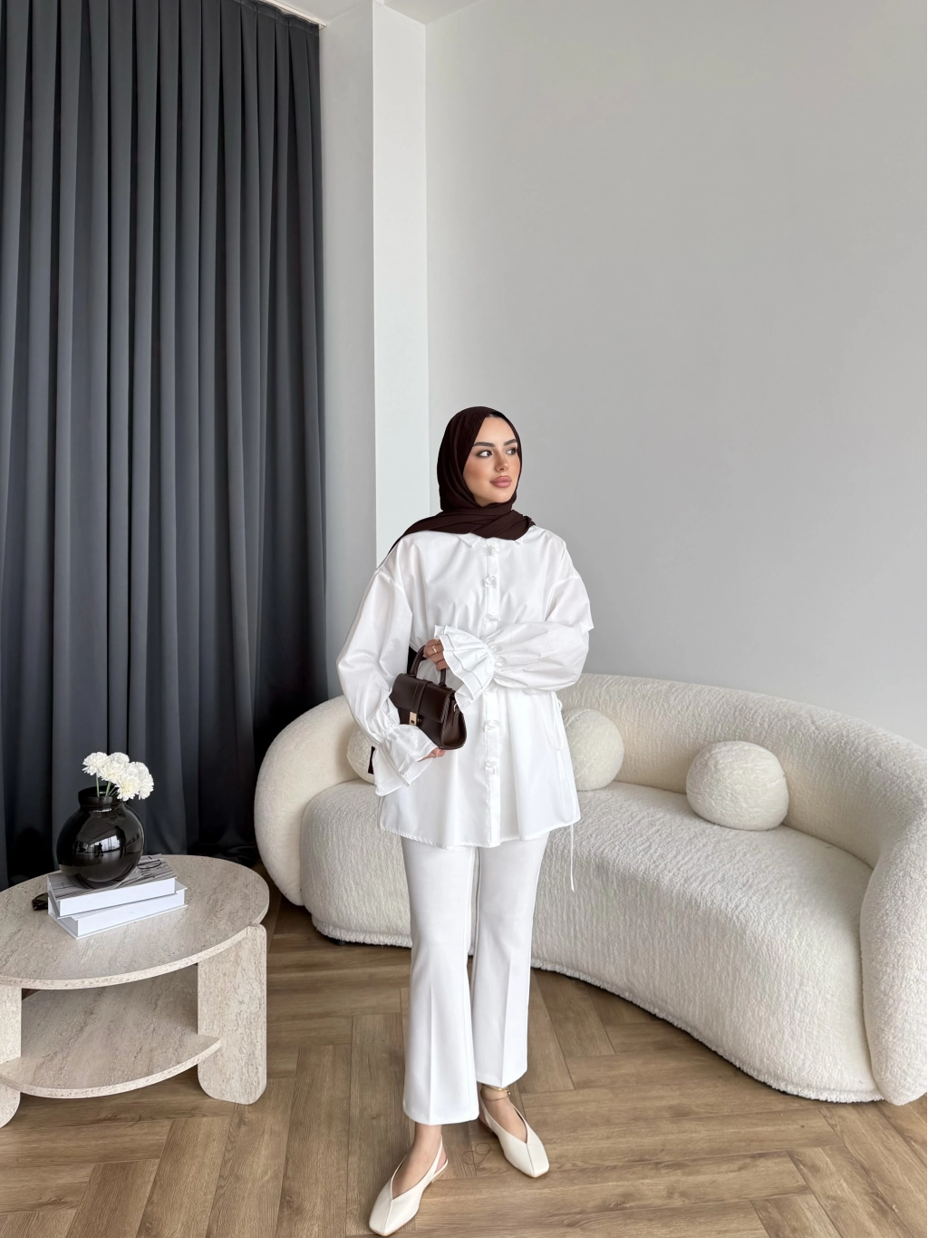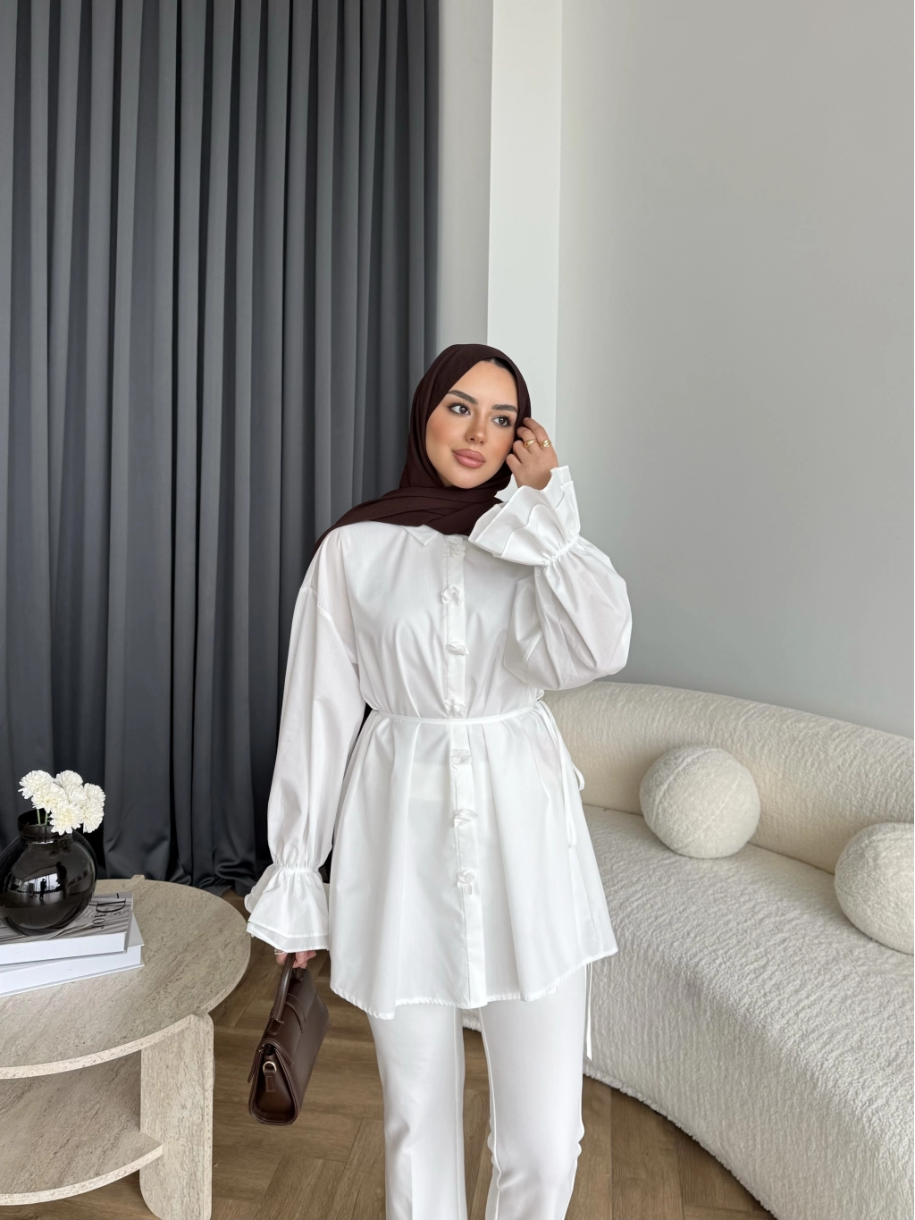 Hen - Sehaa Gül Detay Gömlek - Beyaz