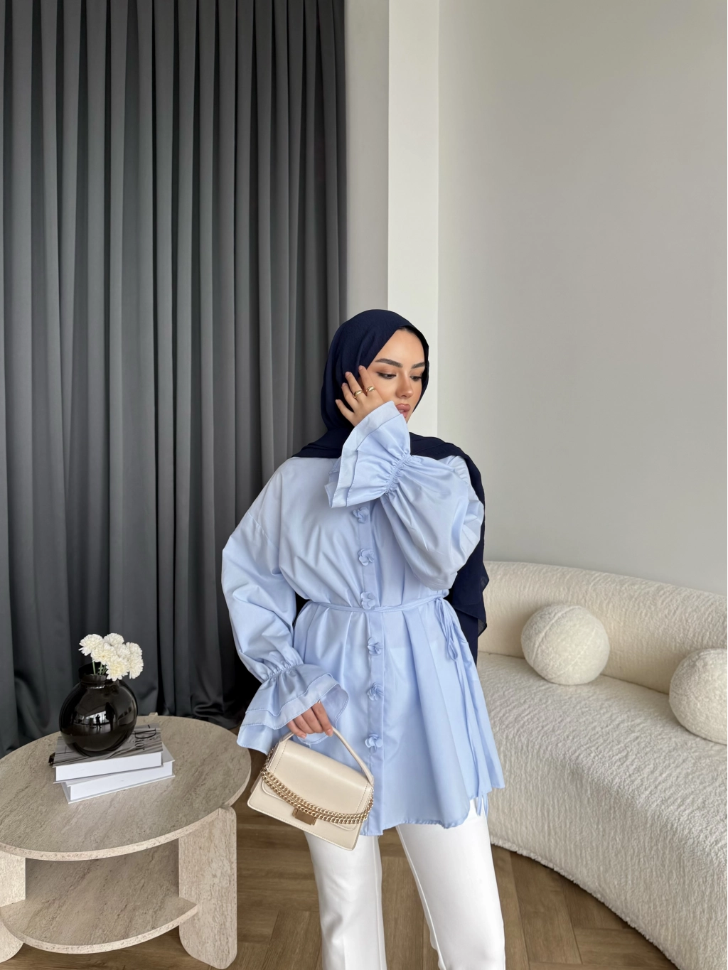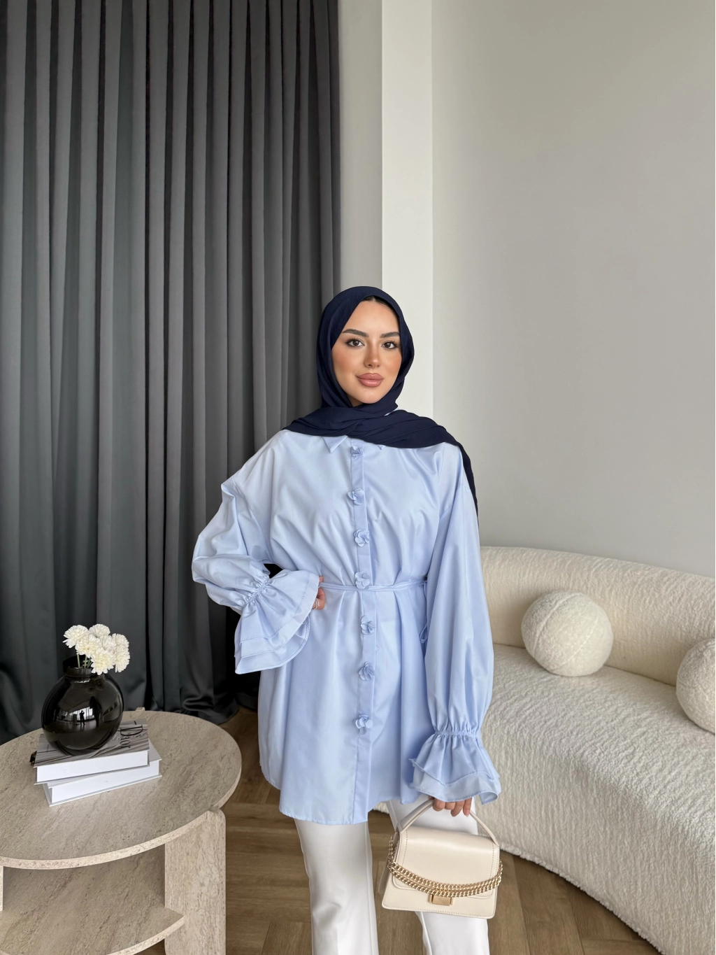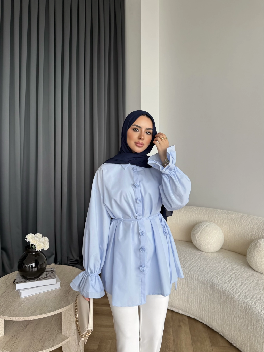 Hen - Sehaa Gül Detay Gömlek - Mavi